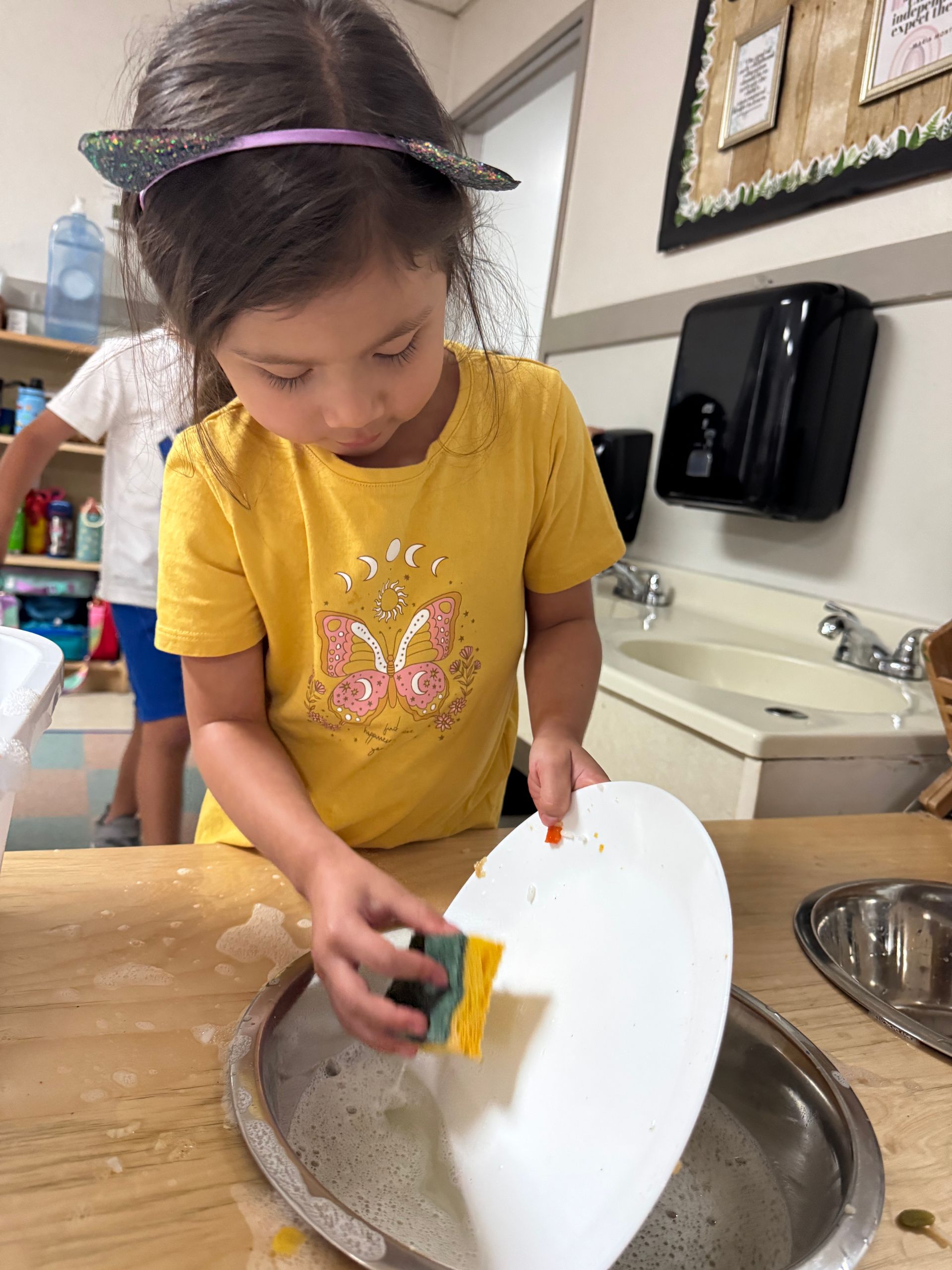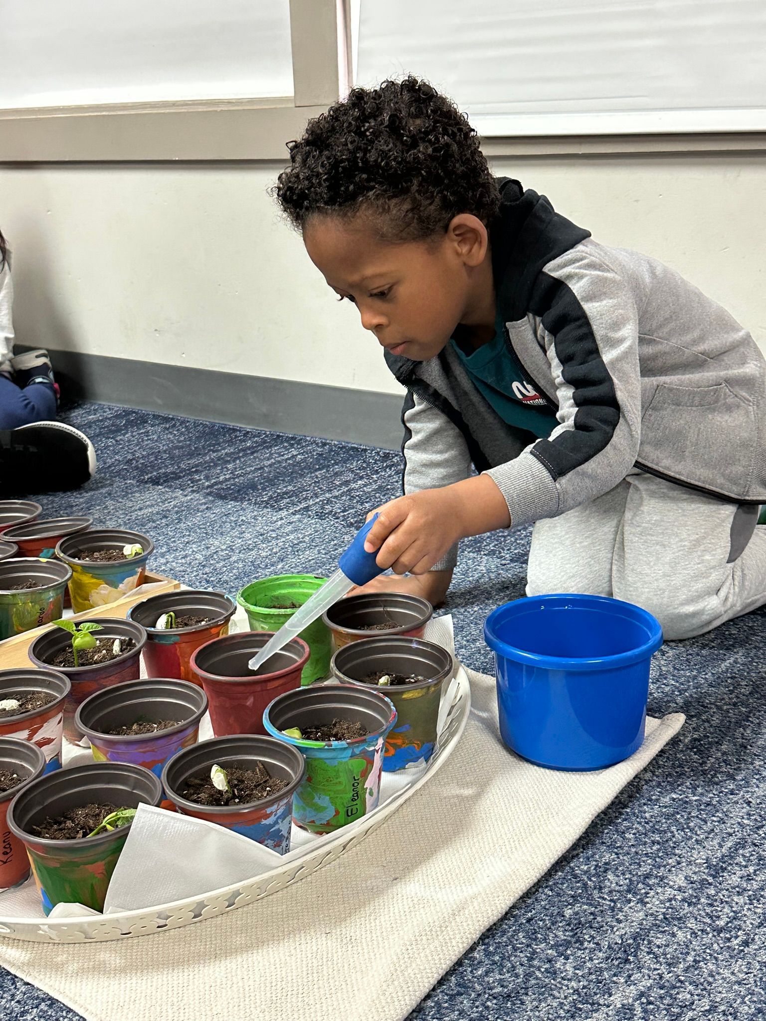 The children were working very hard on our Montessori jobs. They worked on dinosaur cards, and gardening. They planted a bean and watched them grow and cared for the plants. They practiced how to wait for their turn and how to show kindness. They love to clean the tables, sweep the floor, and dust the classroom. For our enrichment program, the children had so much fun learning to cook and doing art, but something that they could not miss was computers.