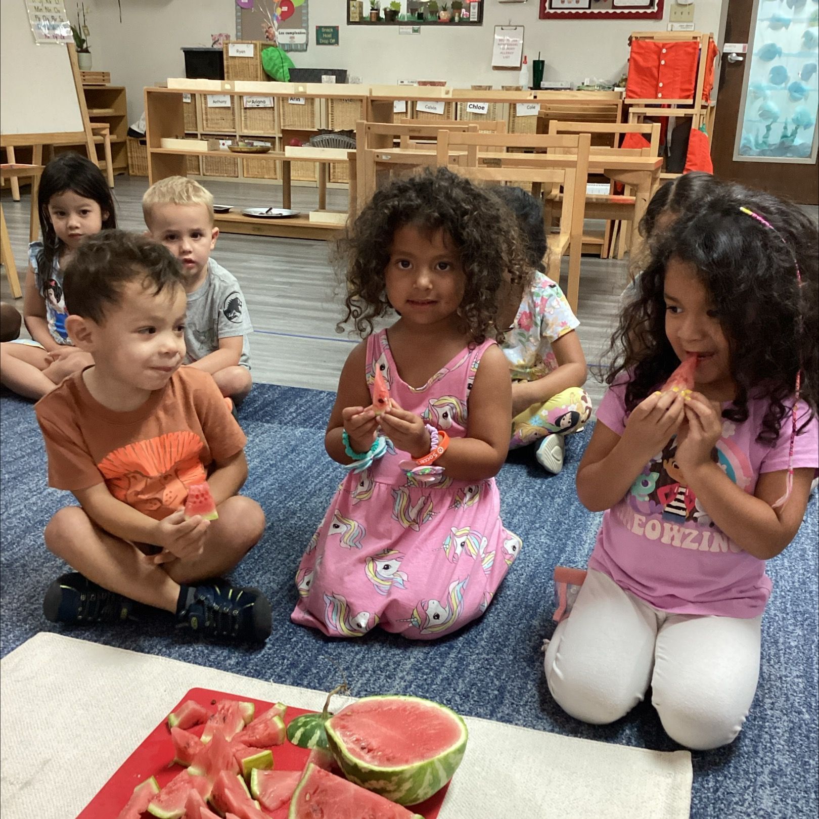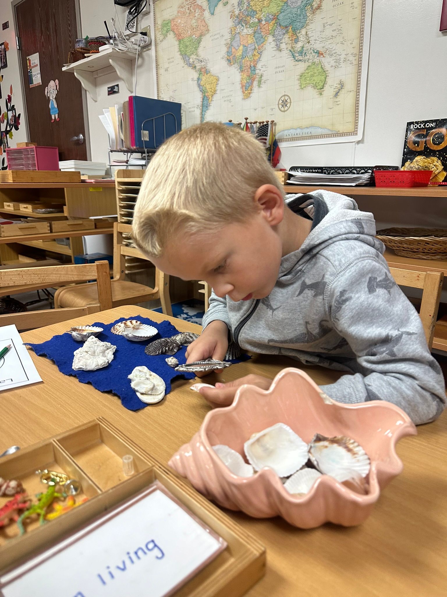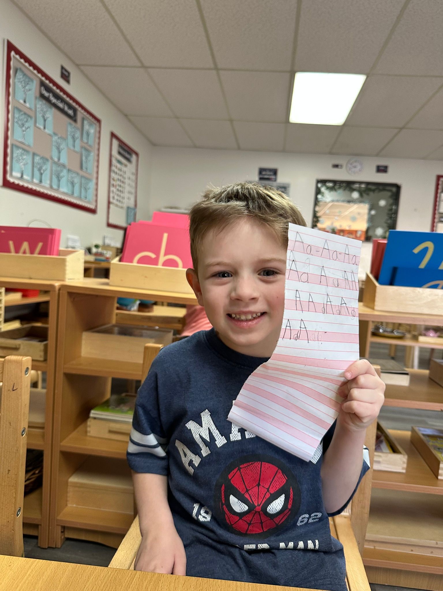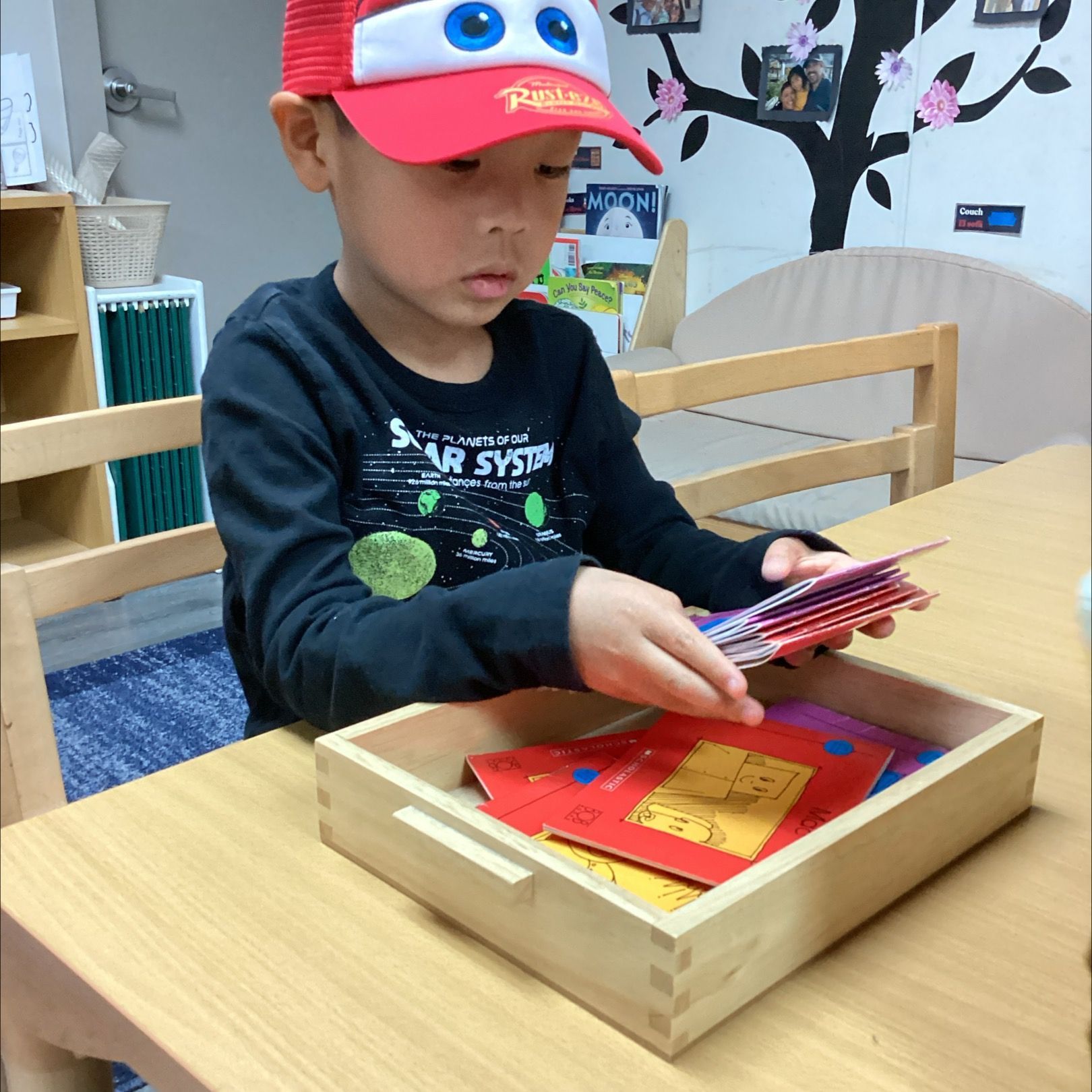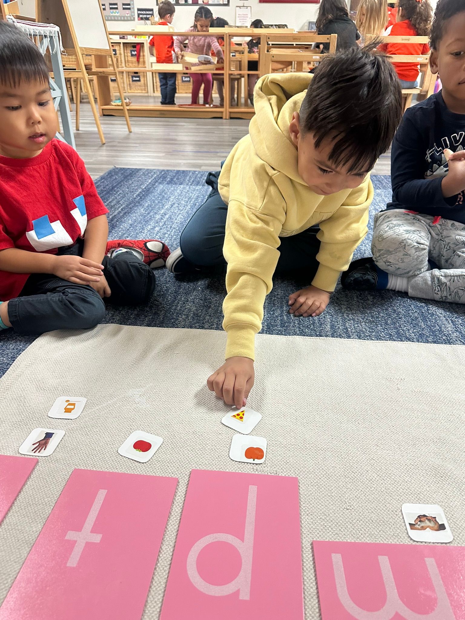 We learned the seven continents and colored a globe to understand the specific colors of the continents. The children also learn the difference between a globe vs a map. They worked on practical life and vocabulary that describes the difference between large and small, heavy and lighter. They used tongs, basting, lids, containers, tweezers, locks and keys. For language, the children worked with matching cards, three-part cards, memory games, tracing and writing letters. They also worked on their phonics. The book for the month was The Kissing Hand by Audrey Penn. The children learned how to sit at circle time. For Math they worked on association of number rods and cards. They learned to count with a spindle box, and how to trace numbers with the sandpaper numbers, also counting and tracing numbers from 1-10. For the special days the children participated in share days and being snack host. For enrichment the children enjoyed using the computers, cooking, music, art and gardening.