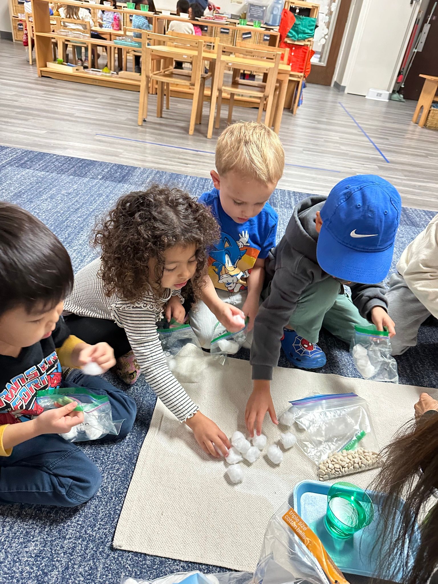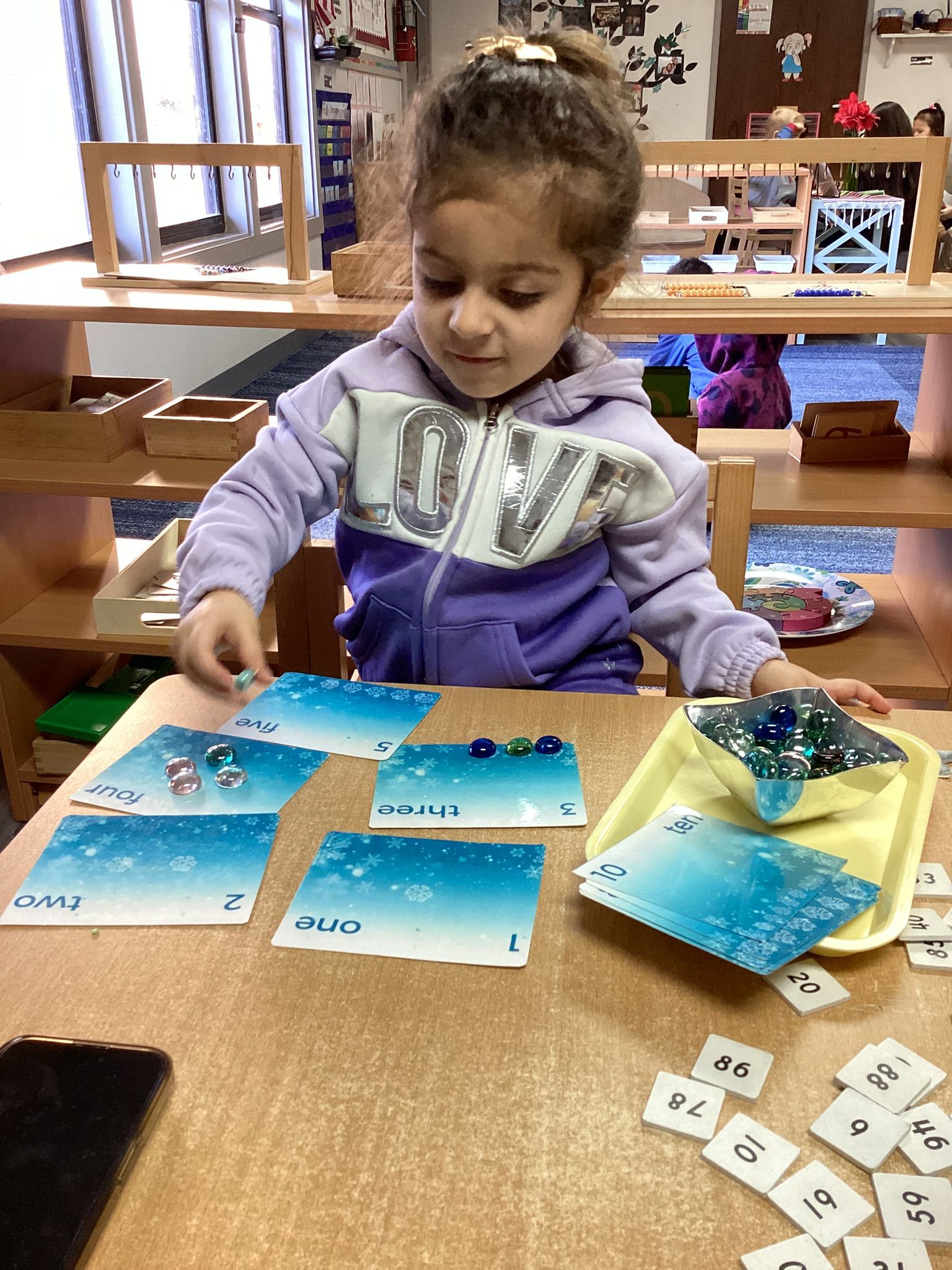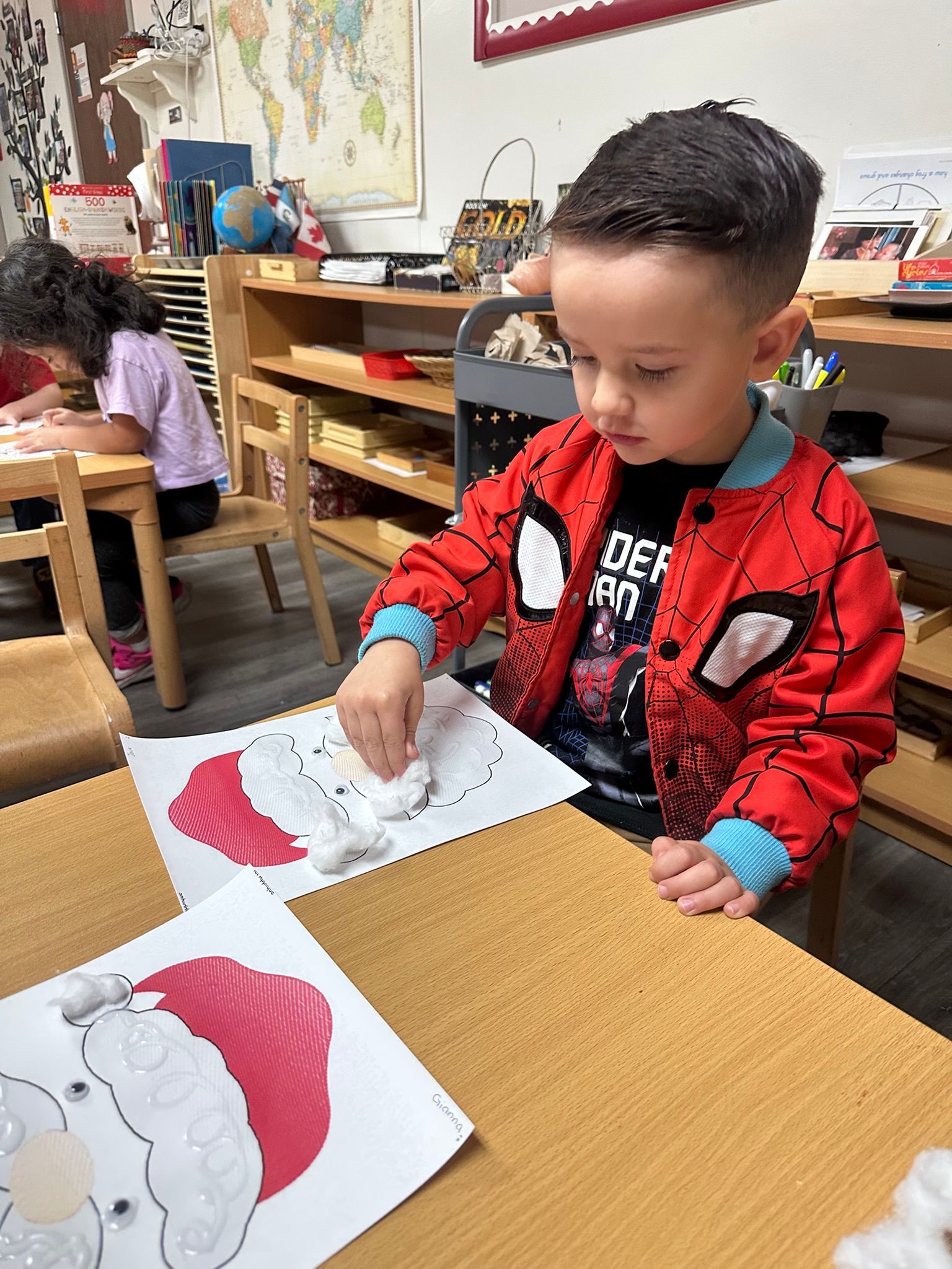 For our Montessori activities, the children enjoyed zoology and learning about the parts of the horse. Another activity that was very successful was watching ice turn into water. For Grace and Courtesy, we reinforced covering a cough and blowing our nose then washing hands. We also practiced saying please and thank you. They loved participating in share day by bringing in an item from the holidays that they celebrate and a photo of the last celebration.