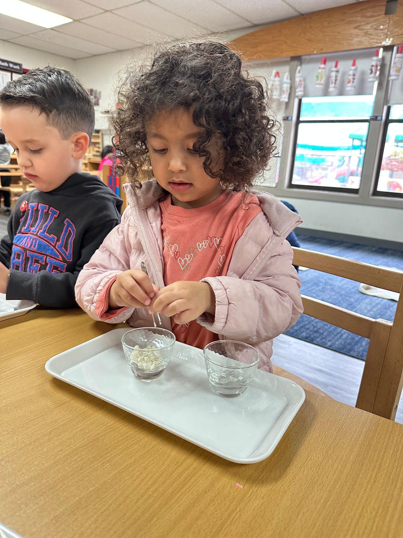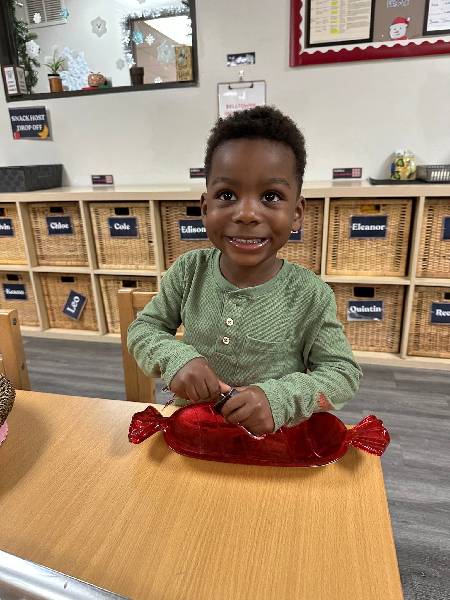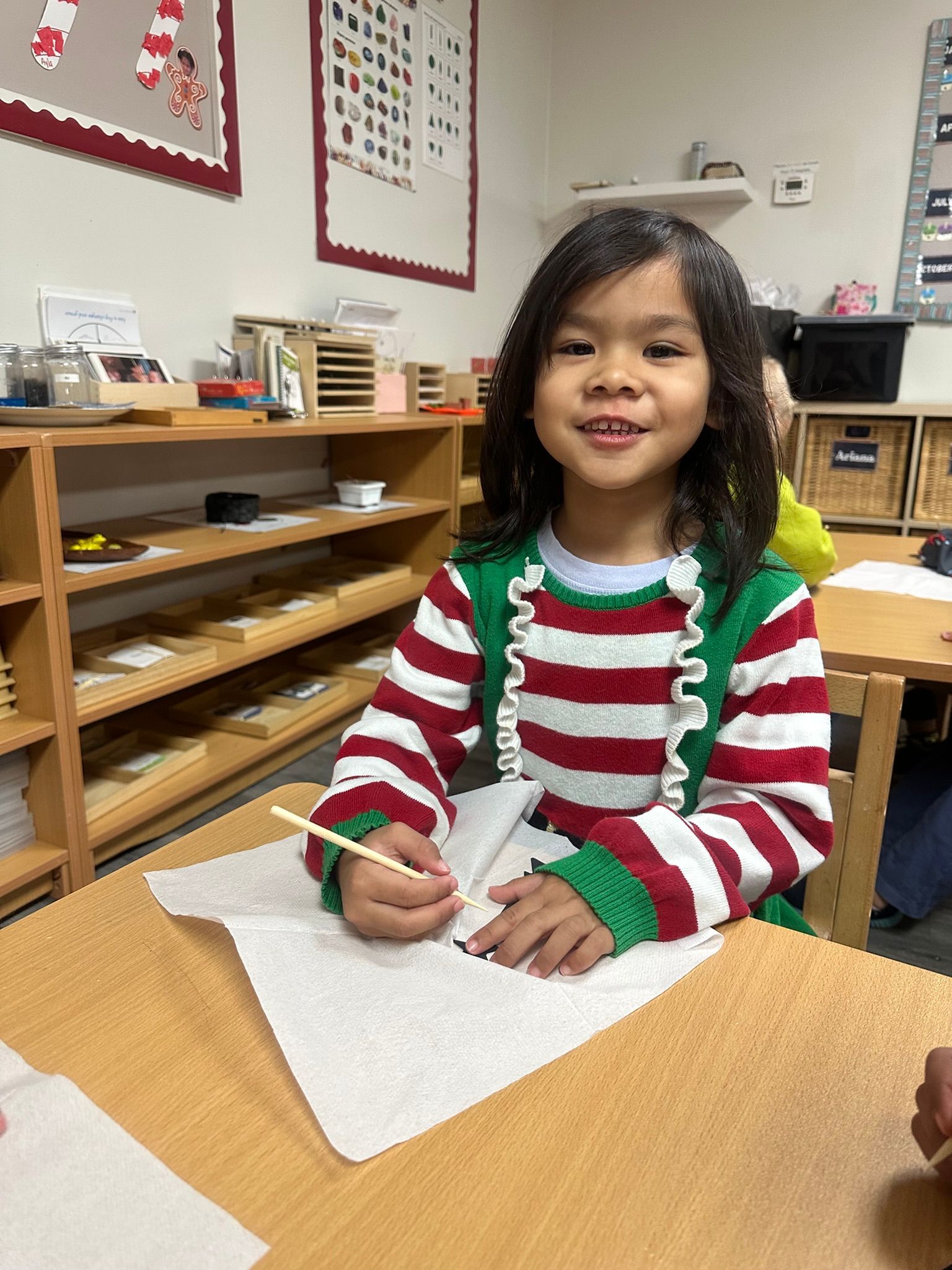 For our Montessori activities, the children enjoyed zoology and learning about the parts of the horse. Another activity that was very successful was watching ice turn into water. For Grace and Courtesy, we reinforced covering a cough and blowing our nose then washing hands. We also practiced saying please and thank you. They loved participating in share day by bringing in an item from the holidays that they celebrate and a photo of the last celebration.