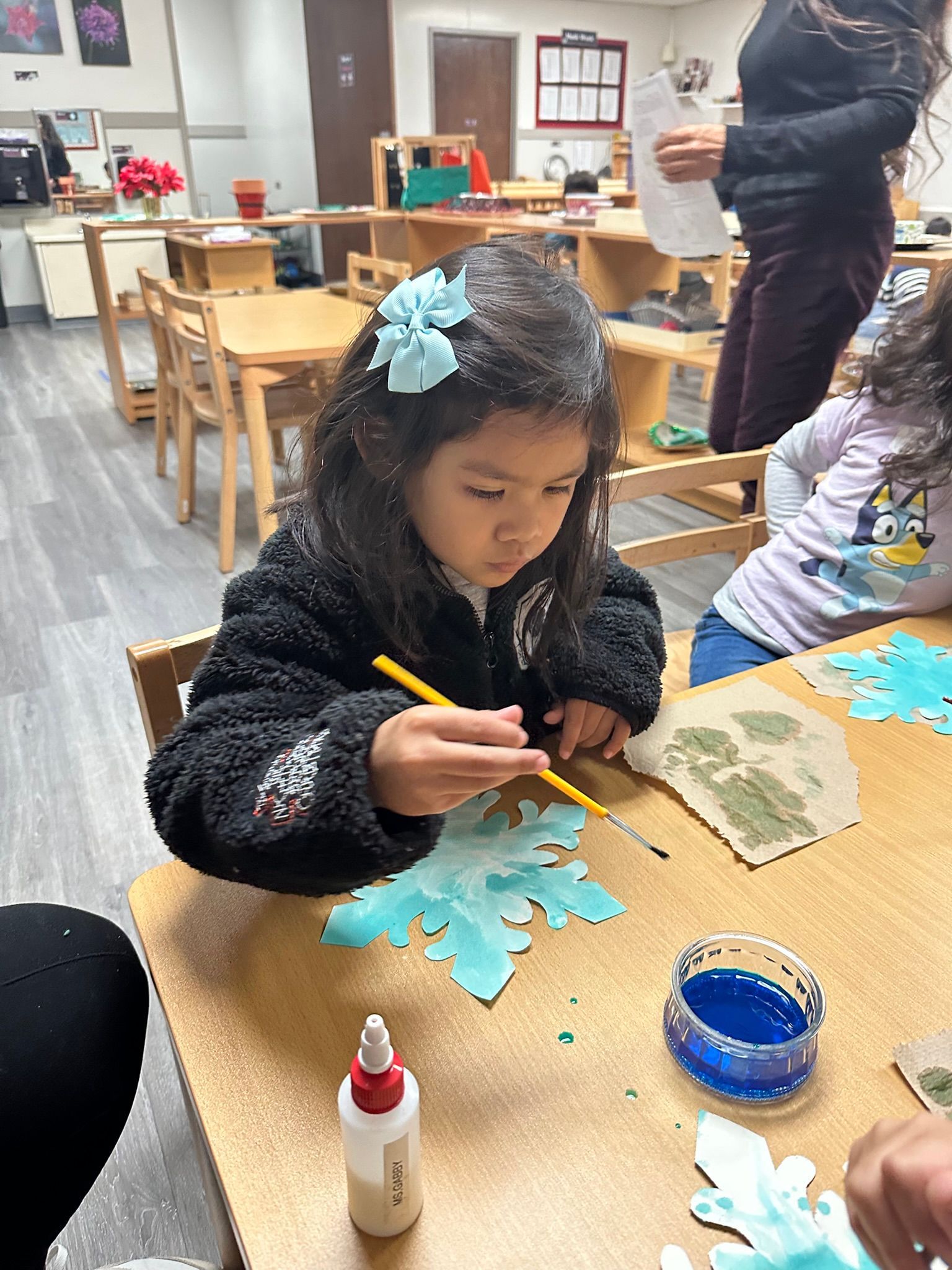 For our Montessori jobs, we learned the body parts of a penguin. The children created their penguins. We learned how the animals can be tracked by their paw prints on snow. We also looked at the importance of exercising and eating fruits and vegetables. We talked about taking turns and inside voices, caring for class materials, and cleaning their faces. For our enrichment, the children enjoyed music, art, cooking, and computers.