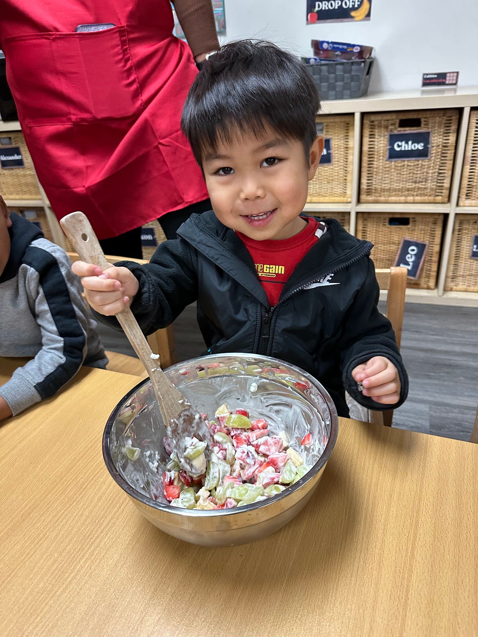 In October the children learned the names of the planets. The layers of the Earth and the importance of the Sun and Moon. They also learned their functions and why we need them. They were excited to see how many stars our Solar System has and worked on their own solar system projects. We discussed North America and located it on the map. They had a chance to color their own maps and explore the animals that lived there. We learned about the culture in Mexico, the United States, and Canada. The book of the month was Going on a Leaf Hunt. We discussed how the leaves change colors in the fall and worked on a leaf project. We learned about the parts and life cycle of the pumpkins, and we carved our own. The children also learned the parts of a spider. We made a pumpkin patch in the classroom. We decorated the family tree with the family pictures the children brought from home. For our Montessori learning, we discussed plants vs animals. We discussed what kind of animals are nocturnal, like owls, and bats. We enjoyed a fun Halloween parade, where the kids had a chance to dress up. We had a good time feeling the difference between hot water and cold water in a safe environment. This helped us look at the different stages of the water, liquid, gas, and solid. For grace and courtesy, the children learned how to put on a coat. Asking and offering for help and getting in line. The children enjoyed enrichment that included music, art, cooking, computers, and Spanish.