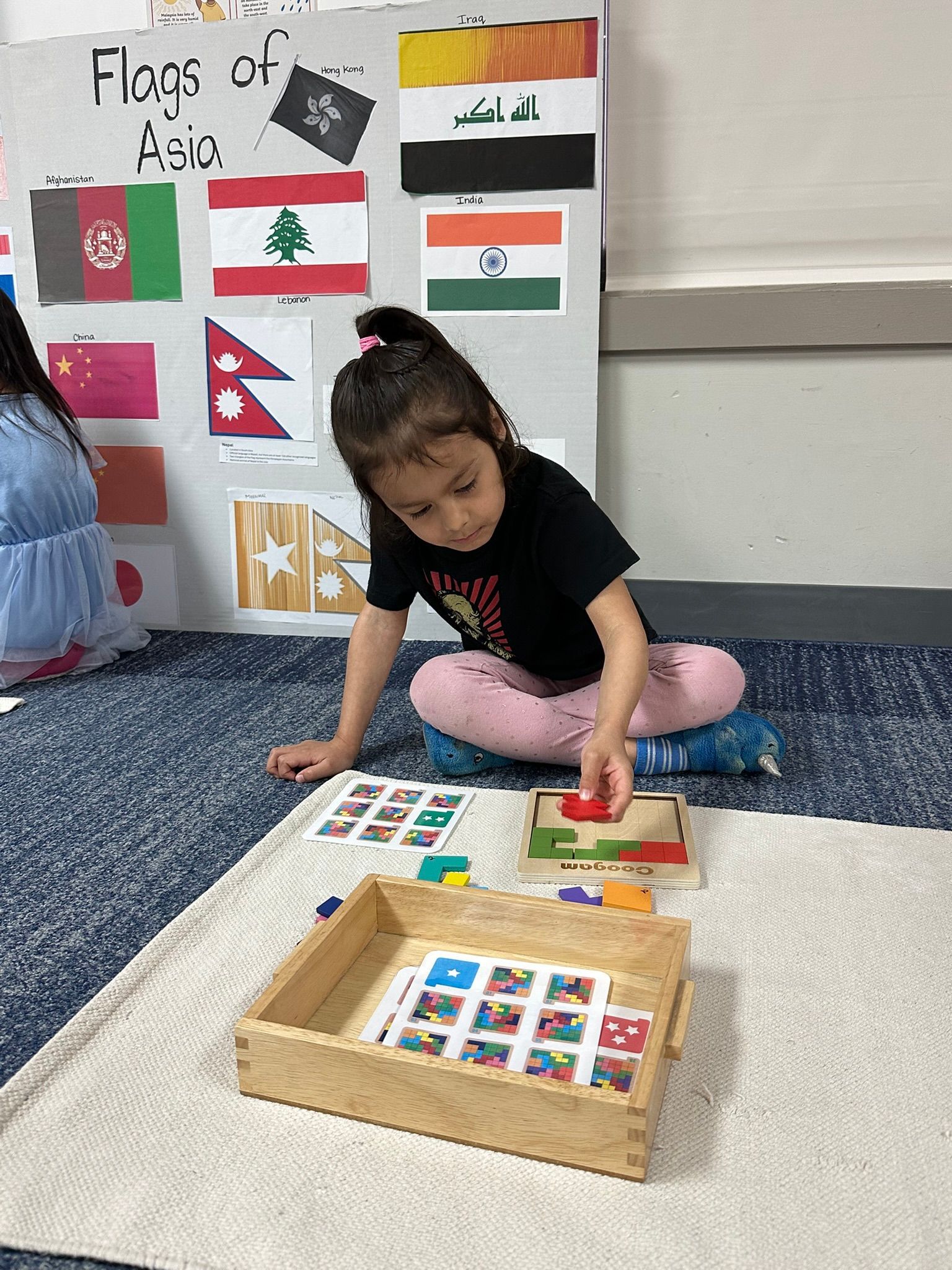 We studied the continent of Asia; the children were able to identify Asia on the globe and on the map. We also learned about the traditions of Asia, their food, clothes, and customs. We discussed the Lunar Year. Also, the children had the opportunity to express their friendships with others by writing a little encouraging note in a paper heart while learning what it means to be a great friend, as well as what they can do for others. We observed Black History Month and acknowledged essential people like Martin Luther King Jr. and how he fought for civil rights. They enjoyed working on their Black History project where everyone chose one superhero from the Black History event. We learned the importance of President’s Day, as well as a few notable ones, such as George Washington and Abraham Lincoln. The children enjoyed the book for this month, Little Blue and Little Yellow, which we followed up with a few science activities combining blue and yellow playdough, which makes green, and mixing blue and yellow paint, creating the same results. Also, we enjoyed the open house. They also enjoyed Friday share days, where they shared their Black History project, Asia flags, and things that begin with the letters P Q R and S. And, of course, the children enjoyed the Valentine’s Day party, where they shared cards, candies, stories, and food.