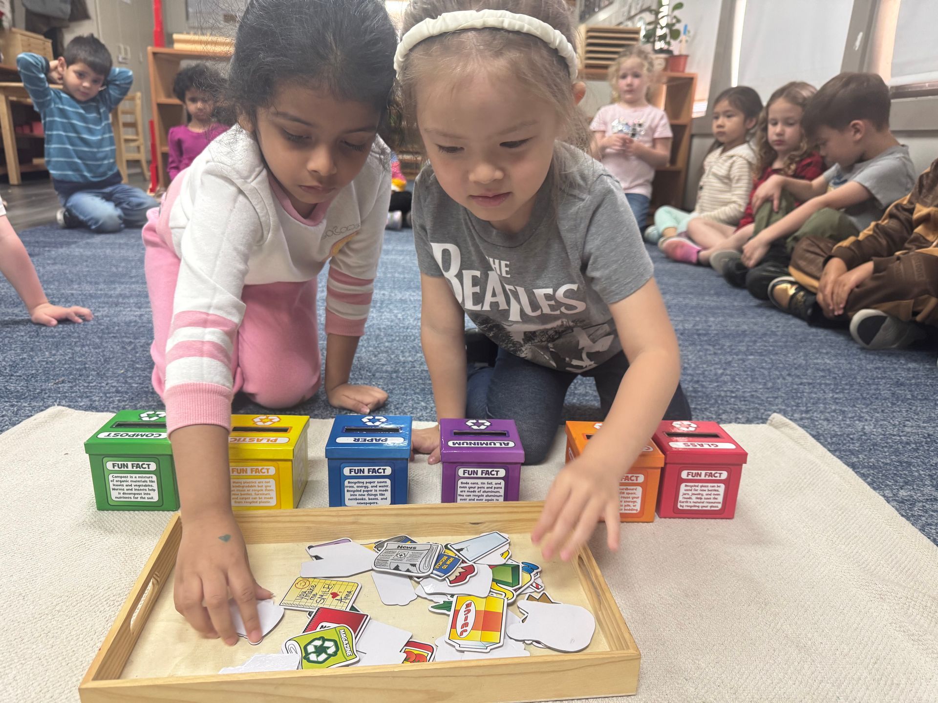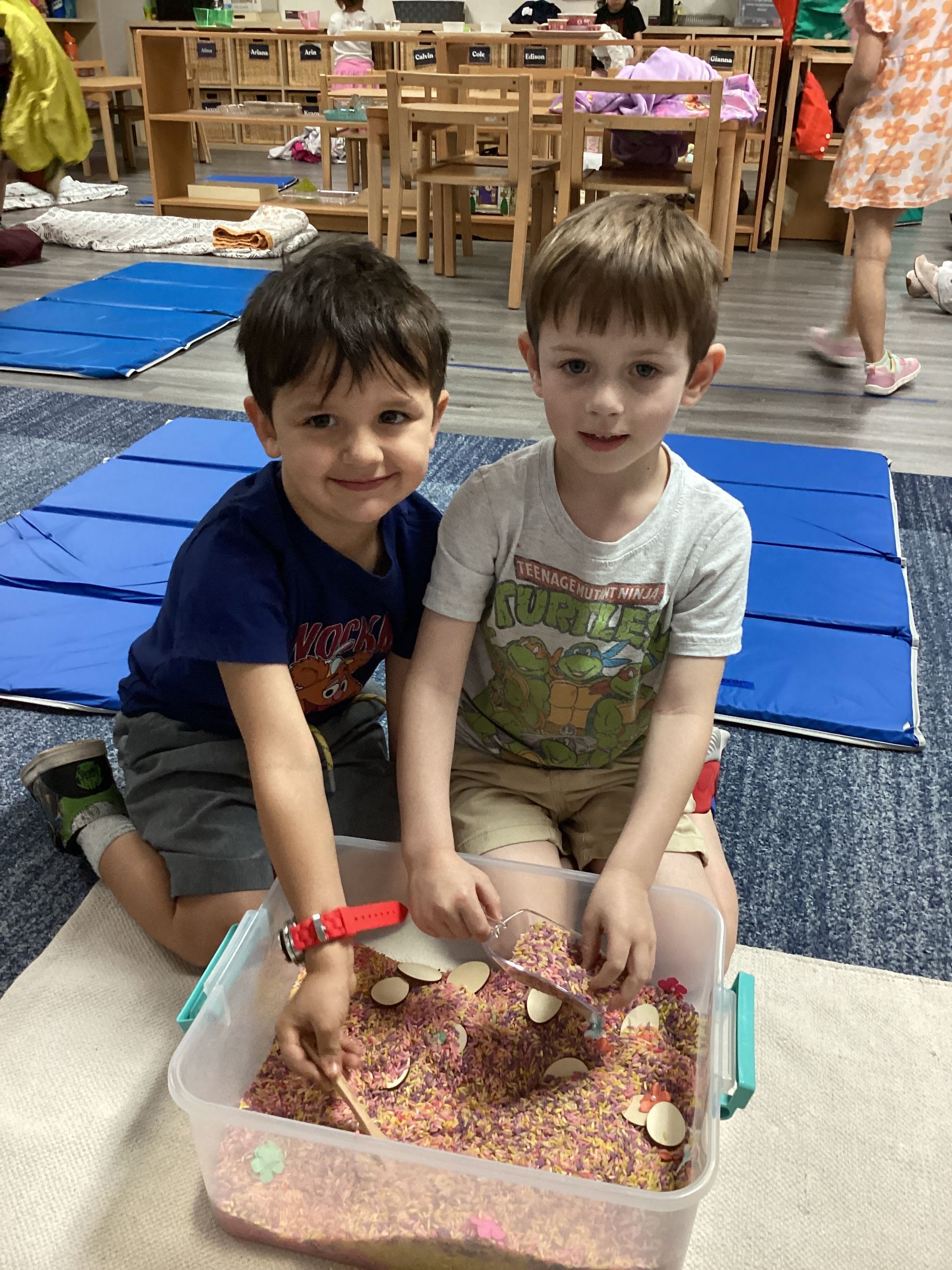 In celebration of Earth Day, we engaged in meaningful discussions about keeping our planet healthy through the practice of the 3 R’s: Reduce, Reuse, and Recycle. We ventured into the captivating world of volcanoes and islands, learning about their formation and even creating our own explosive volcano eruption in class—what a thrilling experience! Our Easter egg hunt was a bright, joyful highlight, filled with laughter and excitement. This month’s featured book, Chicka Chicka Boom Boom inspired the children to create colorful and imaginative artwork during enrichment.