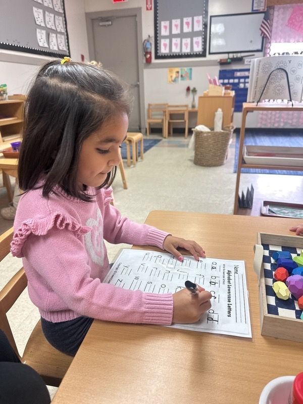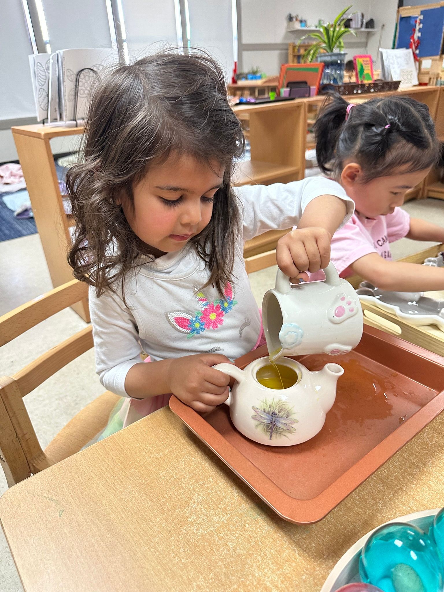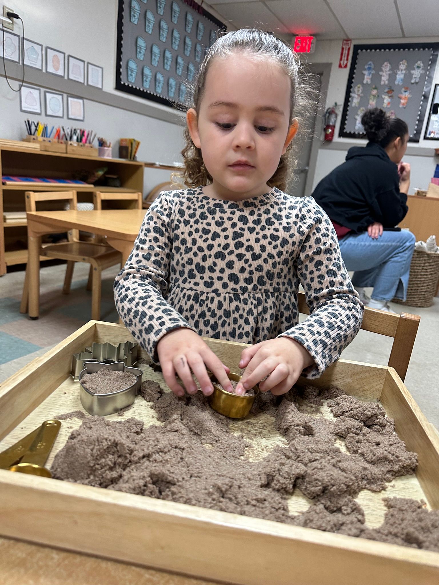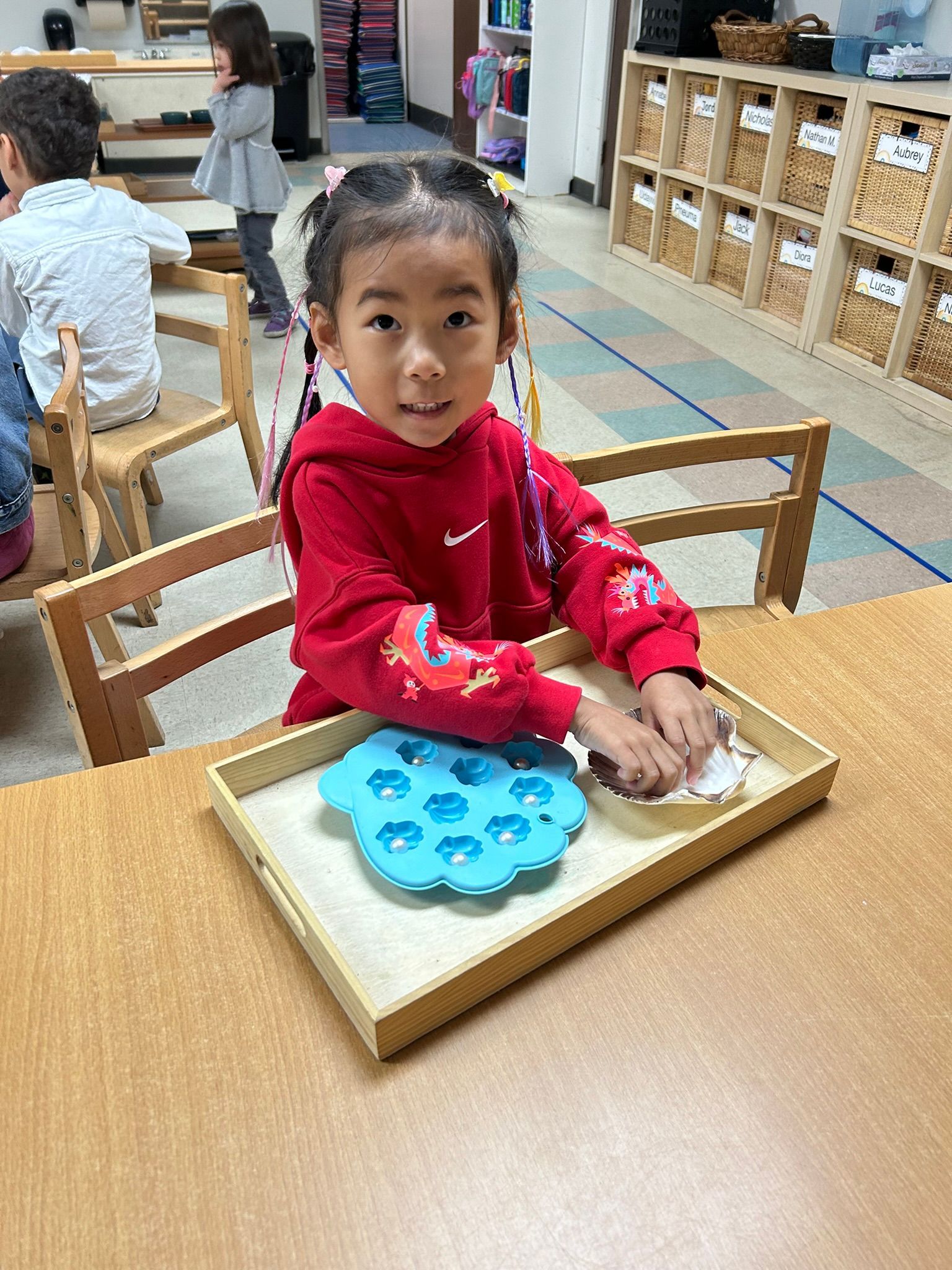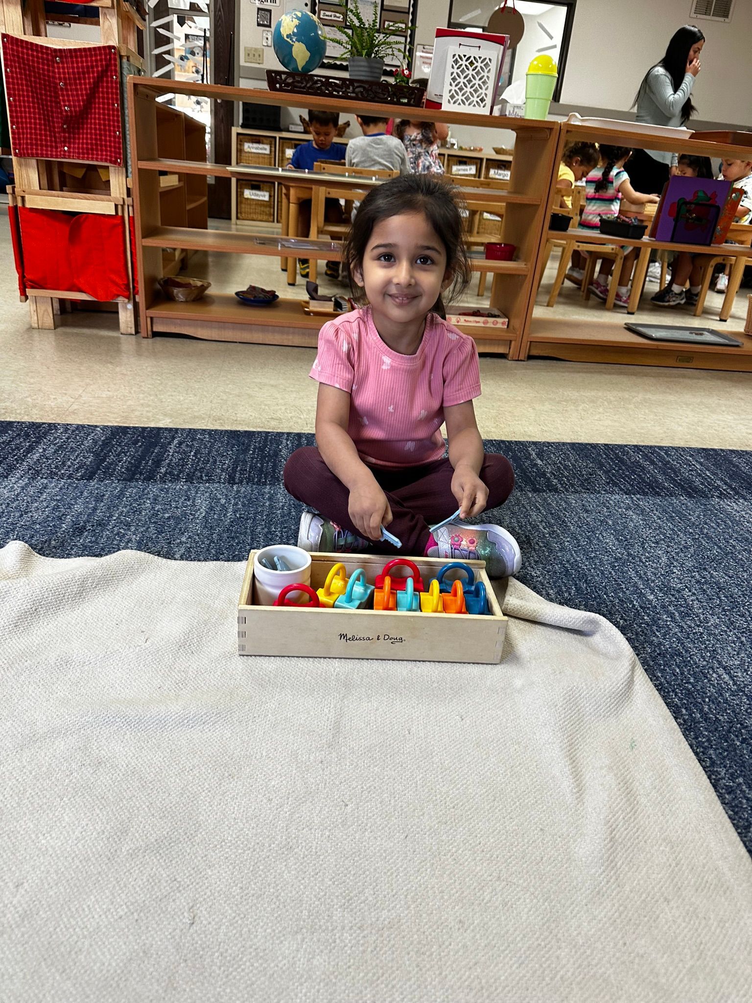 The children have been working on watering our garden plants. We enjoyed the fun spirit week we had with all the crazy hair, backwards clothes, sport day, superhero/princess, favorite color day! The children really enjoyed using the computers during our enrichment time. They have been practicing number order and writing. We continue practicing letter sounds and identifying their letters, as well as practicing their handwriting. We are enjoying our string work and pouring water work. We are continuing to practice our manners inside and out of the classroom.