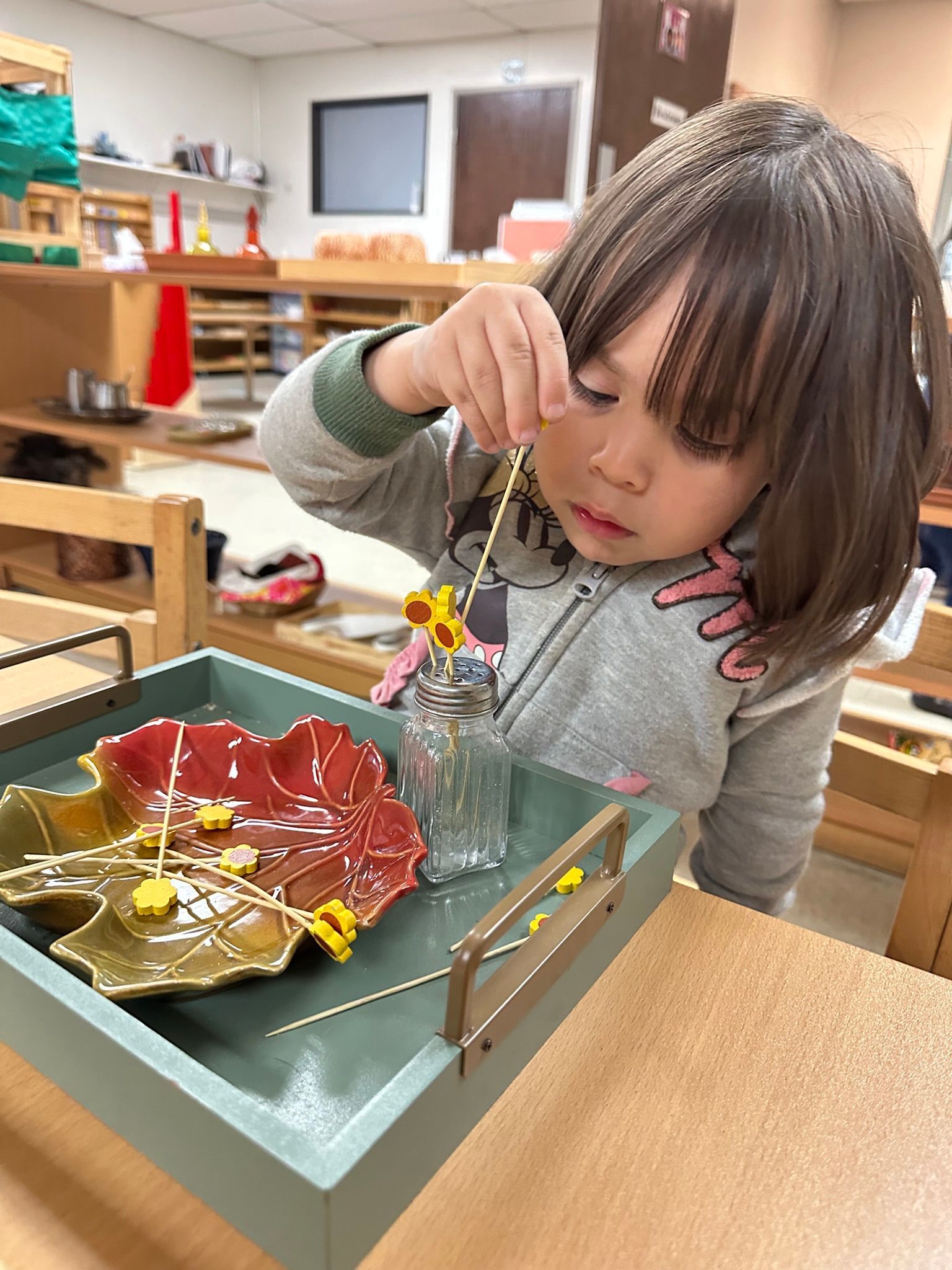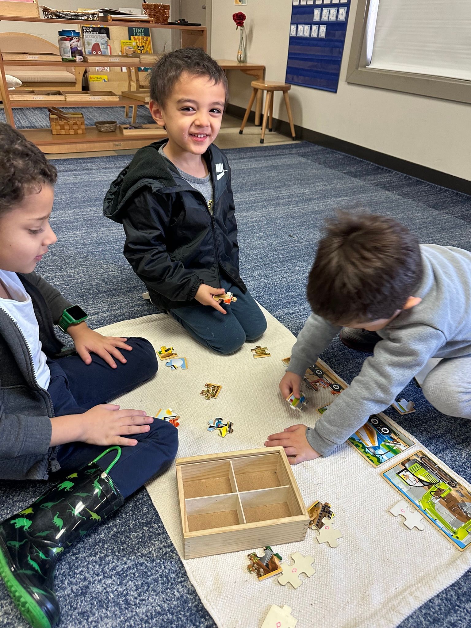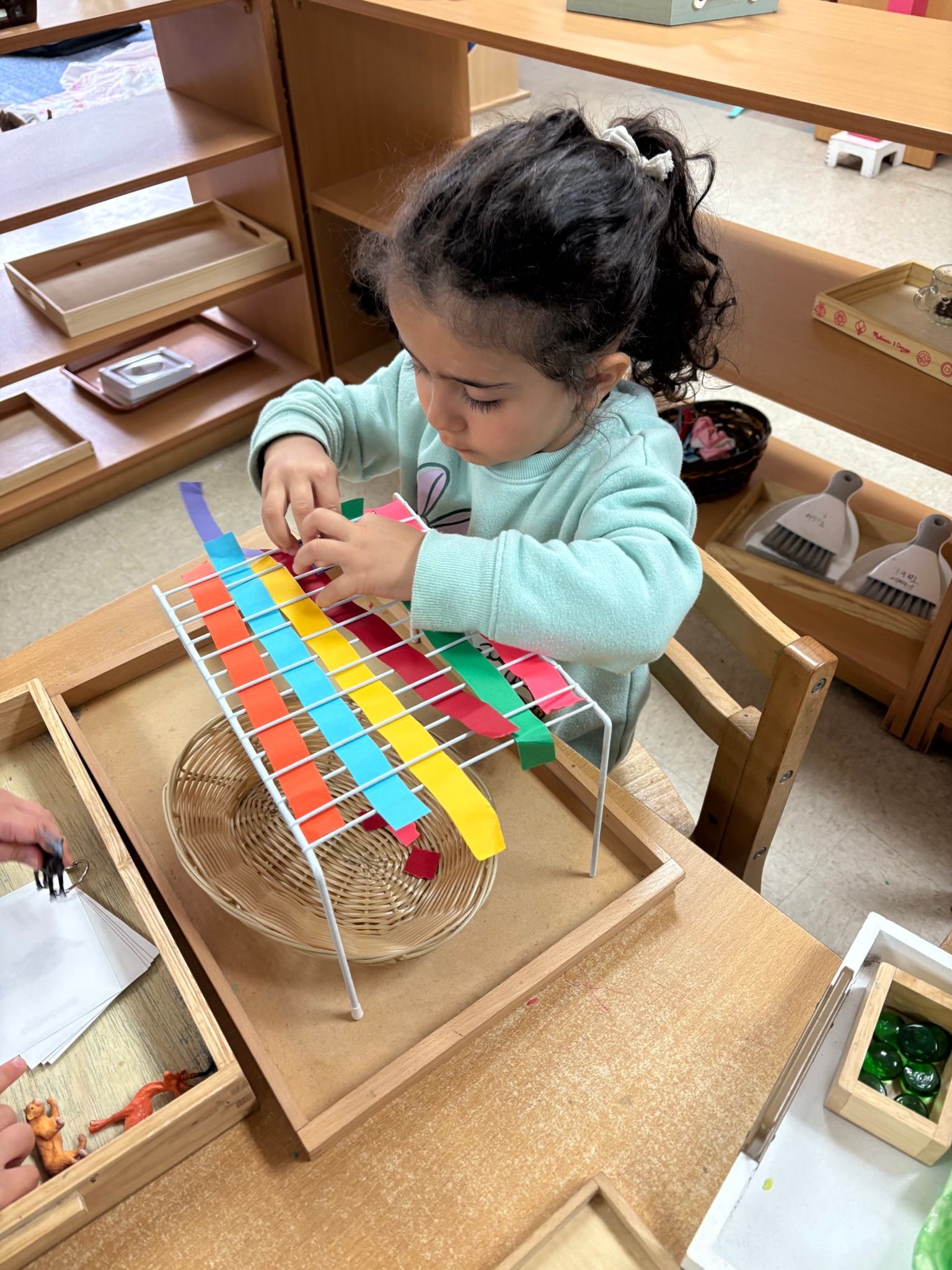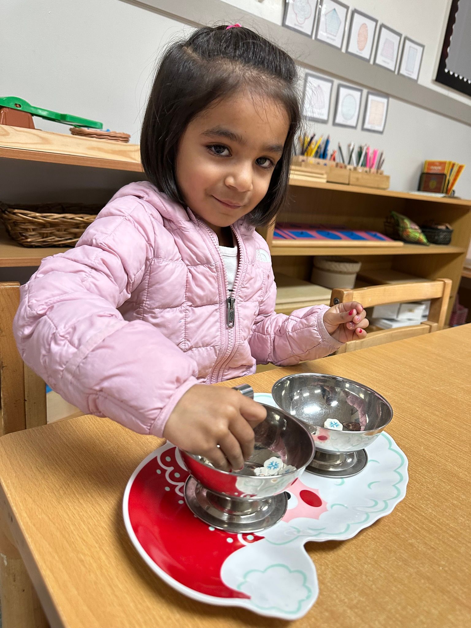 The children have been working on watering our garden plants. We enjoyed the fun spirit week we had with all the crazy hair, backwards clothes, sport day, superhero/princess, favorite color day! The children really enjoyed using the computers during our enrichment time. They have been practicing number order and writing. We continue practicing letter sounds and identifying their letters, as well as practicing their handwriting. We are enjoying our string work and pouring water work. We are continuing to practice our manners inside and out of the classroom.