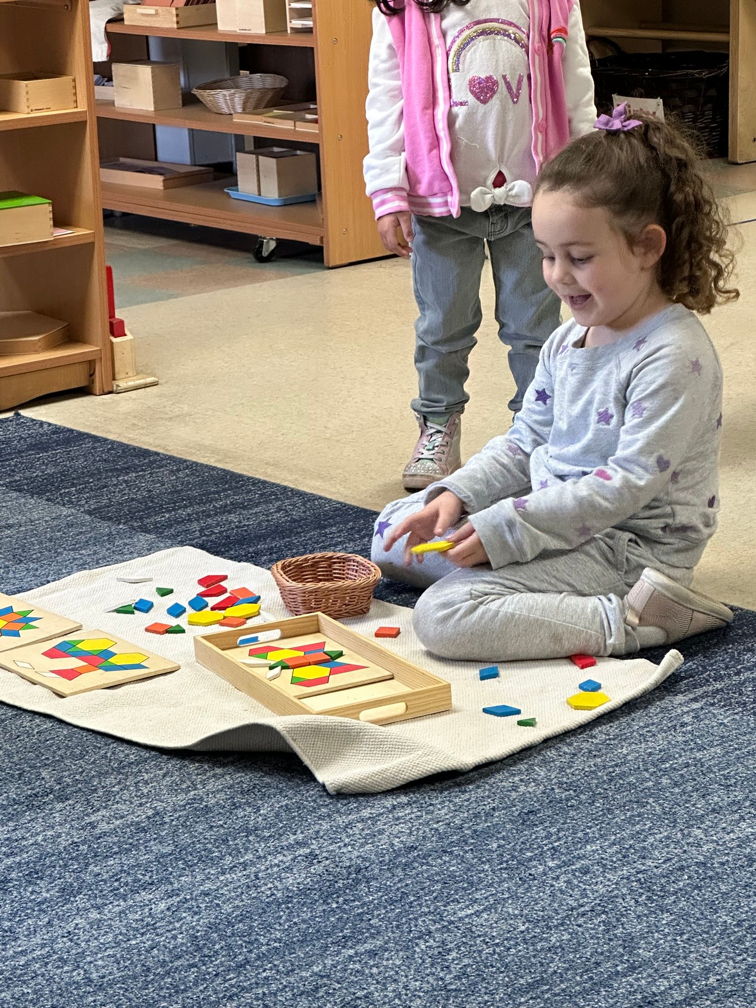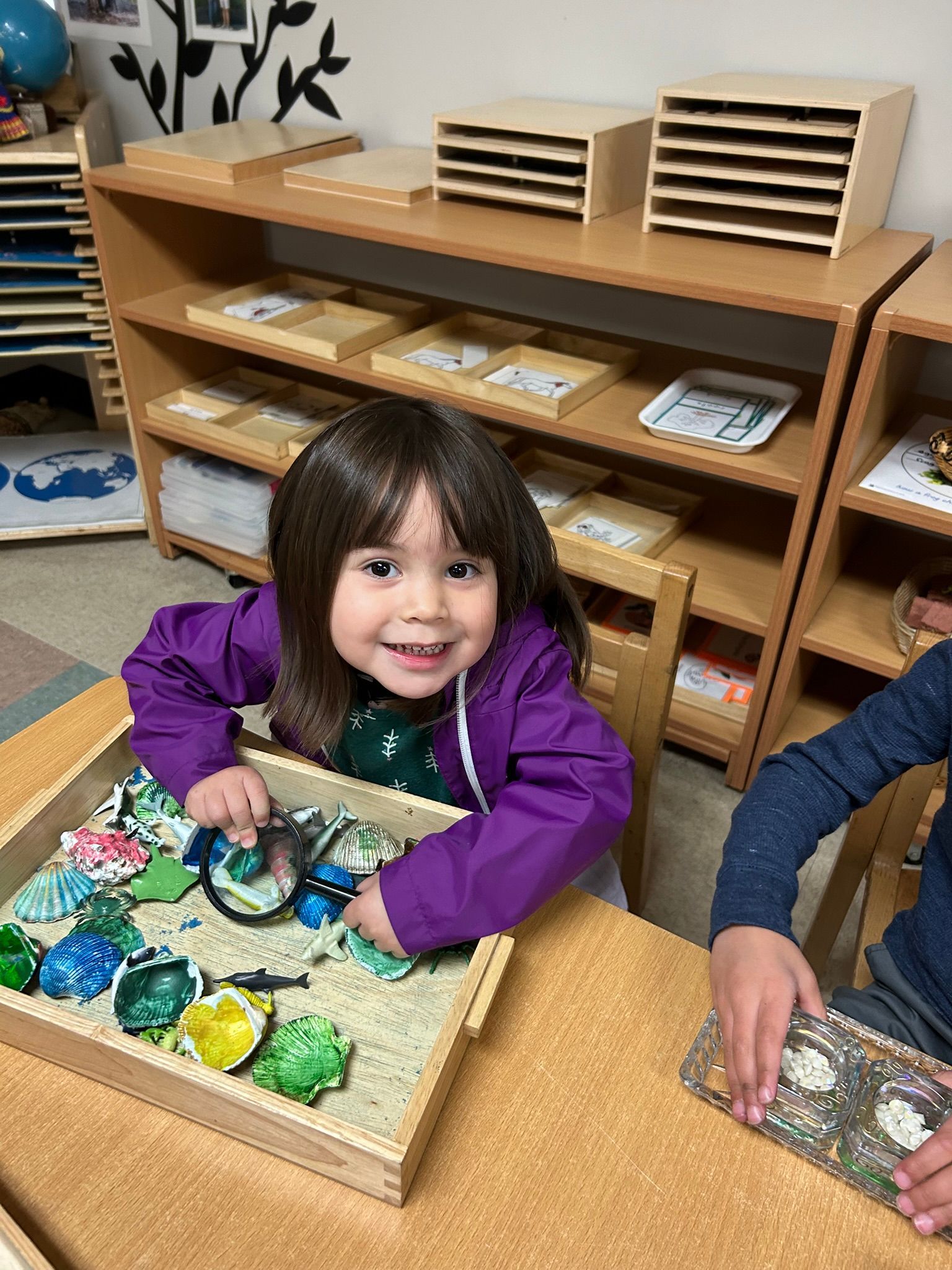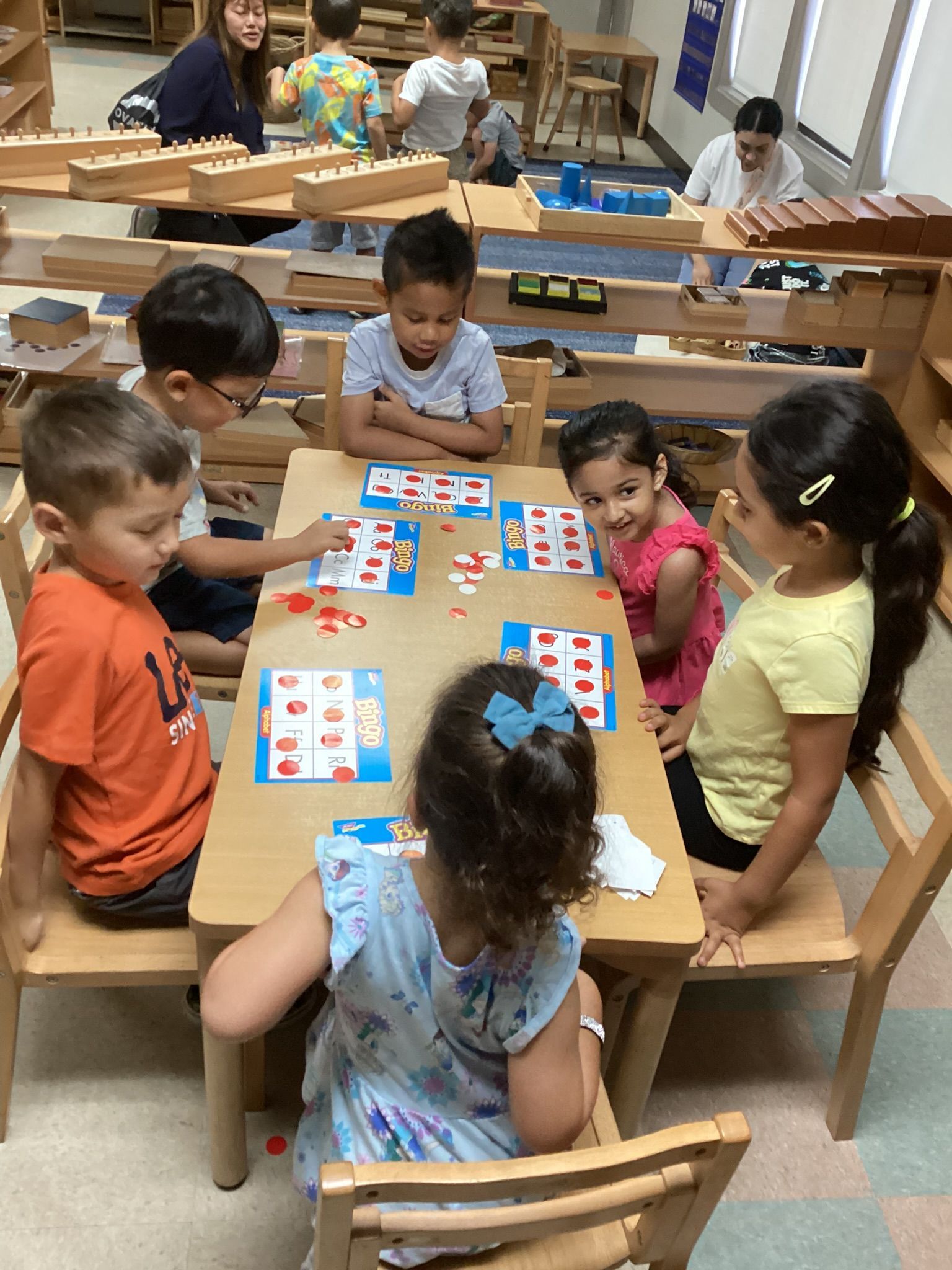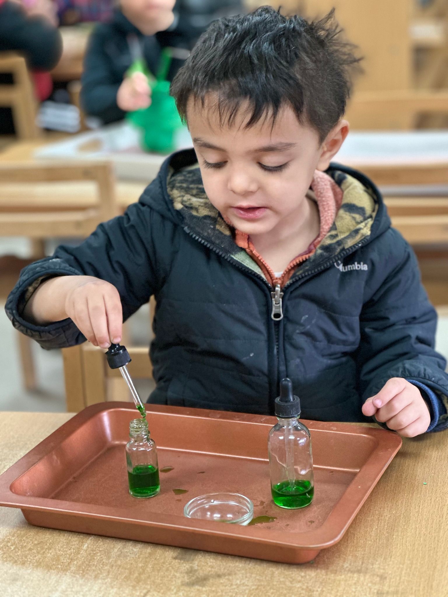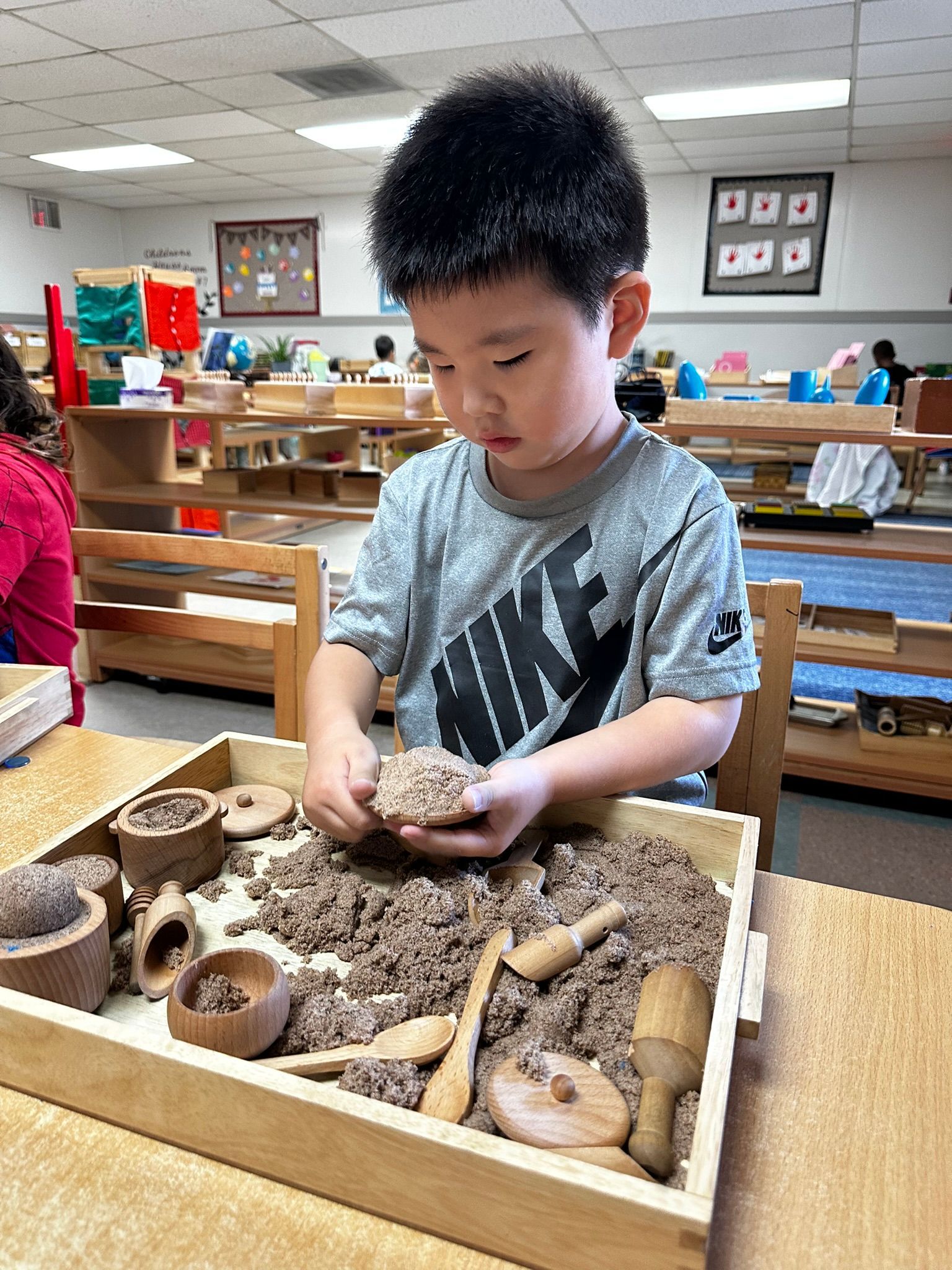 The children have been working on watering our garden plants. We enjoyed the fun spirit week we had with all the crazy hair, backwards clothes, sport day, superhero/princess, favorite color day! The children really enjoyed using the computers during our enrichment time. They have been practicing number order and writing. We continue practicing letter sounds and identifying their letters, as well as practicing their handwriting. We are enjoying our string work and pouring water work. We are continuing to practice our manners inside and out of the classroom.