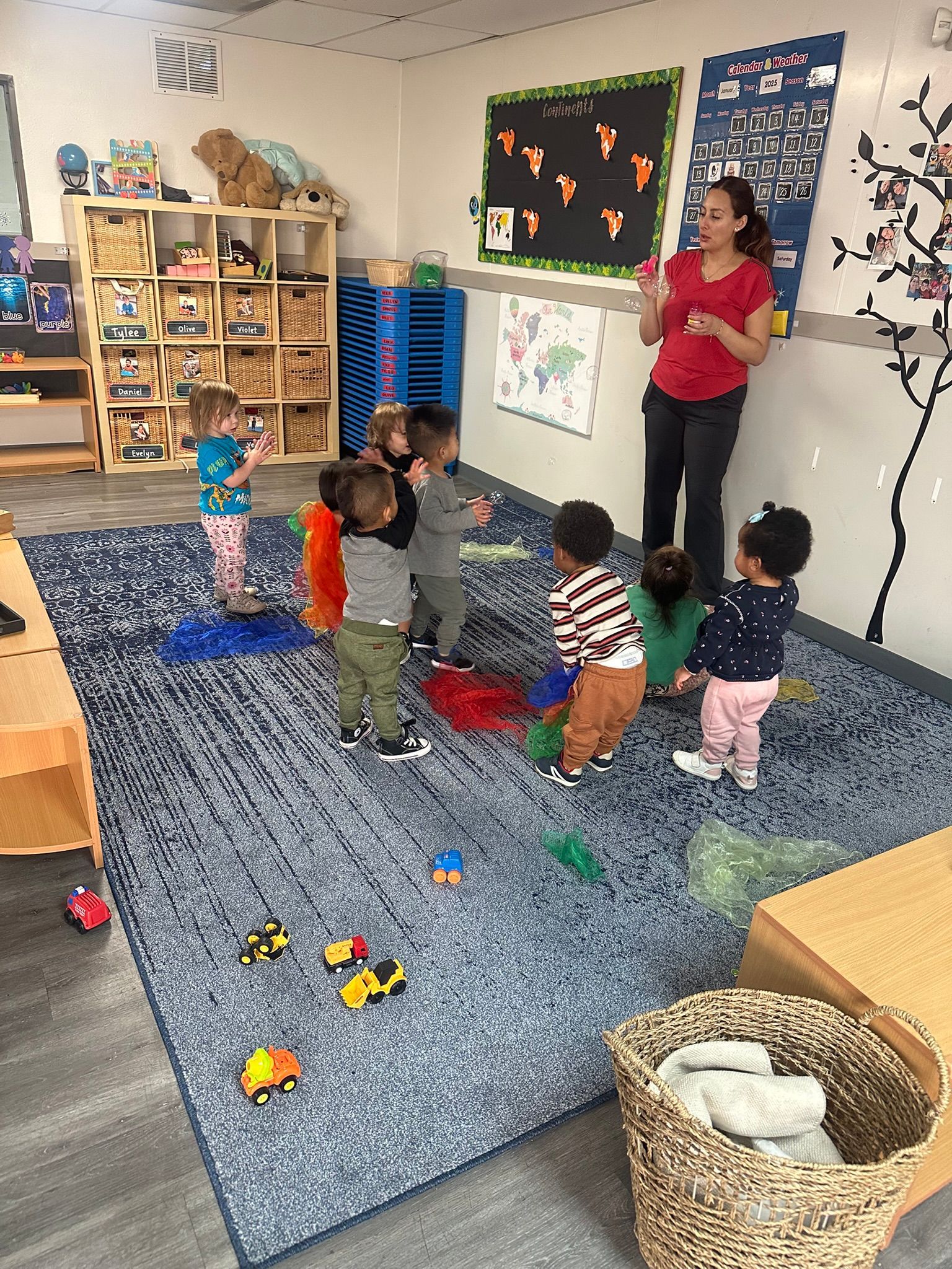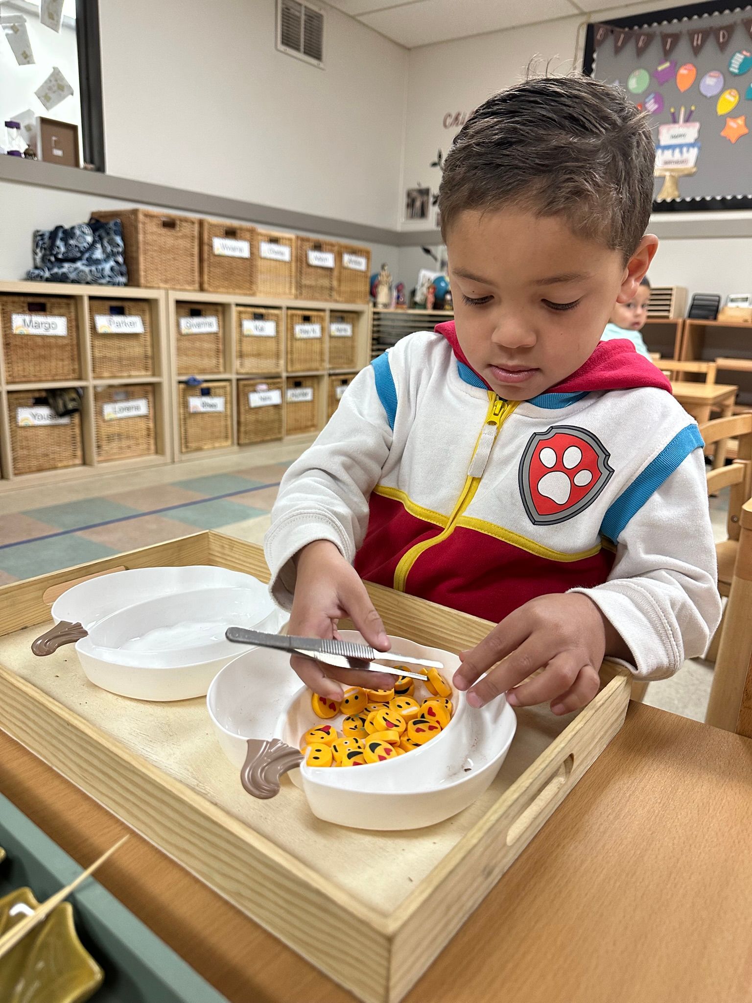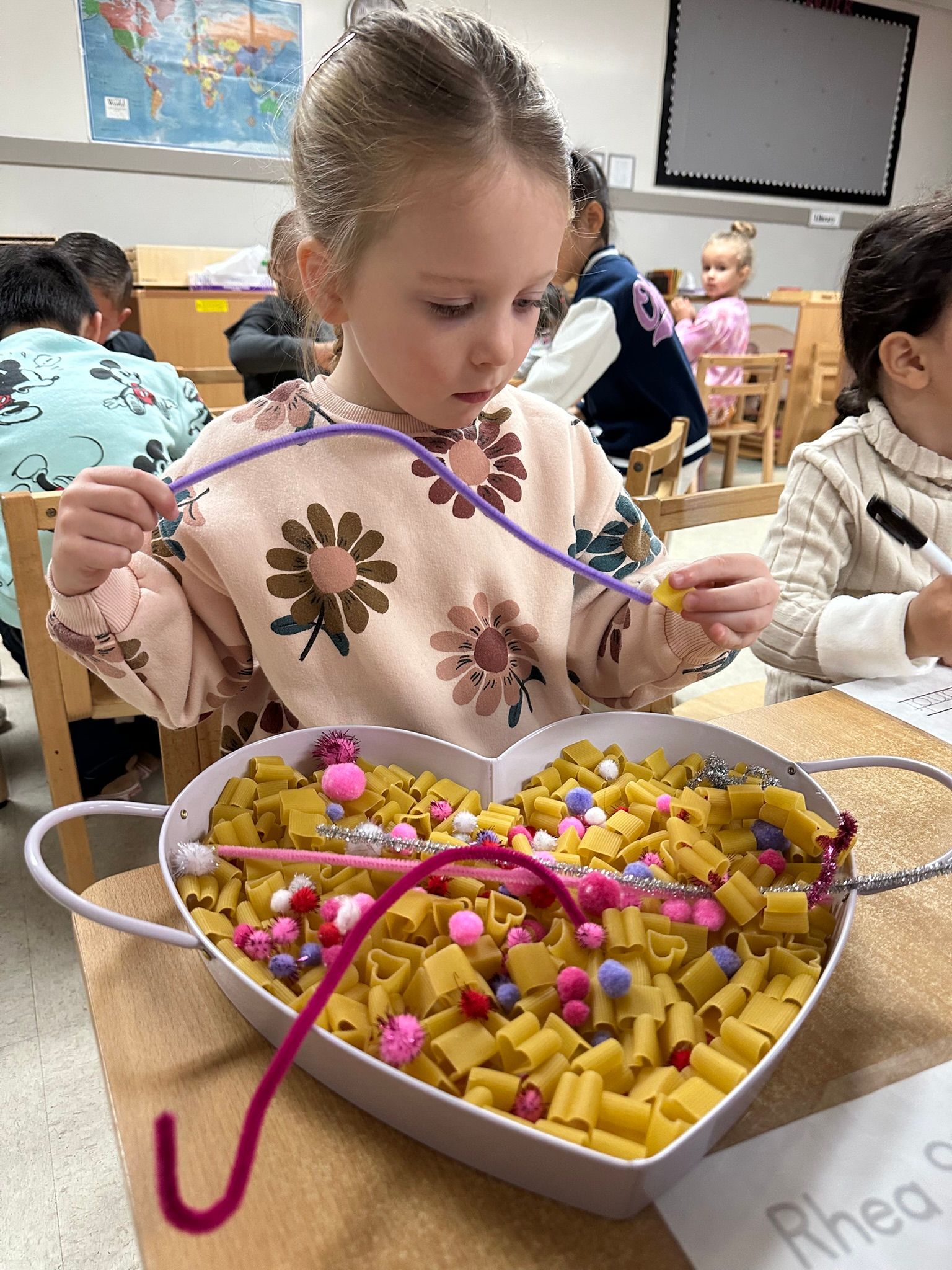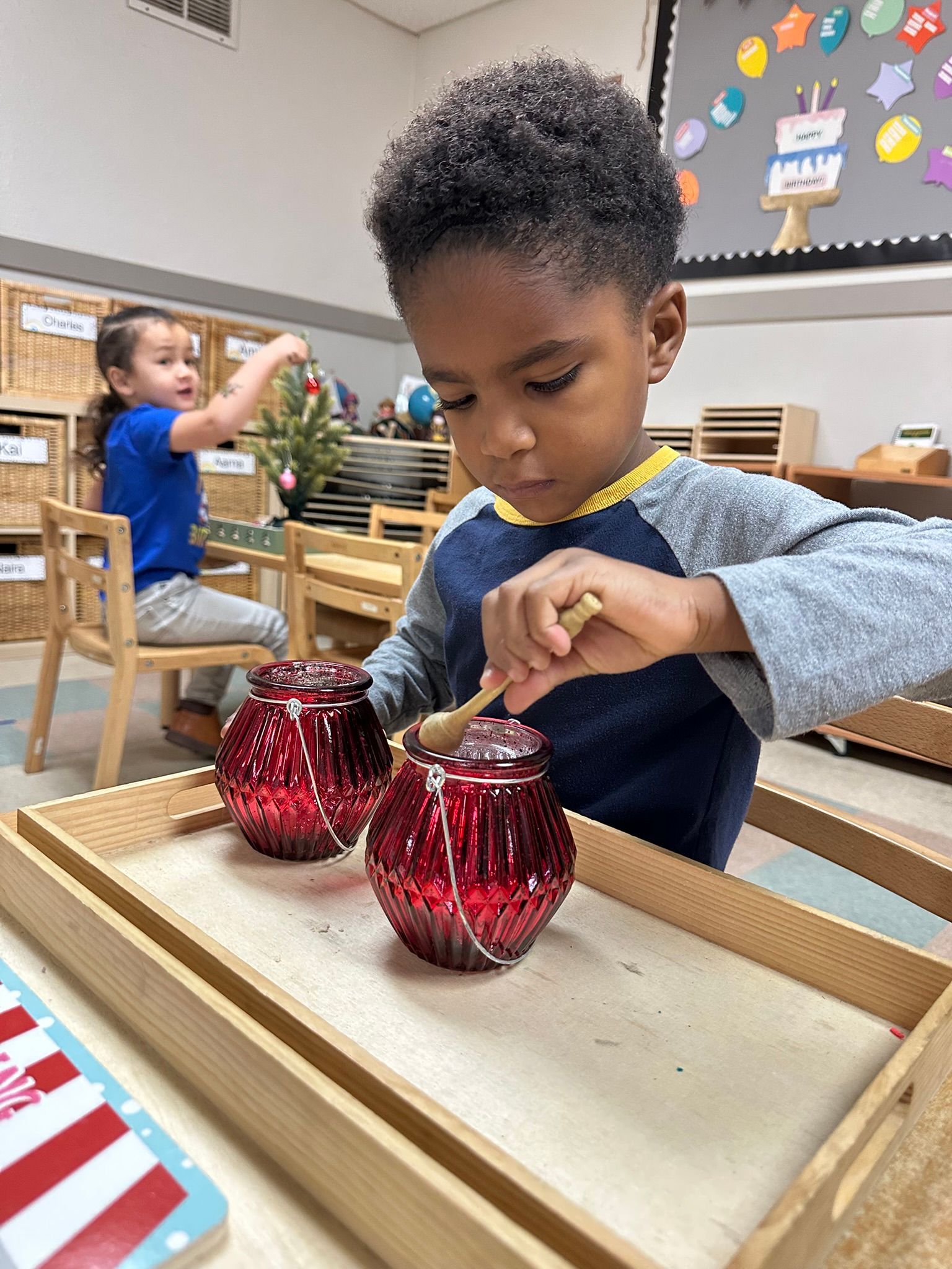 The children have been working on watering our garden plants. We enjoyed the fun spirit week we had with all the crazy hair, backwards clothes, sport day, superhero/princess, favorite color day! The children really enjoyed using the computers during our enrichment time. They have been practicing number order and writing. We continue practicing letter sounds and identifying their letters, as well as practicing their handwriting. We are enjoying our string work and pouring water work. We are continuing to practice our manners inside and out of the classroom.
