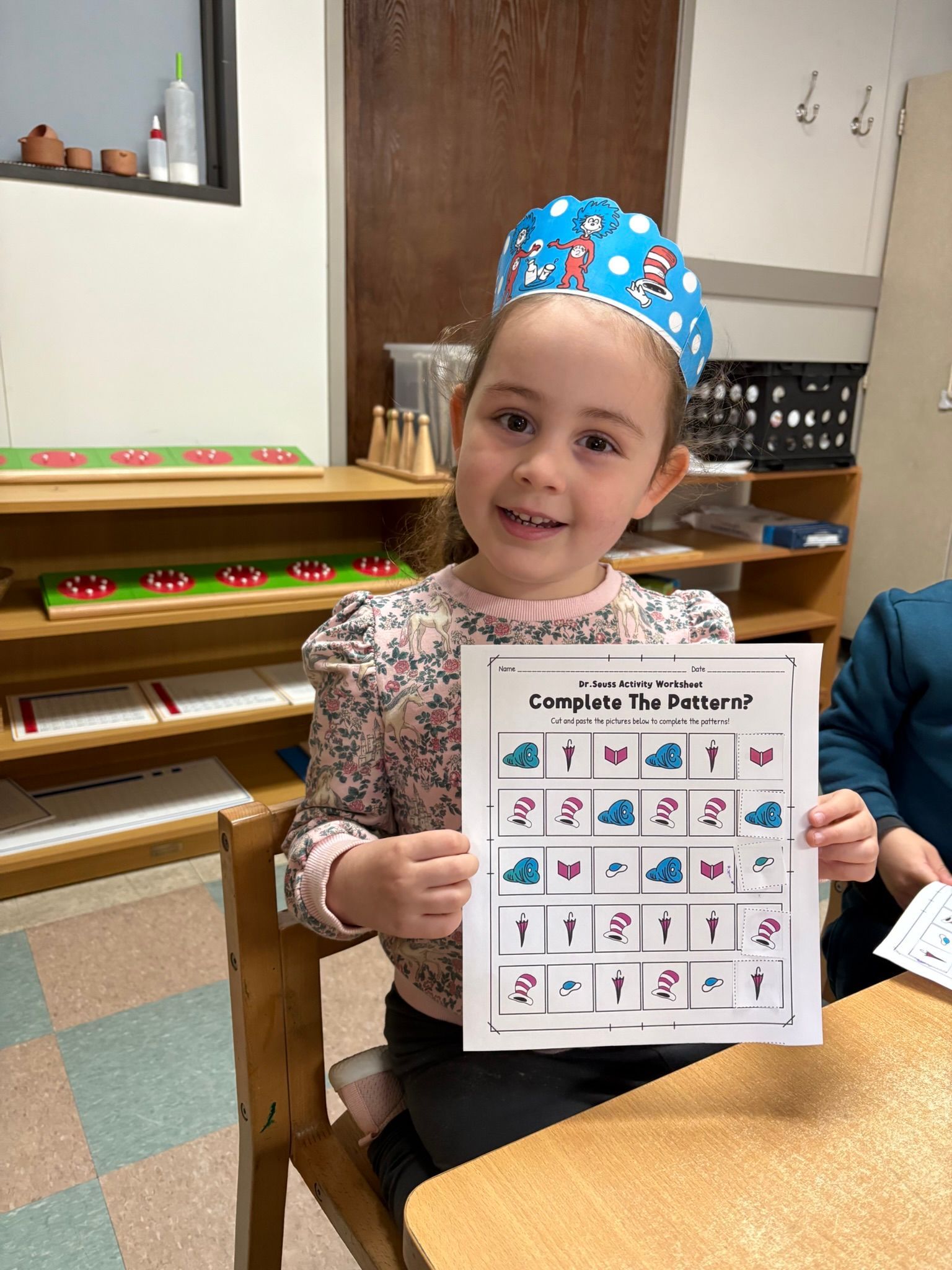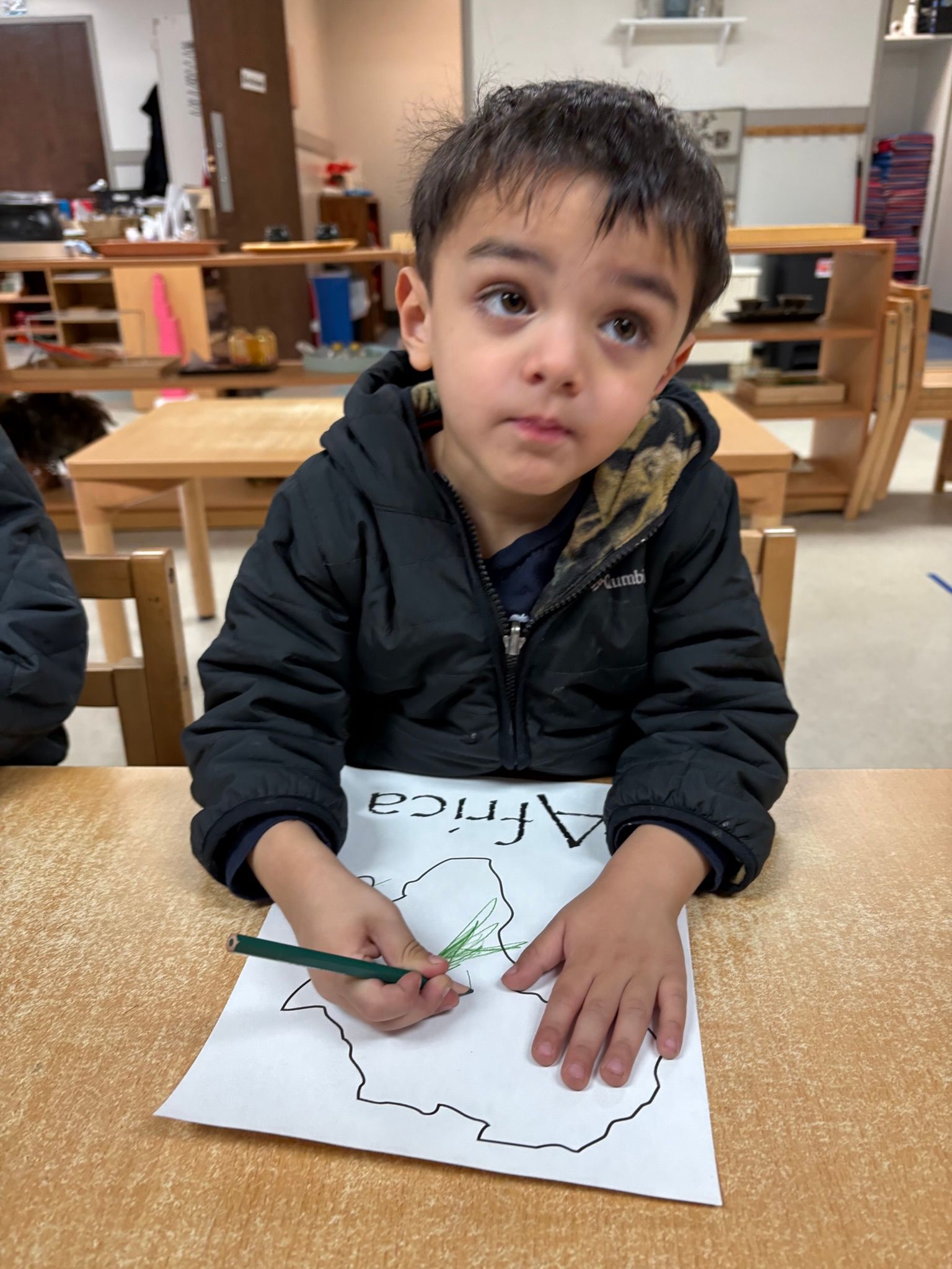 In March, we learned about all the different types of dinosaurs and Africa. The children’s favorite Dinosaur was the T-Rex! They colored their very own dinosaur after learning fun facts. They really enjoyed our sensorial bin work this month full of different types of dinosaurs with green magic sand and trees! They also really loved dissecting our dinosaur eggs that contained small dinosaurs inside. The children also learned about Africa as we looked at the different clothing they had, the children found the patterns so amazing! We even traced Africa and colored it green after finding it on our map. We read lots of fun Dr. Suess books. Their favorite story was Green Eggs and Ham. We then moved on to growing our very own beans. The children were fascinated to see how their beans grew! At the end they tried to draw the life cycle of their bean and of course had the opportunity to take it home to share with their family.