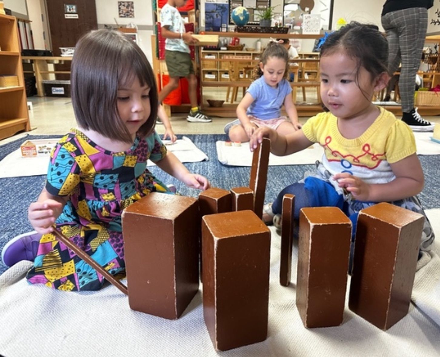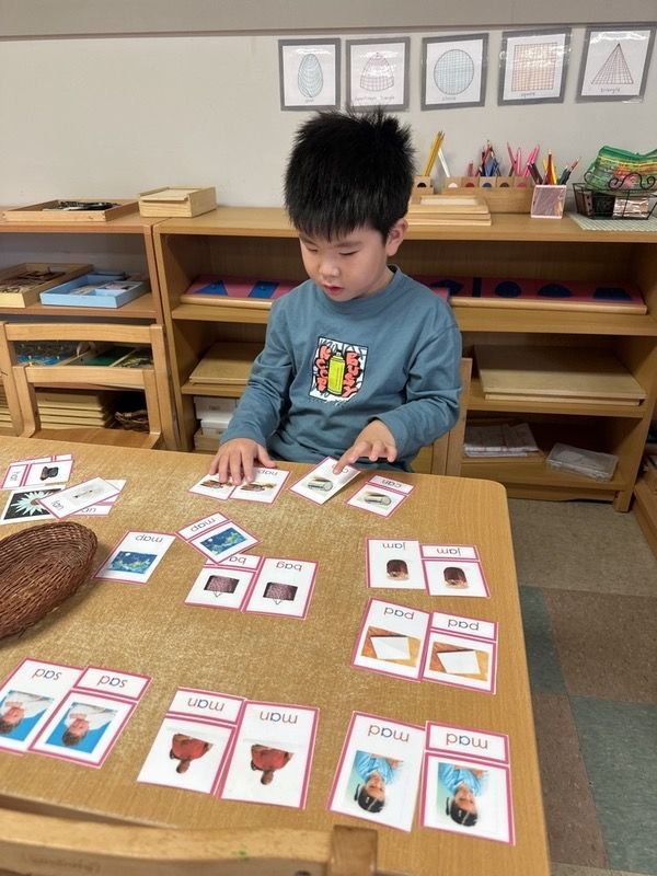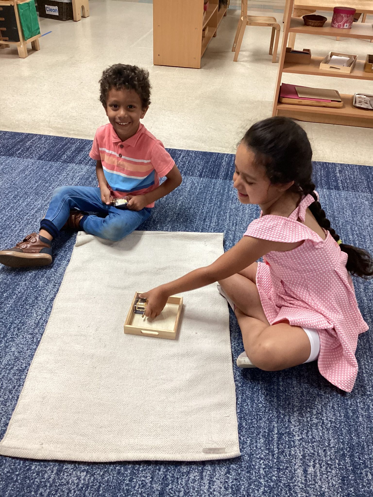 The children have been practicing their fine motor skills with various work such as tweezers, stringing, and dressing frames. We practiced our letter sounds by singing a song and using our sandpaper letters for language. We worked on our bead stairs for math and number rods. The children enjoyed doing this work. They were introduced to the triangle box and practiced nicely. We also practiced cleaning up our areas and the children really liked wiping down their tables with soap and water.