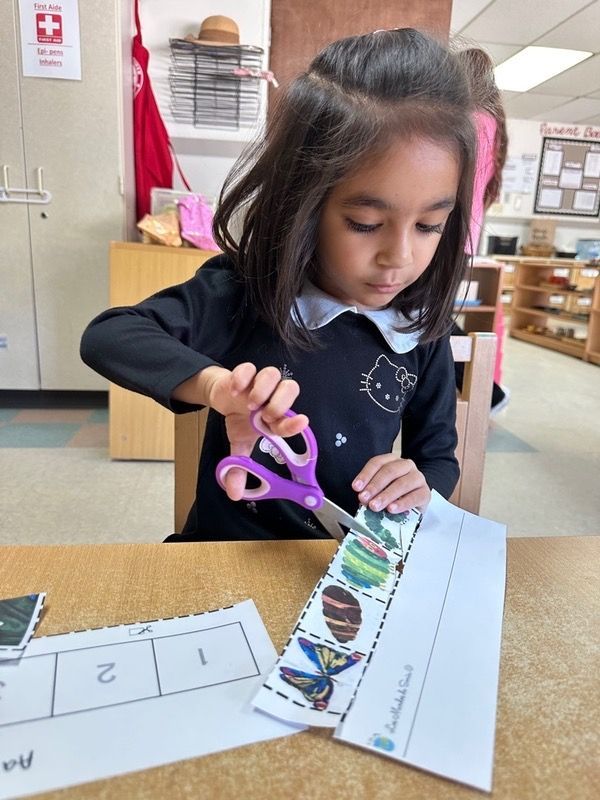 In May we studied all the different types of whales there are. The children’s favorite whale was the beluga whale for its unique features. We had a job to go along with that included several different whale figures that the children could feel and compare. We also learned all about South America from the animals they have to the various plants. We had pictures to look at during our circle time. The book of the month was The Very Hungry Caterpillar. The children then enjoyed making their own by coloring caterpillar and cutting it out to then glue on a piece of colorful paper. We also had a fun cutting activating where children had the opportunity to make their very own cycle of a butterfly.