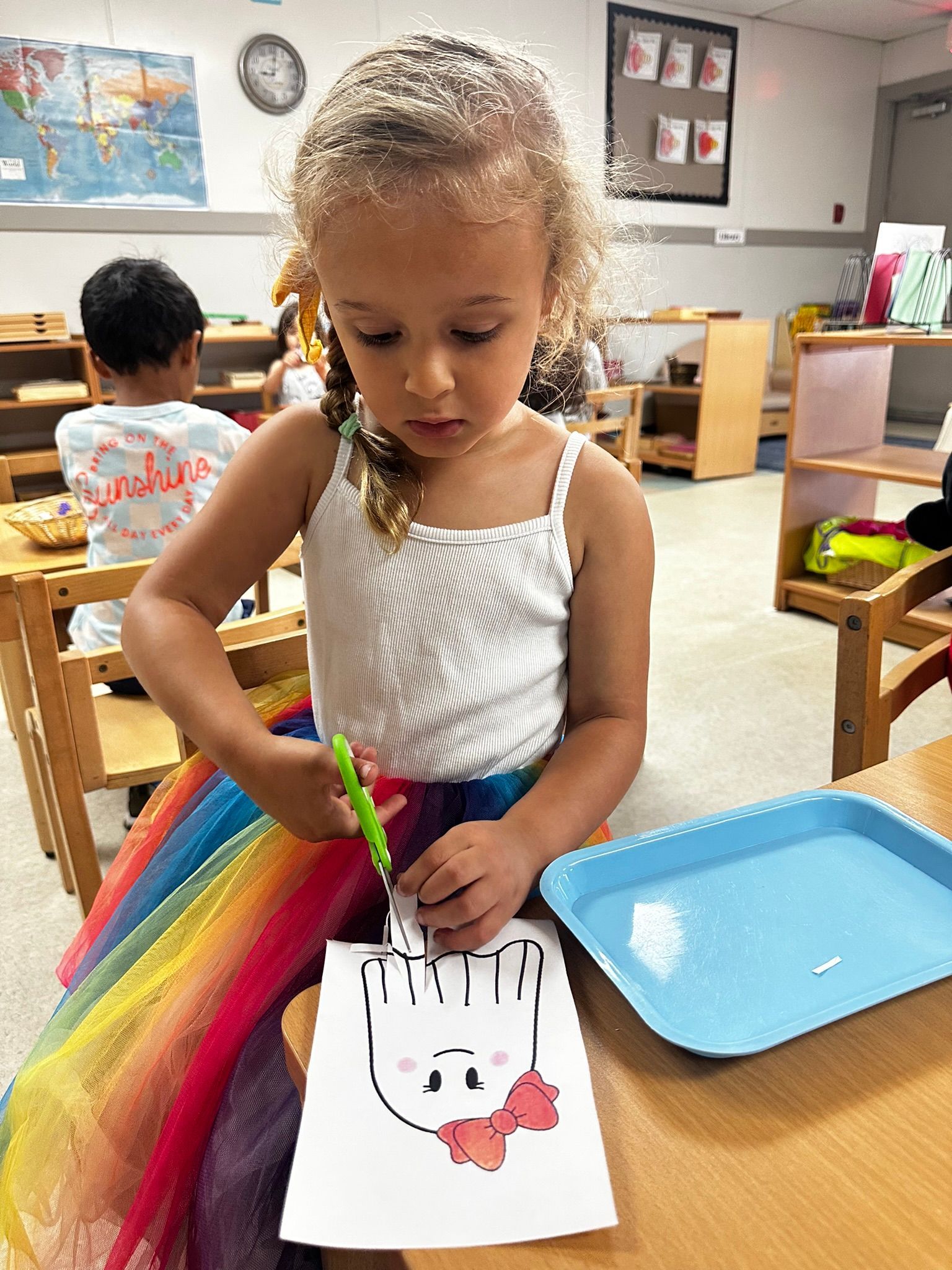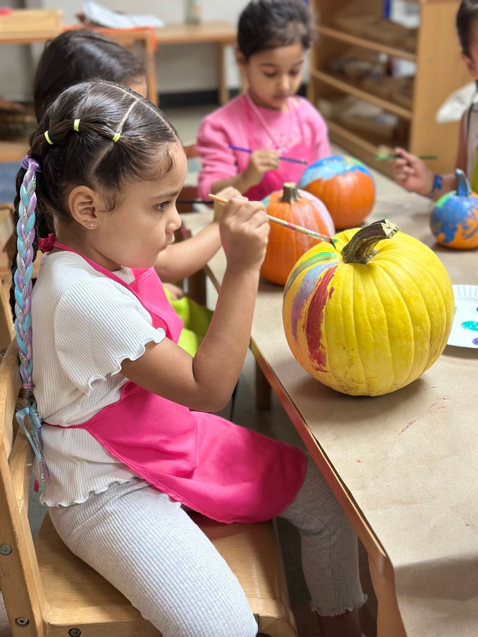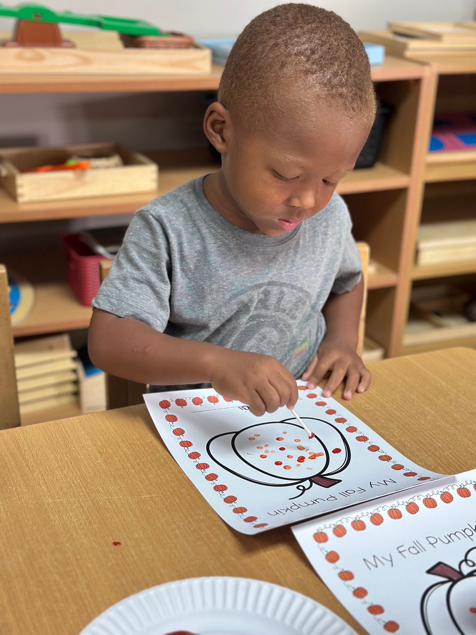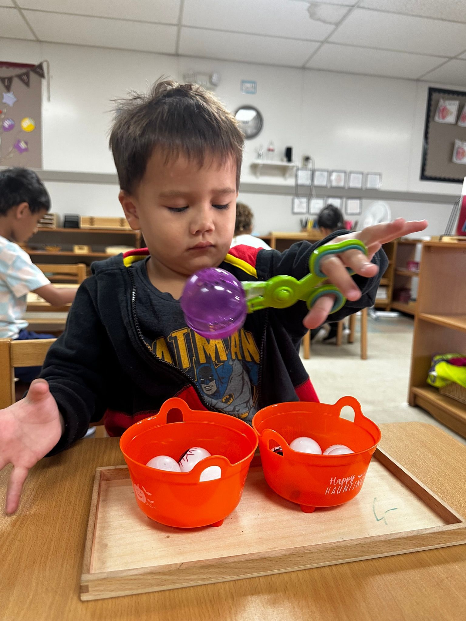We continued to work in the classroom, learning all our new work. Children really enjoyed our eyeballs transferring job in practical life. We also learned all about planets. The children loved all the fun jobs we had. Placing each planet in order was their favorite. The children also made a fun hat, with all the planets, that they colored themselves. We also worked on learning how to complete a whole work cycle and how to work independently. The children were building their fine motor skills by using tweezers, spoons and even scissors. We practiced cutting with fun patterns and ghost. They had so much fun learning all about pumpkins from looking inside one to learning how they grow. We did a fun cutting page where we glued each part of a pumpkin. They even had the opportunity to paint their very own pumpkin. It was a blast! Lastly, we ended the month with our trick or treat event. The children had so much fun showing off all their unique costumes! Thank you, parents, for donating all those yummy treats!