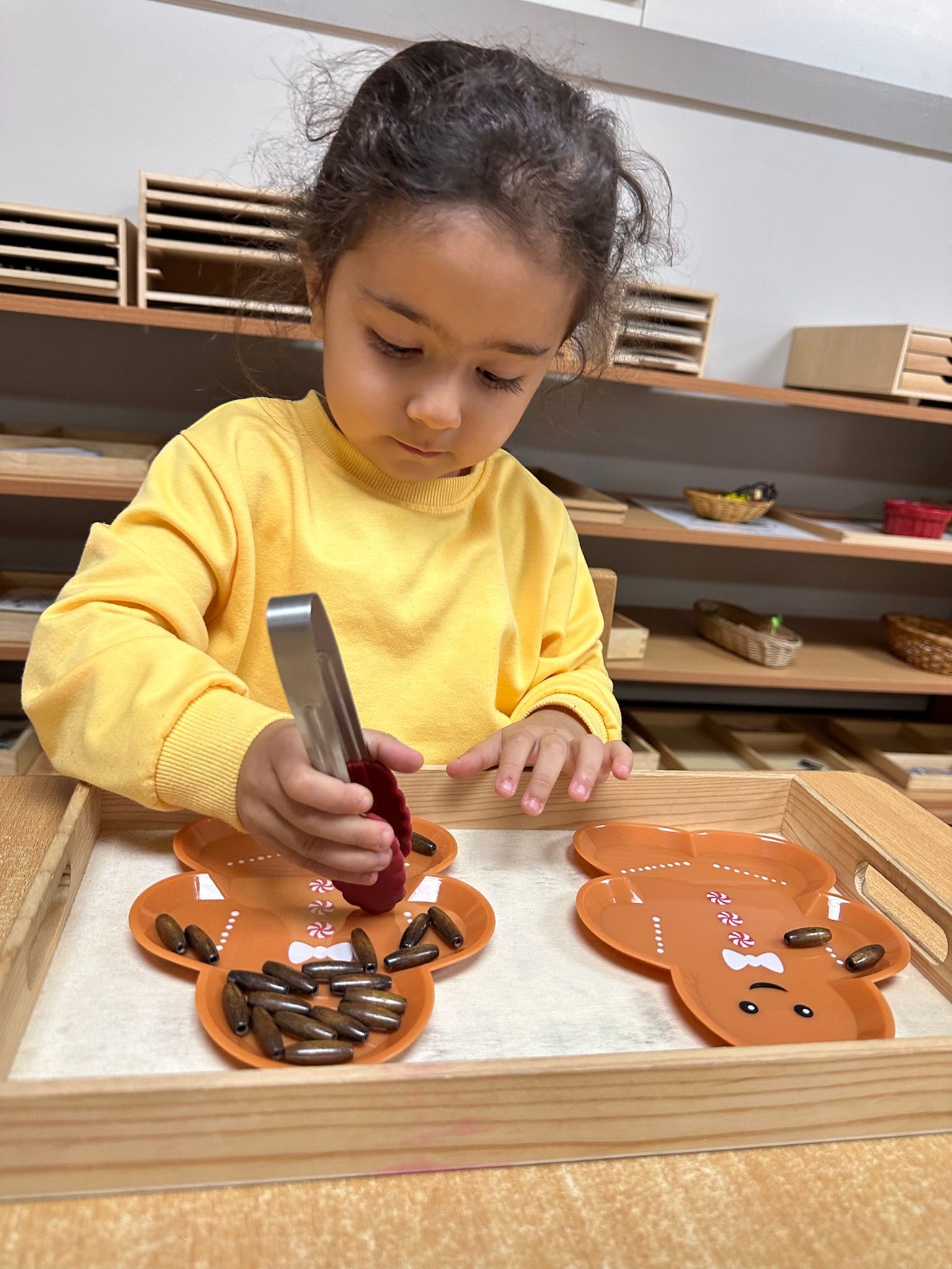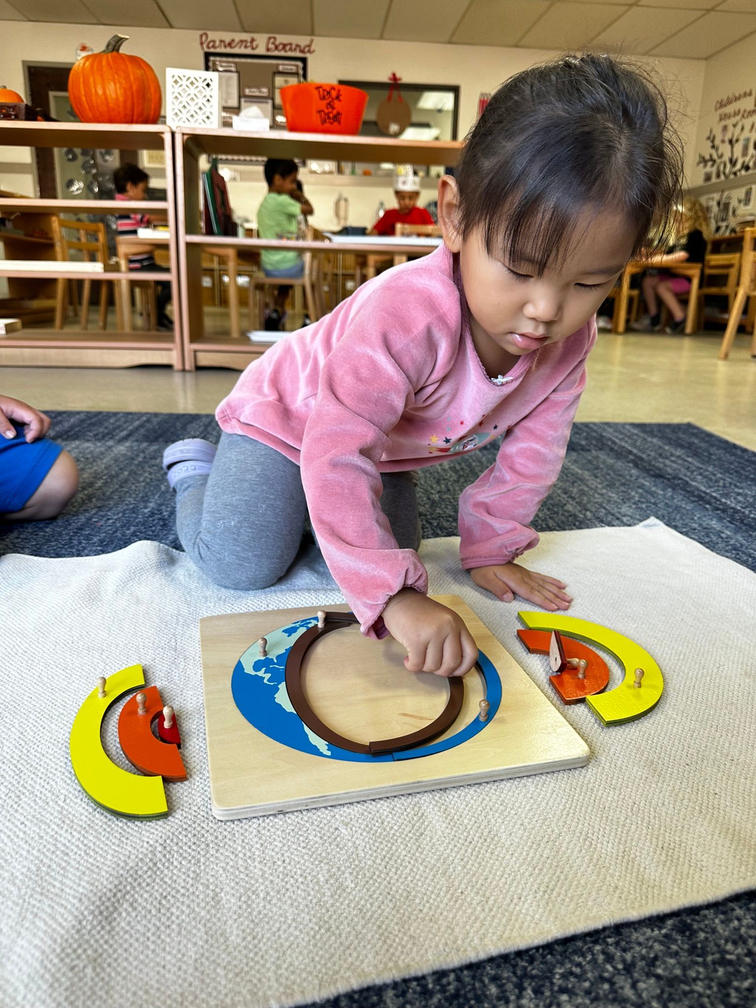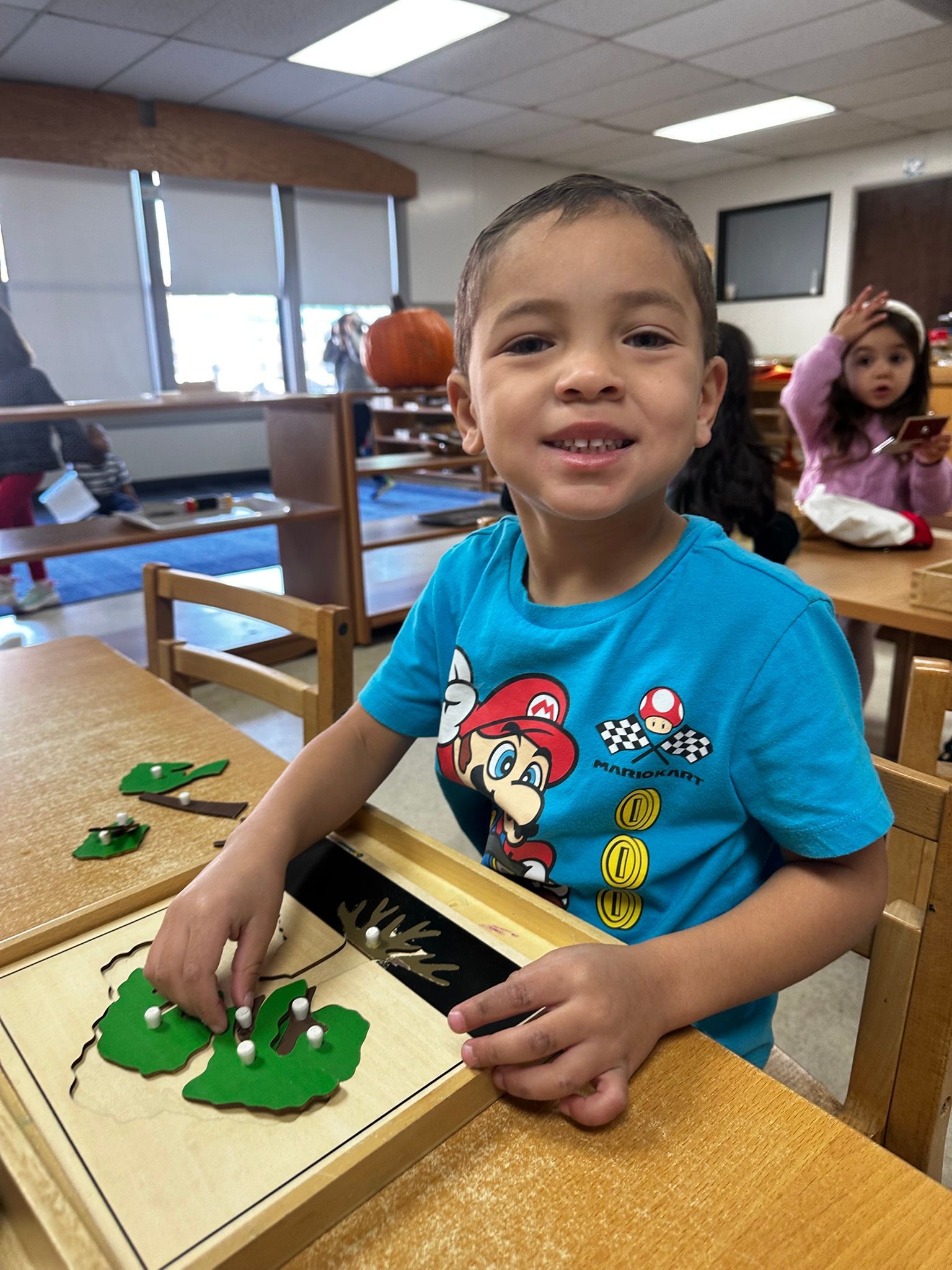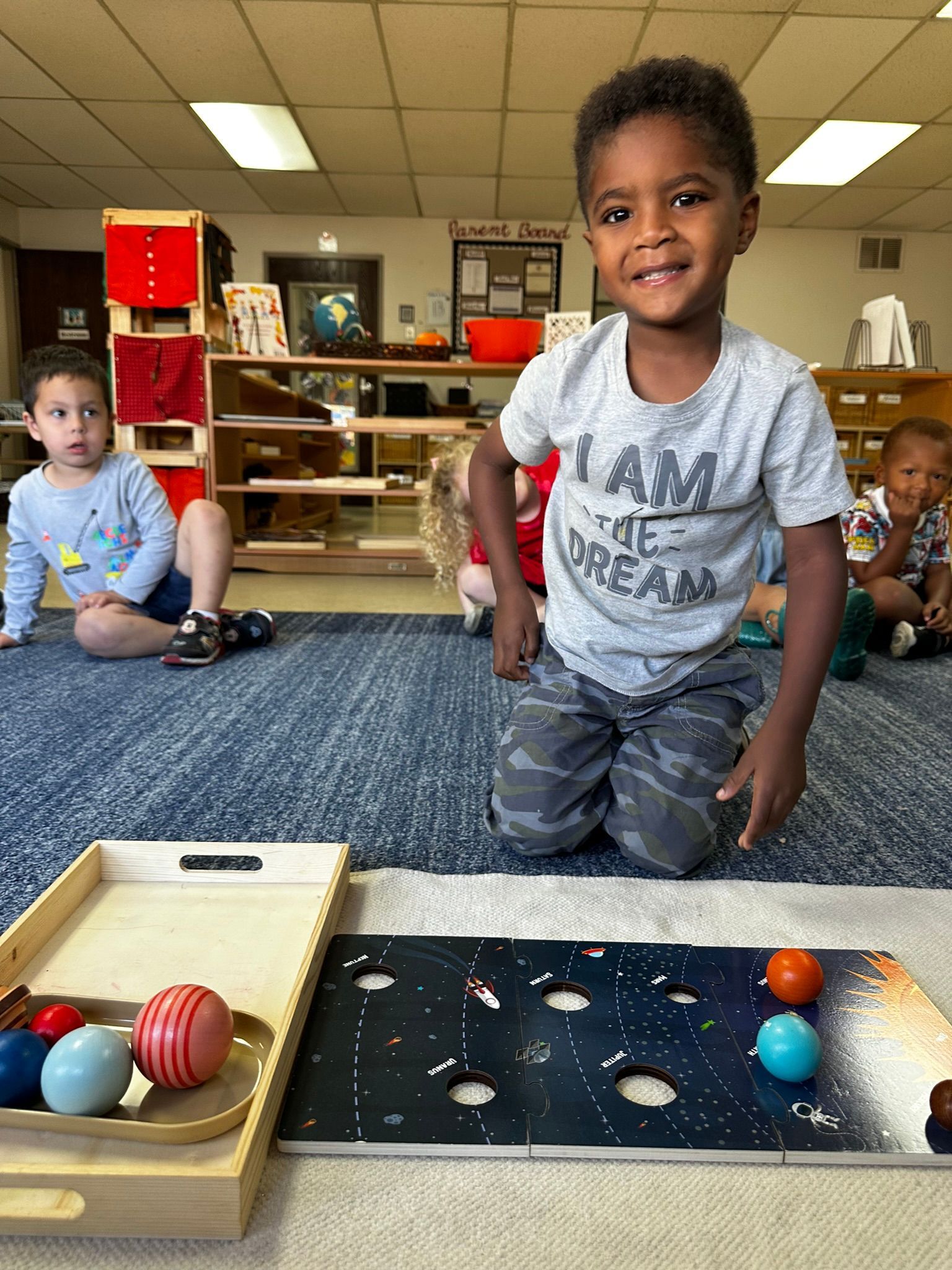We continued to work in the classroom, learning all our new work. Children really enjoyed our eyeballs transferring job in practical life. We also learned all about planets. The children loved all the fun jobs we had. Placing each planet in order was their favorite. The children also made a fun hat, with all the planets, that they colored themselves. We also worked on learning how to complete a whole work cycle and how to work independently. The children were building their fine motor skills by using tweezers, spoons and even scissors. We practiced cutting with fun patterns and ghost. They had so much fun learning all about pumpkins from looking inside one to learning how they grow. We did a fun cutting page where we glued each part of a pumpkin. They even had the opportunity to paint their very own pumpkin. It was a blast! Lastly, we ended the month with our trick or treat event. The children had so much fun showing off all their unique costumes! Thank you, parents, for donating all those yummy treats!