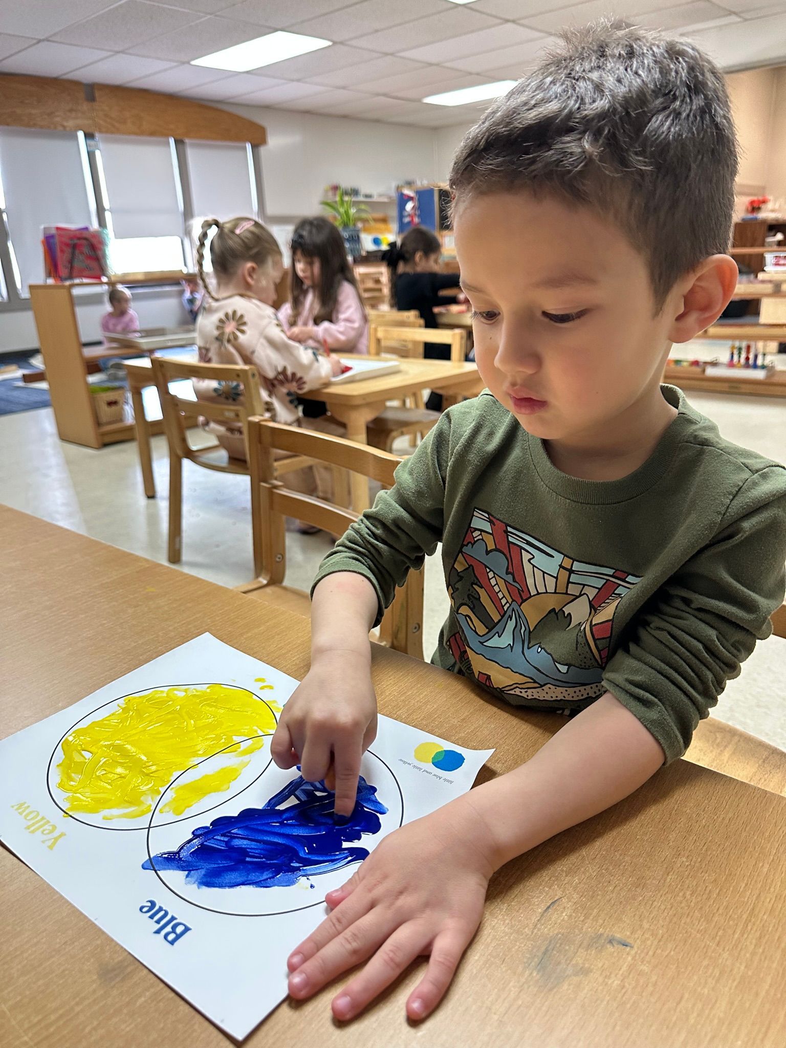 February was all about Cultural Awareness & Friendship! We started off the month by celebrating Lunar New Year. We had a fun coloring page to go along with it. We also talked about Black History month and what it meant. We read various books and talked about all the people that were marked down in history. We then moved on to learning all about Asia! The children colored their very own Asia and knew how to find it on the 7-continent map. They also loved learning about all the different clothing attire they have in various parts of Asia. We had a fun job with pictures to match and we went over it all together during circle time. We also read our book of the month, Little Blue Little Yellow. The children learned how mixing blue and yellow made green. They had a fun Venn diagram that they painted.