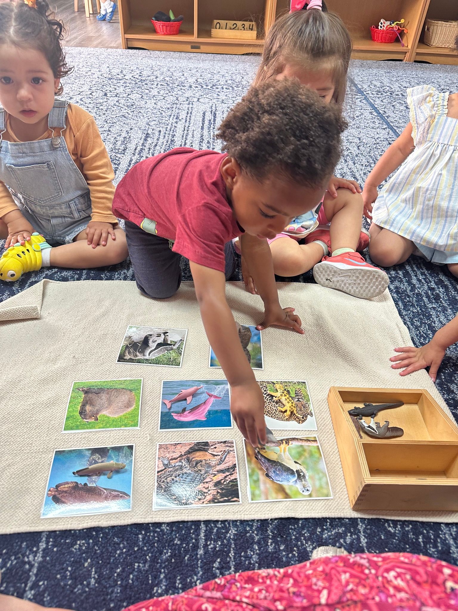 Our Montessori curriculum focused on care of the self as we practiced hand washing and nose blowing to help keep those germs away. We learned about the letters w, x, y, and z. W is for watermelon and Z is for zebra! We had fun on our rainy days with sensory bin play and painting with water. To celebrate Dr. Seuss, we made colorful fish out of tissue paper and read One Fish, Two Fish, Red Fish Blue Fish. In Sensorial we compared the sizes of objects using the words Big and Small. In math we introduced the numbers 6-10 and reviewed the numbers 1-5 by counting songs and the sandpaper numerals. We also had fun naming dinosaurs and matching animals found in Africa to picture cards.