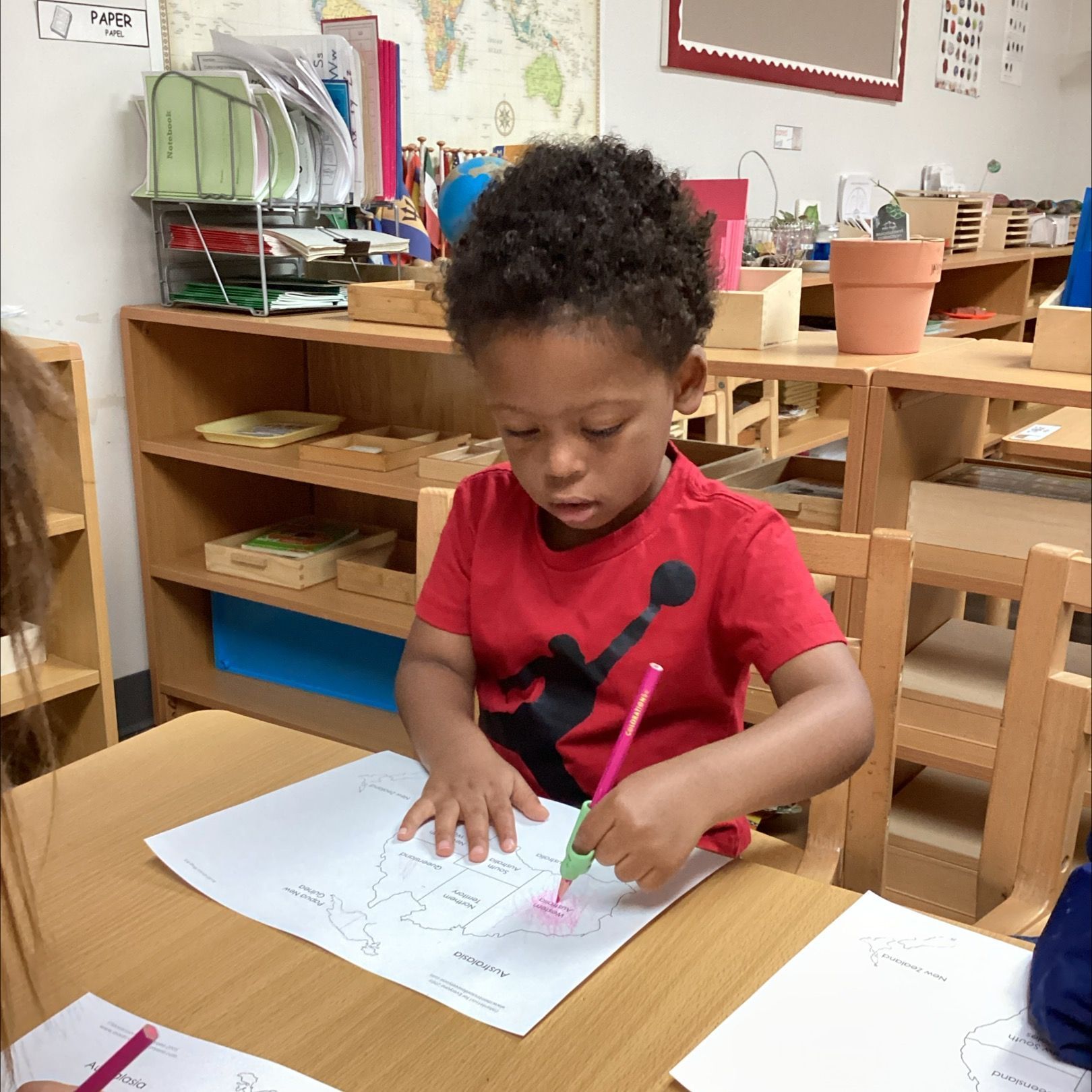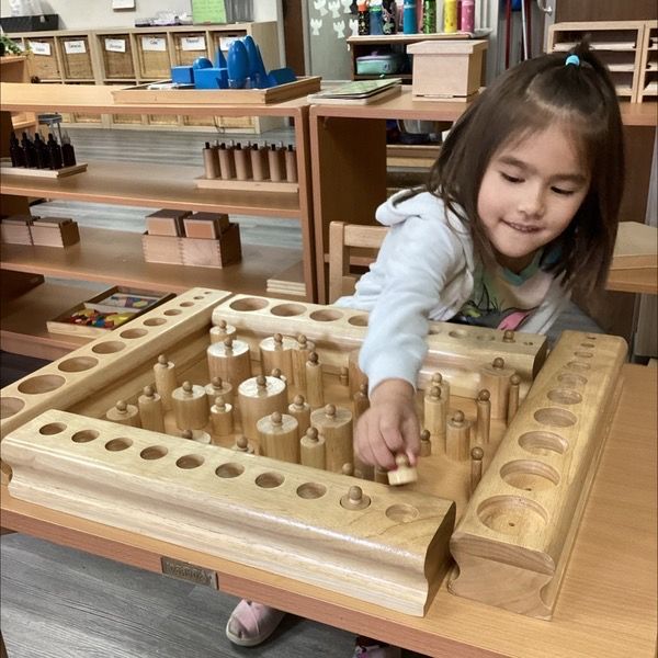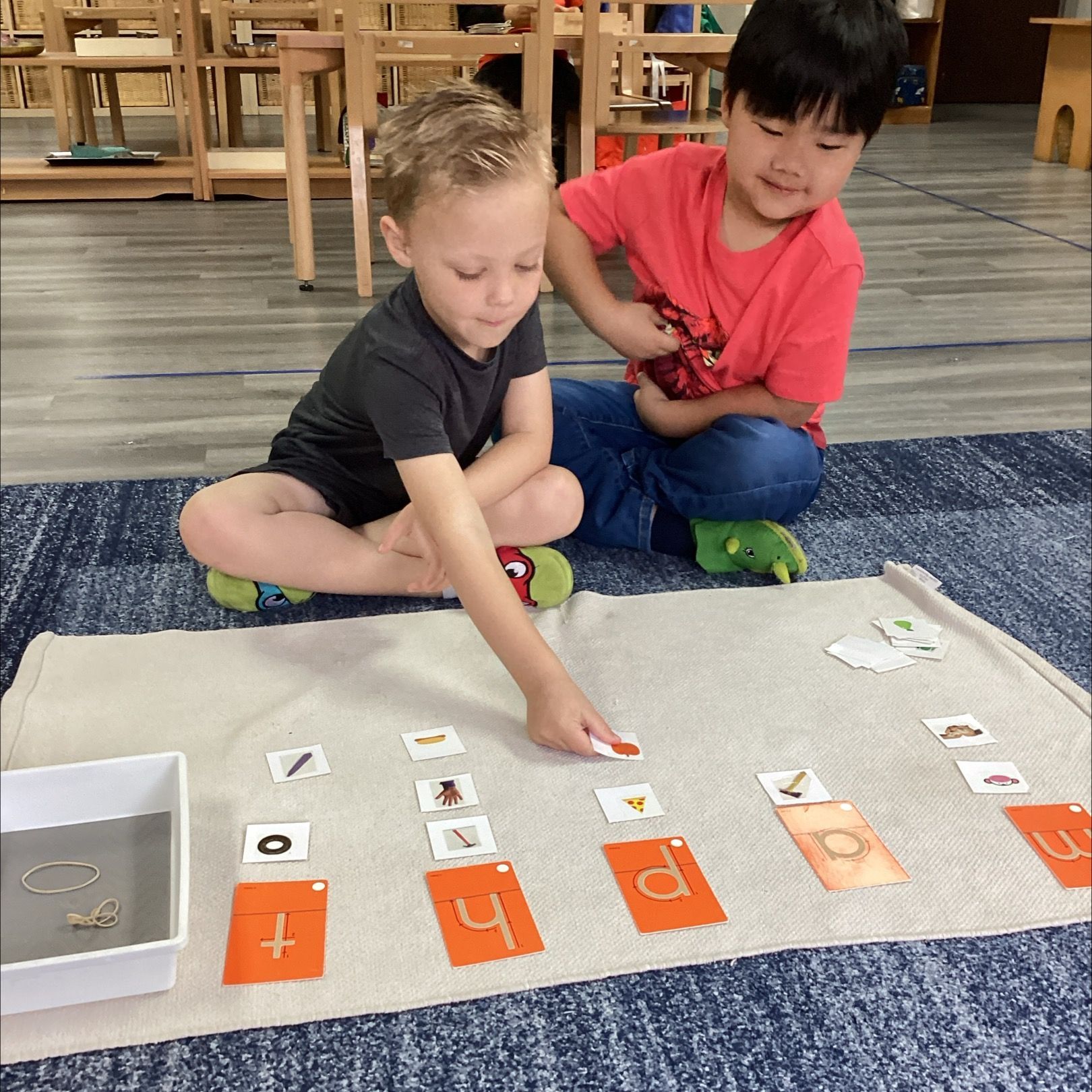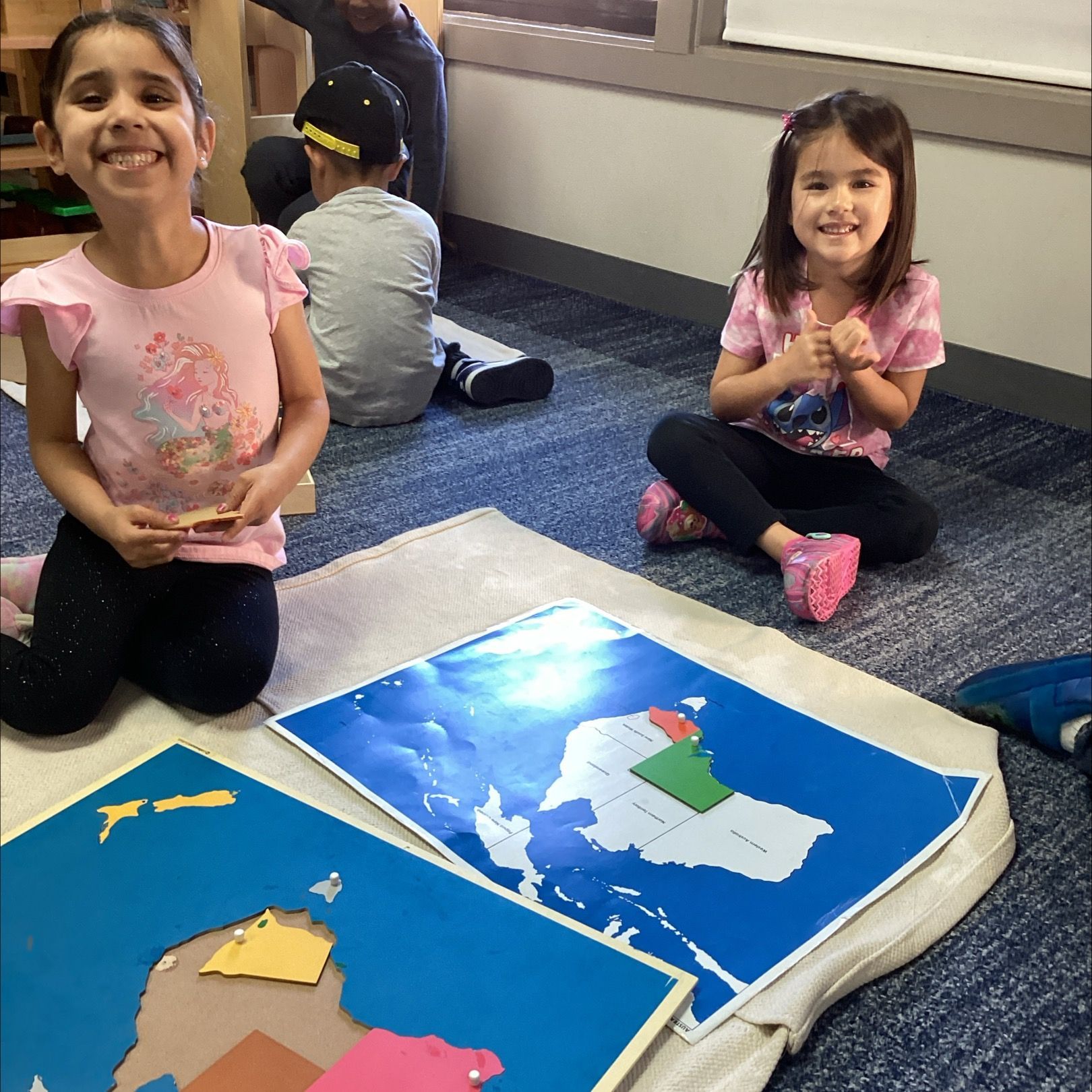 We have been going over all our classroom/playground rules and how we can maintain a clean environment. During the first month we also focused a lot on normalization of the classroom and routine. We learned how to use a dustpan and spray bottle to clean our tables. Children were also introduced to several Montessori jobs during our circle time like the pink tower and knobbles cylinders. They have really enjoyed our practical life shelves. A couple of their favorite jobs are lock and key and the 7 continents large map puzzle.