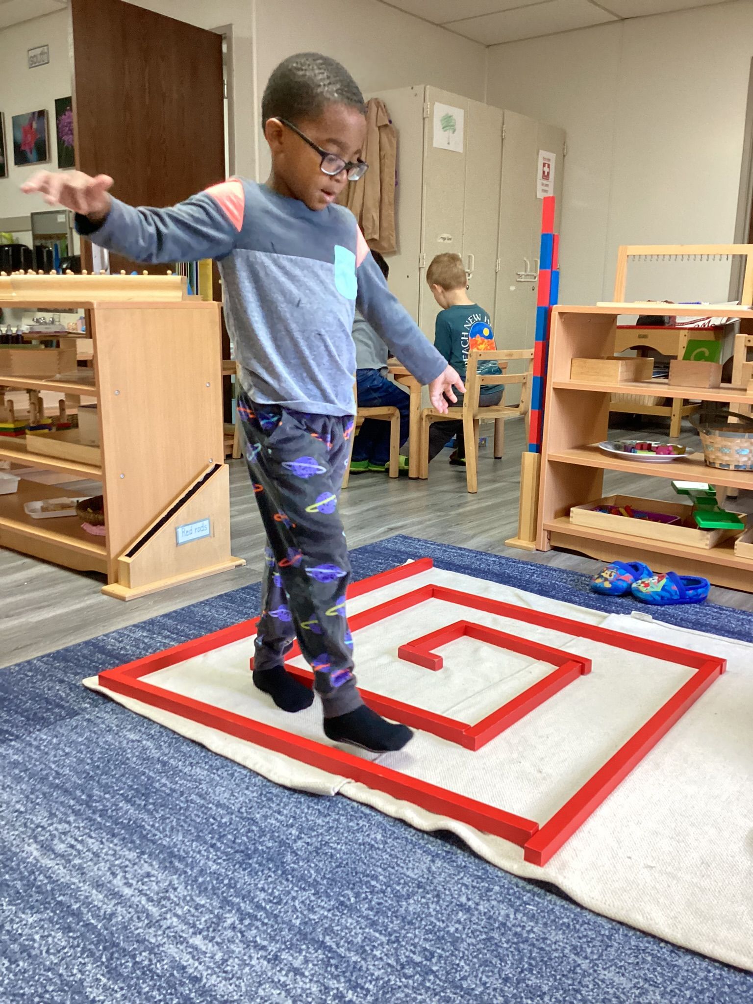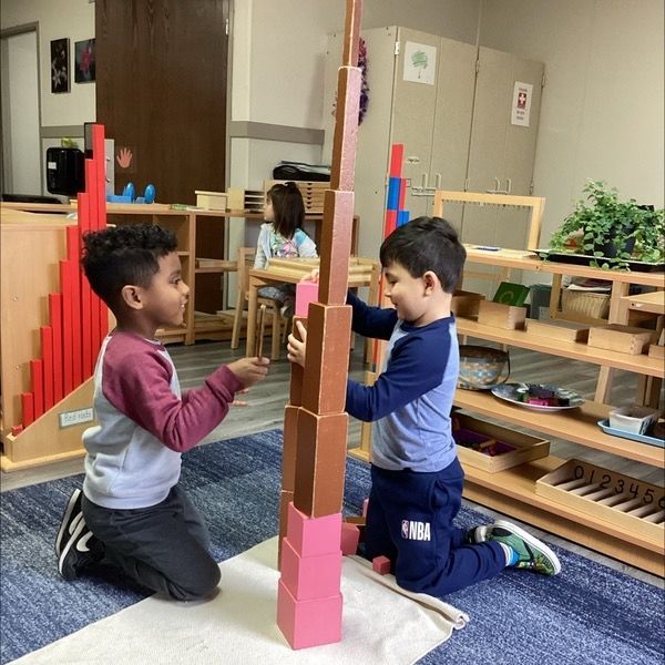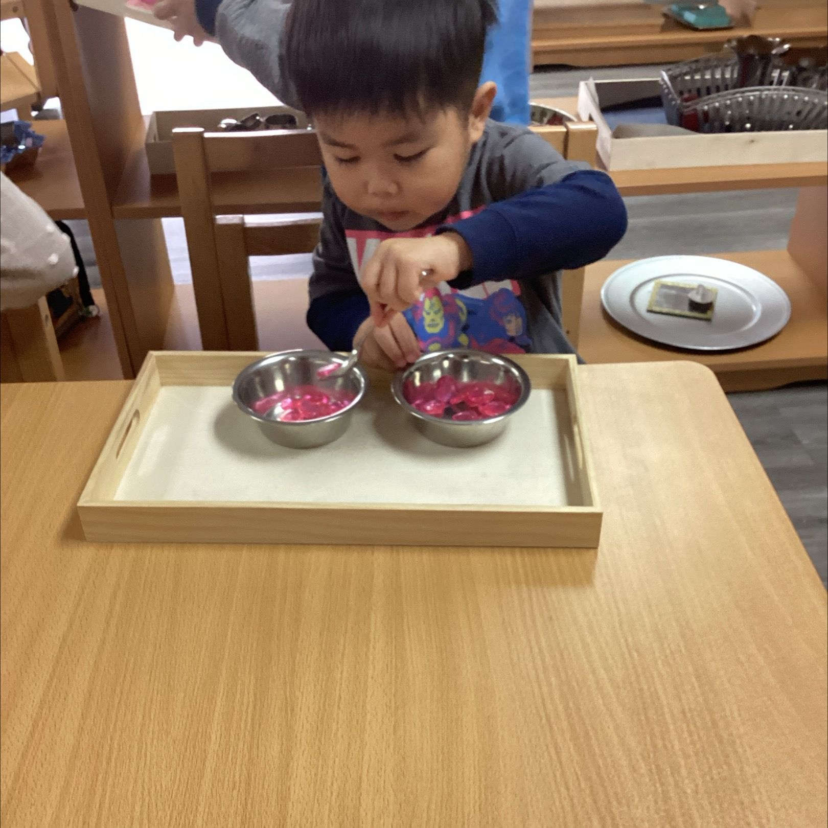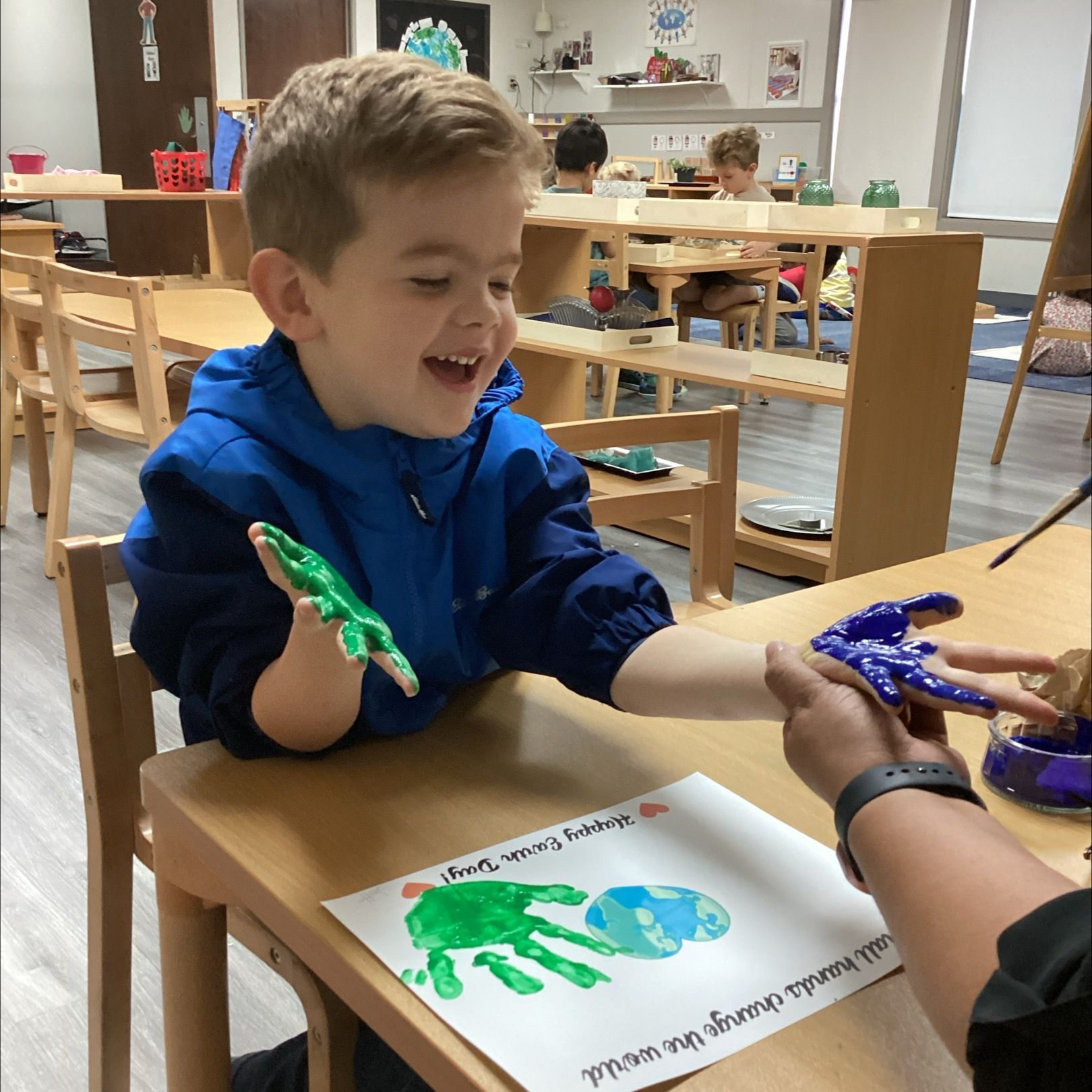 For Montessori, we enjoyed planting the succulents and caring for and watering the plants in our garden. We learned about parts of a seed by cutting an apple to observe the seed. As a class, we also discussed details of a tree, a flower, and the lifecycle of a plant. For science, we talked about rainbows and how they form. Following that, we learned about "reduce, reuse, & recycle" and its importance. For Grace and Courtesy, we talked about proper greetings with handshakes, napkin folding, and setting tables.