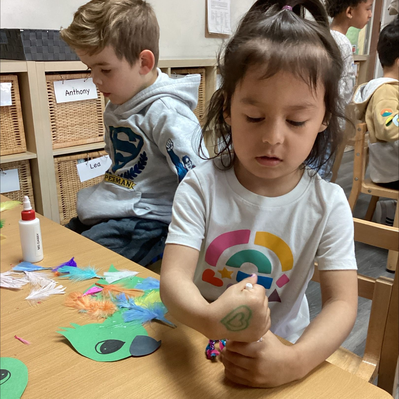 March was full of learning activities and a lot of reading. We celebrated Dr. Seuss's birthday, reading and sharing his books with the class. Also, we had so much fun celebrating St Patrick's Day. The children had so much fun making Dr. Seuss's hat. Also, children learned about the Rainforest and South America. We discussed and studied the layers of the rainforest. We focused on the animals who live in each part of the layers. The children had fun locating South America on the map and the Globe. They enjoyed learning about the animals found in South America. Also, they learned about the countries, people, language, music, and sports. Children shared printable animals from South America; they cut and glued their animals on the landscape and worked on their favorite South American animal collage posters. We are looking forward to our Easter egg hunt and Spring party.