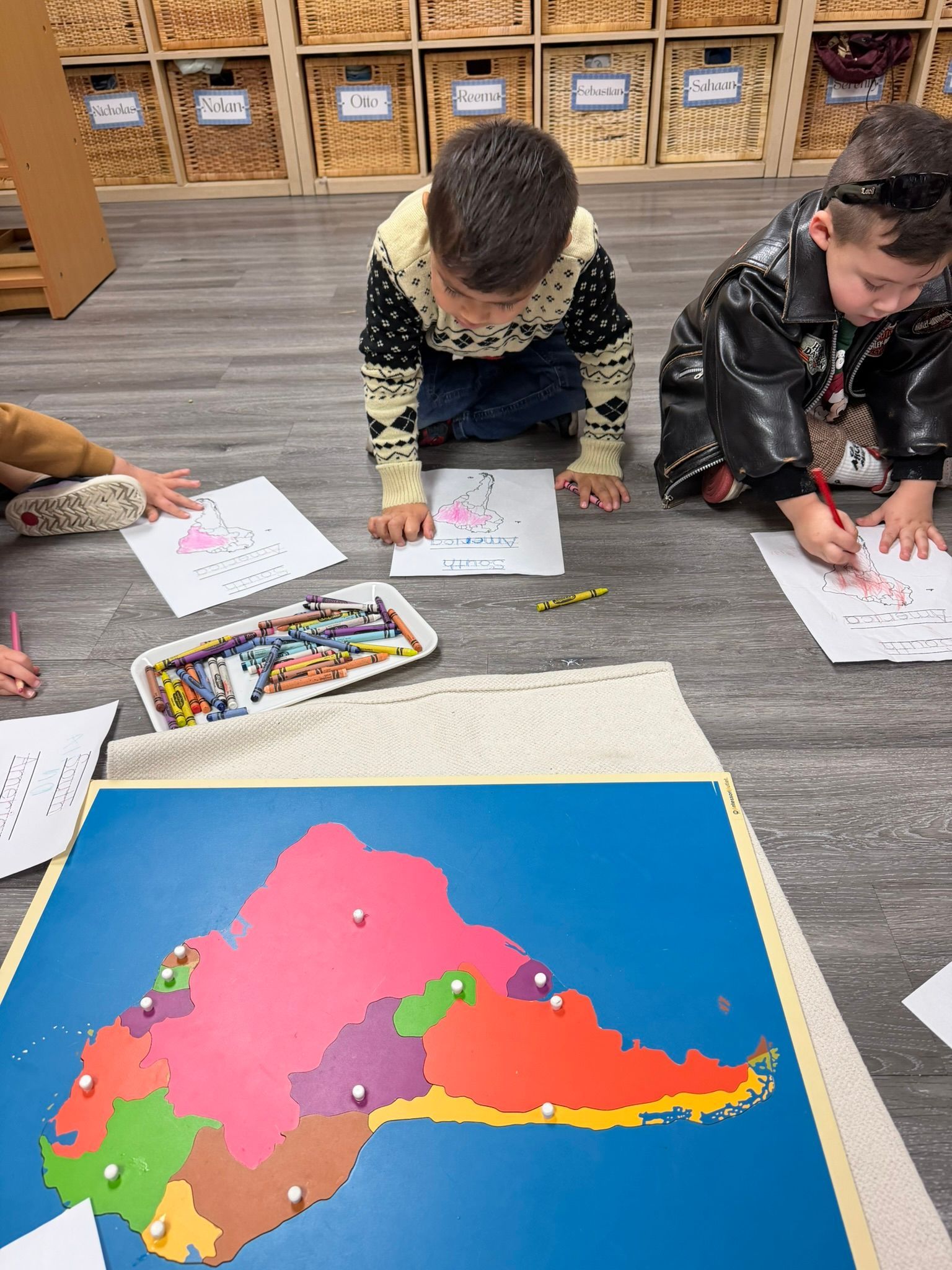 This month, our classrooms were alive with rich Montessori lessons that encouraged curiosity and global awareness. The children explored South America, learning about its geography, culture, and animals. They also studied animal life cycles, observing how living things grow and change over time, and explored leaves, discovering their parts, textures, and the changes they undergo with the seasons. In addition, our cultural studies focused on celebrations and holidays from around the world, helping children develop respect and appreciation for diverse traditions.