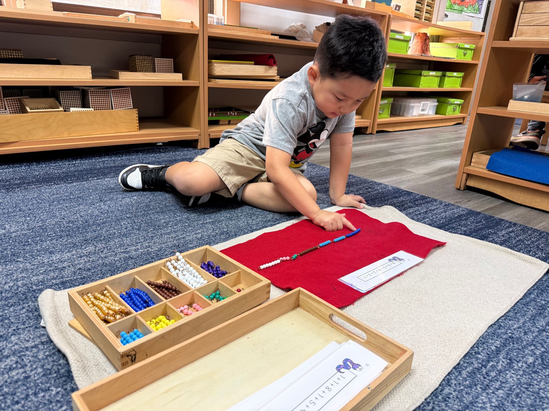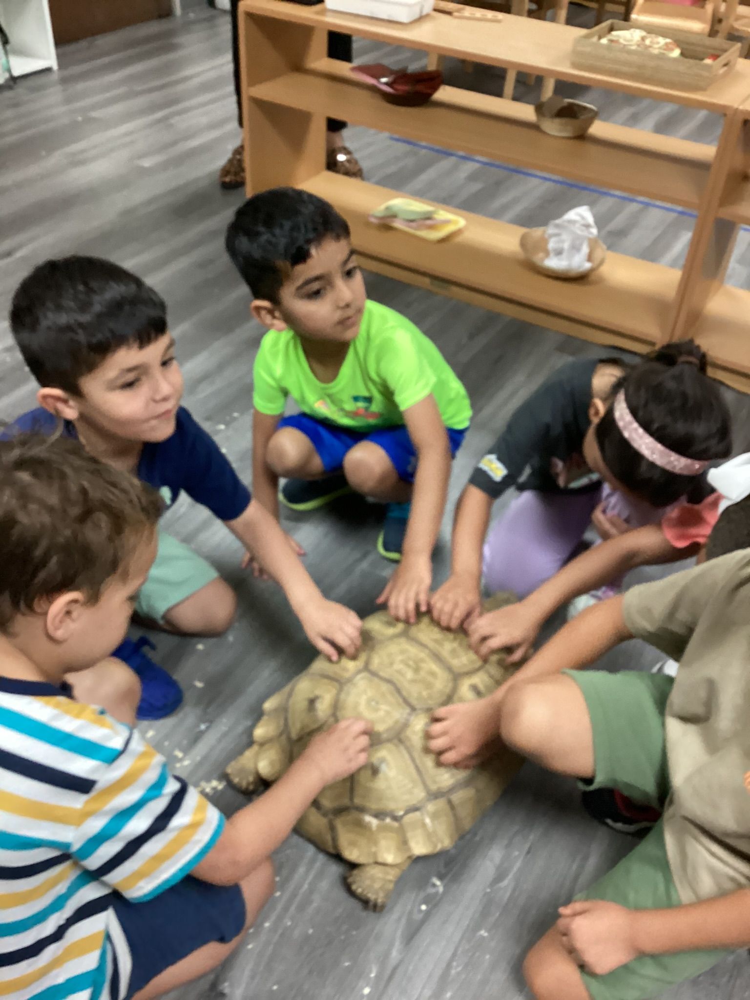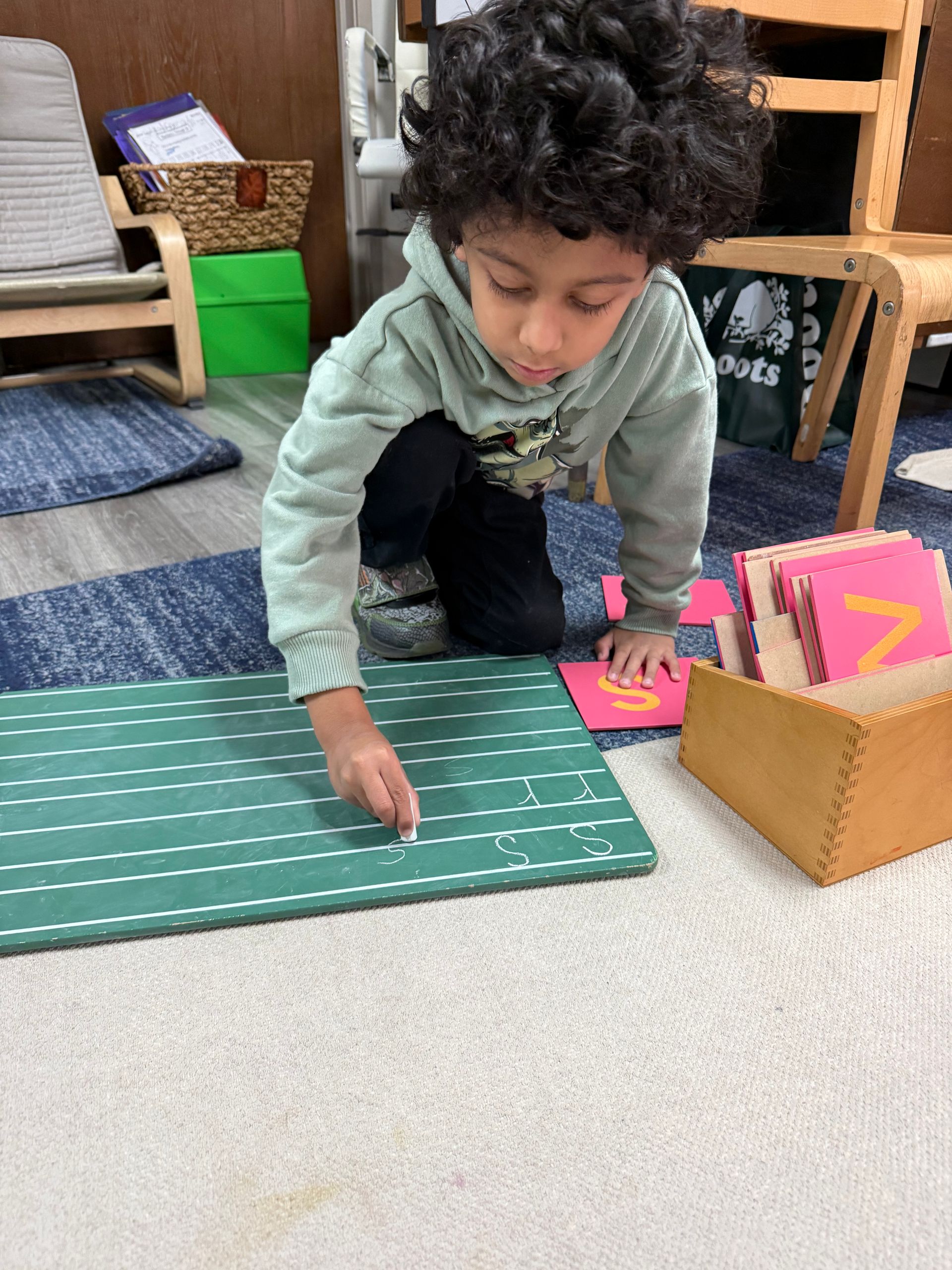 These early lessons in grace and courtesy have helped lay the foundation for a respectful and collaborative learning environment. In math, we’ve been working with even and odd numbers, as well as practicing basic addition and subtraction using hands-on materials like number cards and manipulatives. In language, students are developing early reading skills through rhyming games, beginning sound activities, and phonetic writing. One highlight was creating artwork inspired by our book of the month, The Kissing Hand, which the students thoroughly enjoyed. In science, we explored the senses and perception, and students were introduced to the animal and plant kingdoms.