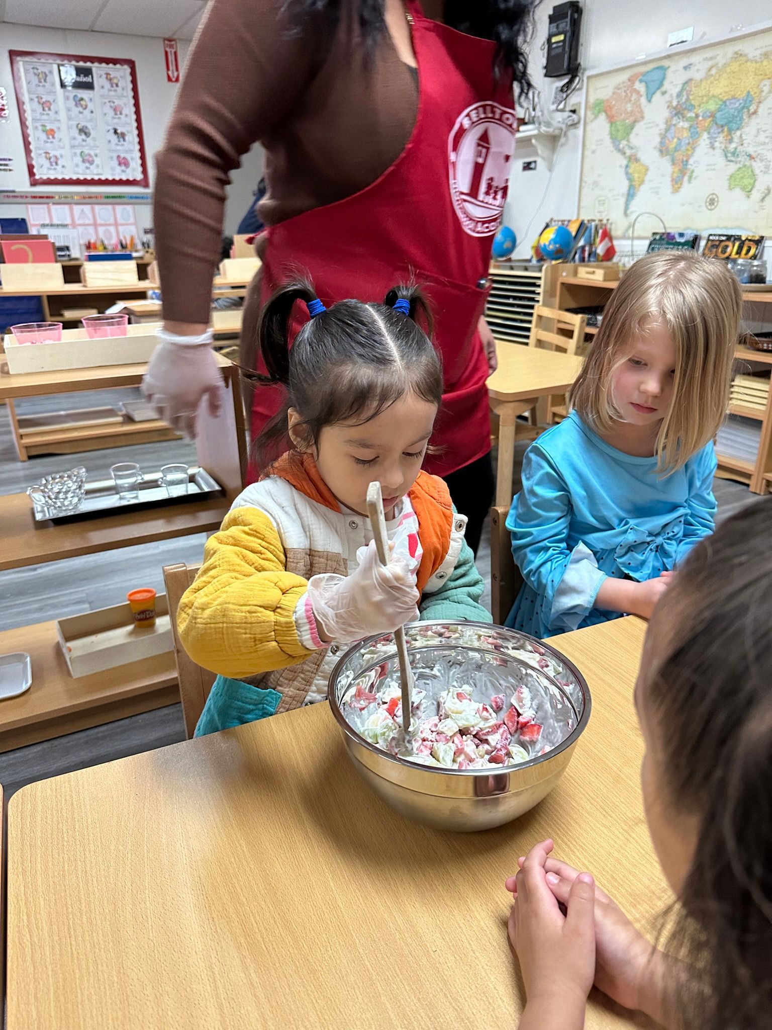 Our enrichment program is an essential part of each day. The children were exposed to art, music, cooking, computers, and gardening daily. The children really love watering and eating lettuce from our garden. Some of this month’s activities also included Japanese art, music of Johannes Brahms, making friendship fruit salad, and focusing on math, language, and reading using the computers.