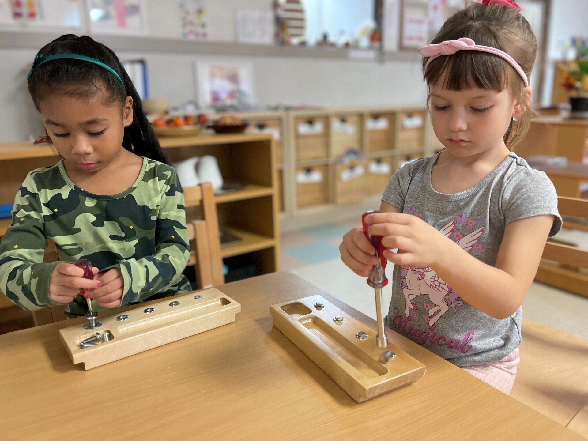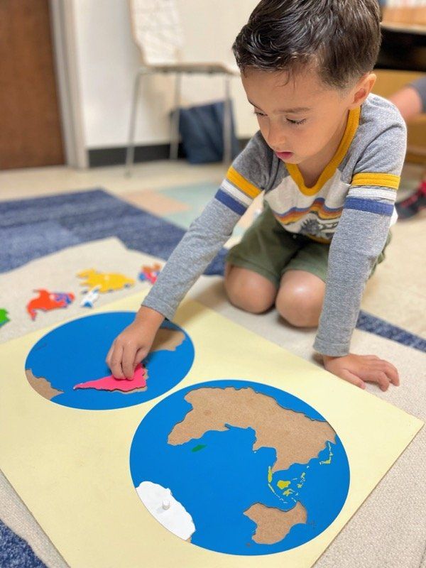 Montessori is a continuum of education that allows your child to build upon experiences each year. Reading and writing come to life from sounds and symbols. They are introduced to numbers and the decimal system. The child learns about geometric figures and the political countries of our world. They leave the program with a strong set of academic skills; but, far more importantly, with the attitude that learning is fun, exciting and boundless.