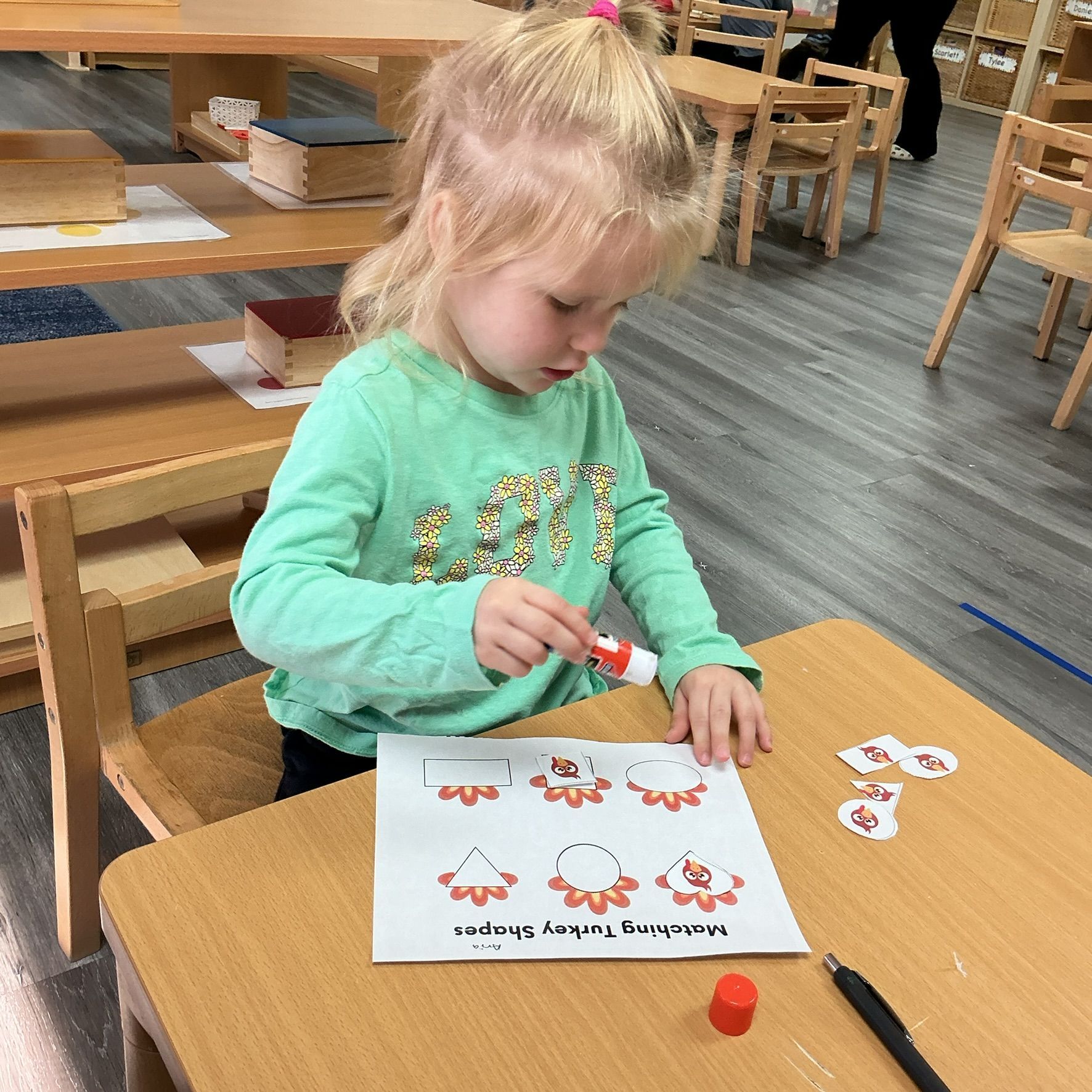 In our Montessori curriculum, we place a strong emphasis on developing practical life skills through engaging, hands-on activities. For example, children practice rolling up mats and carefully placing them back in their designated baskets, which fosters independence, order, and responsibility. Additionally, students are introduced to the skill of cutting paper using scissors, where they learn proper grip and control. These activities not only enhance fine motor development but also build concentration, coordination, and confidence as children master everyday tasks. By engaging in these purposeful exercises, children also develop patience, attention to detail, and a sense of respect for their environment and the materials they use.
