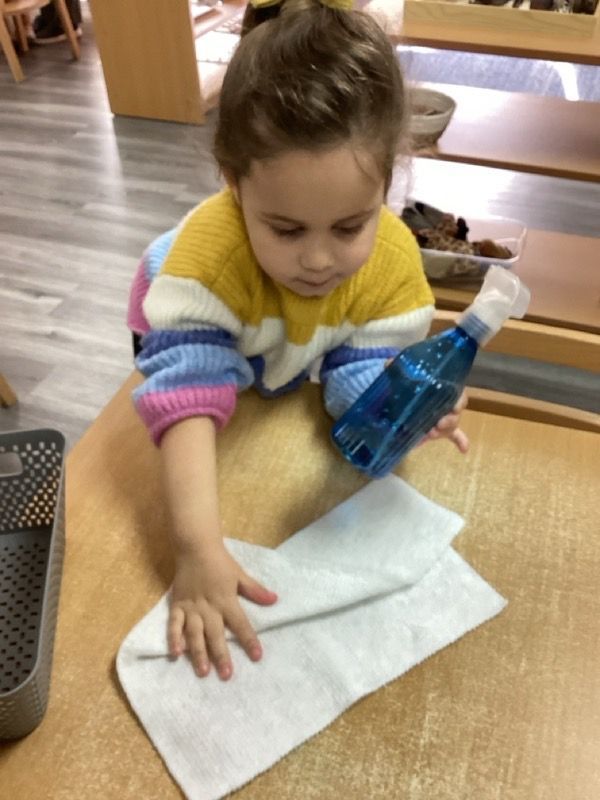 In our Montessori curriculum, we emphasized practical life skills by engaging children in activities such as returning objects to their original place. These hands-on experiences not only support the development of fine motor skills but also encourage creativity and imaginative play through the open-ended nature of the materials. Activities that involve placing items back where they belong help nurture important learning dispositions, including confidence, commitment, imagination, enthusiasm, and persistence. They also promote essential skills such as problem-solving, experimentation, investigation, and hypothesizing. As children practiced working with different materials and tools, they learned to transfer and apply their knowledge in new situations, strengthening their understanding and building independence. These practical life activities further cultivate a sense of responsibility and care, helping children recognize their role in maintaining order and participating in tasks that reflect real-life experiences.