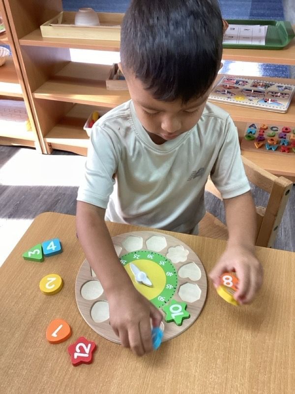 In our Montessori curriculum, we placed a strong emphasis on practical life skills, offering children hands-on experiences that nurtured independence, concentration, and confidence. One of the activities the students especially enjoyed was working with our sensory bin, which was filled with turtles, sharks, dolphins, and other sea life. This activity not only sparked curiosity about marine animals but also encouraged sensory exploration and imaginative play. In addition, the children had the opportunity to explore different weekly themes such as Circus, STEM, and Bugs and Insects, which allowed them to expand their vocabulary, and practice social interactions through role play. These experiences provided a balance of learning and fun, supporting the development of both practical and creative skills in an engaging environment.