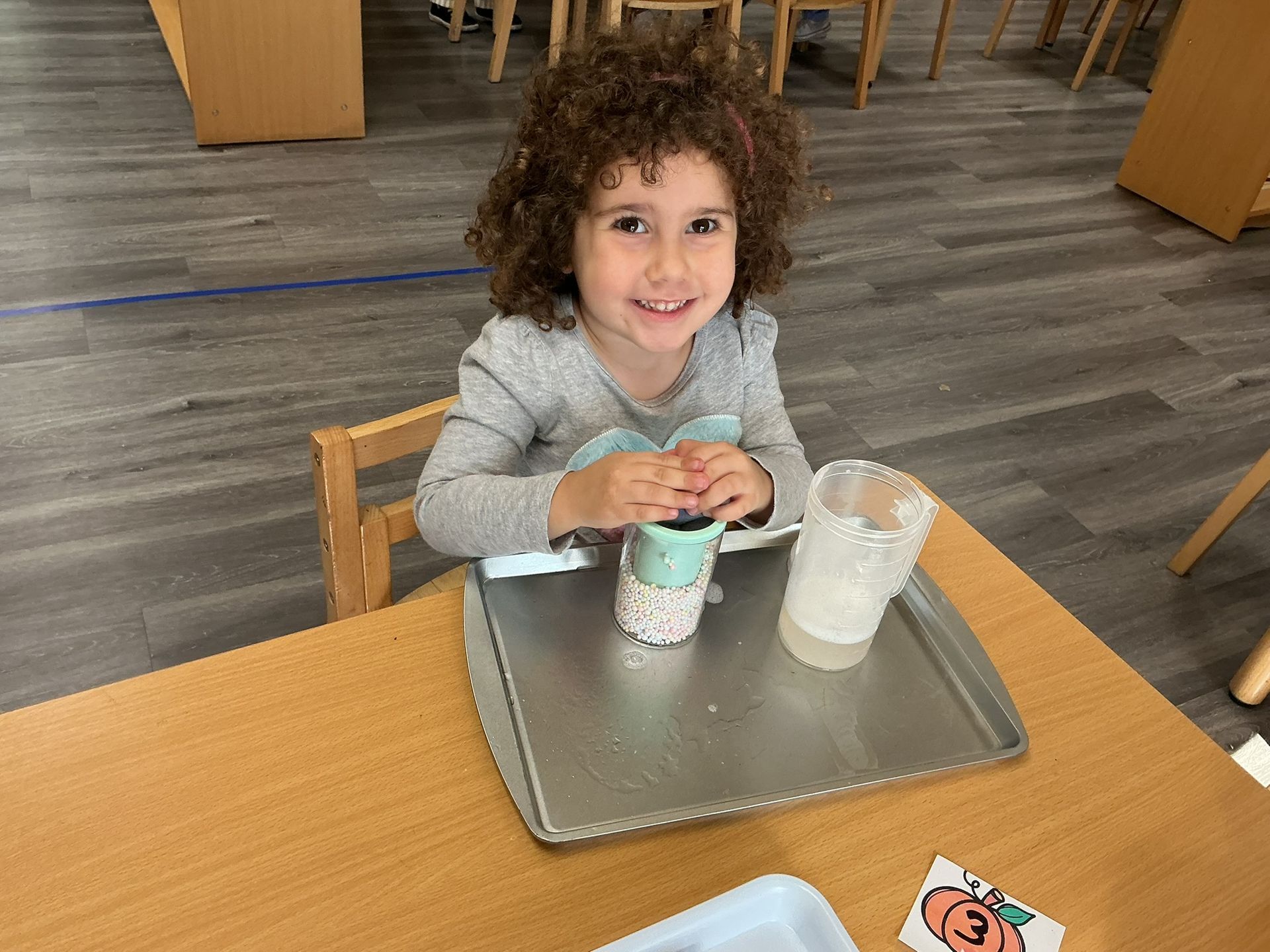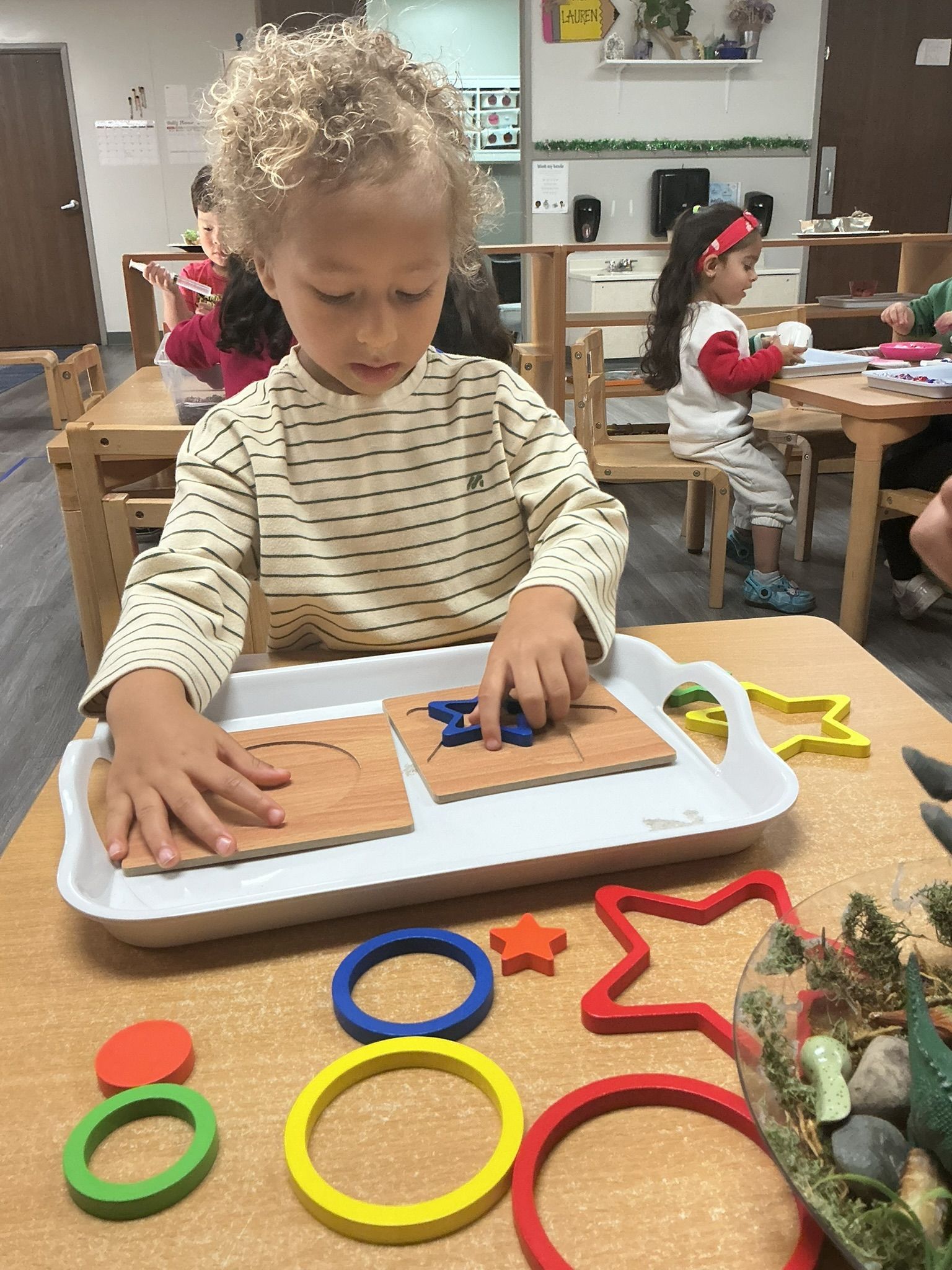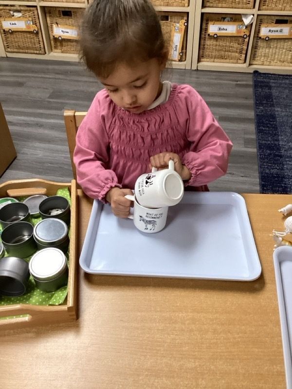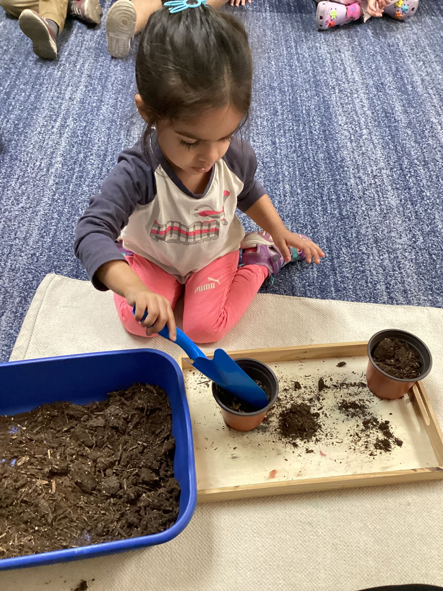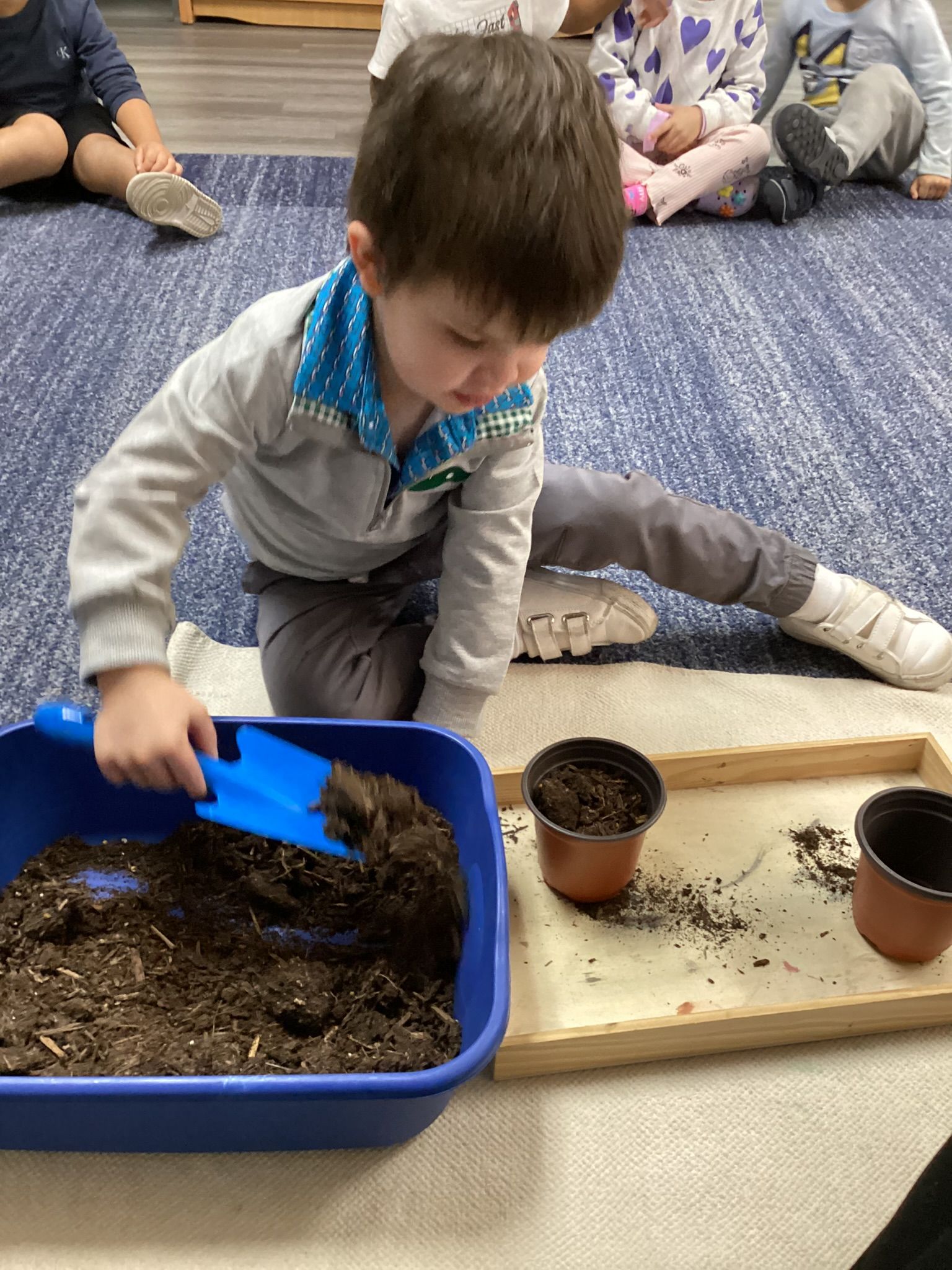 In November, our class focused on virtues and values, aligning perfectly with our book of the month, To Fill a Bucket. This heartwarming story emphasizes the importance of showing kindness and how every person is valued when they fill others’ “Buckets “. In circle time, we read the book together and discussed the significance of being a bucket filler. The children shared that hugs are a wonderful way to fill someone’s bucket with kindness. Additionally, we learned the sounds of letters M, A, T, and S. The children have been exploring objects and words that begin with these letters, deepening their understanding of phonics. The children have been practicing routines and taking on jobs across all areas of learning, including Practical Life, Sensorial, Math, Language and Geography.