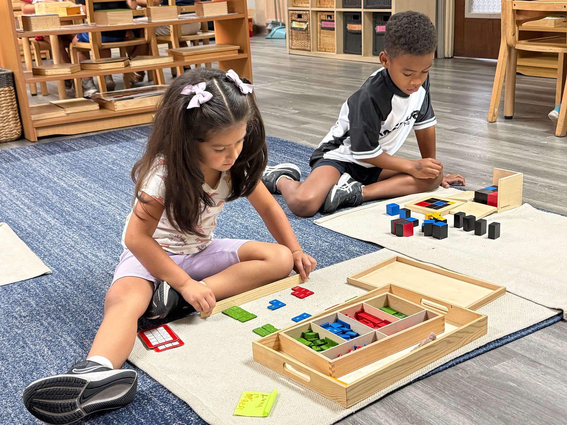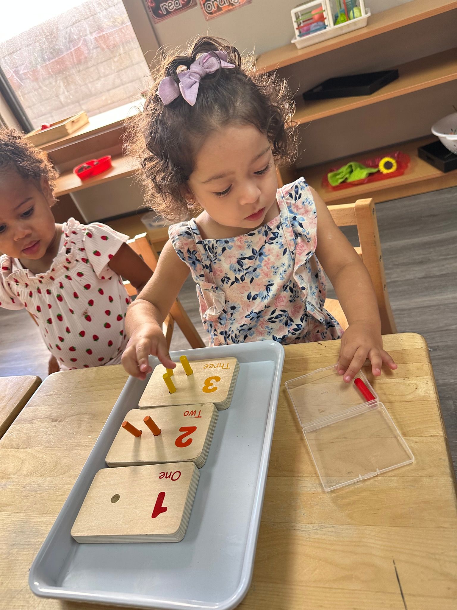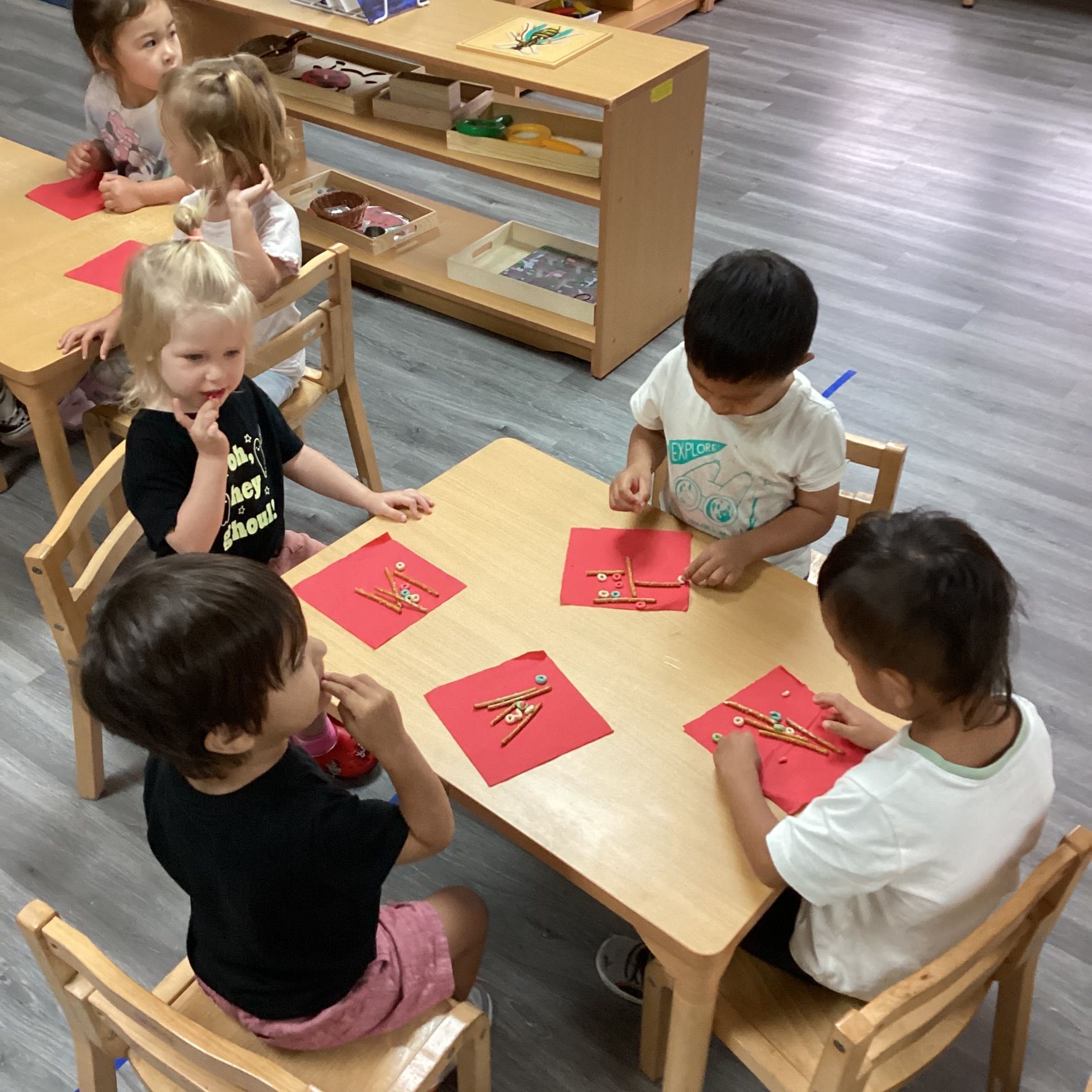 The children enjoyed their first month back at school, which consisted of classroom rules, guidelines, and expectations along with Montessori lessons. The children practiced lessons each day to help establish a solid classroom routine. They enjoyed getting to know one another in each room by creating, “All about Me” booklets, paintings, and other activities. They shared family photos and hung them in their classrooms which tied in perfectly to our literature book of the month The Kissing Hand. Our enrichment program has continued in each classroom where the children studied Art, Music, Cooking, Spanish and Computers.