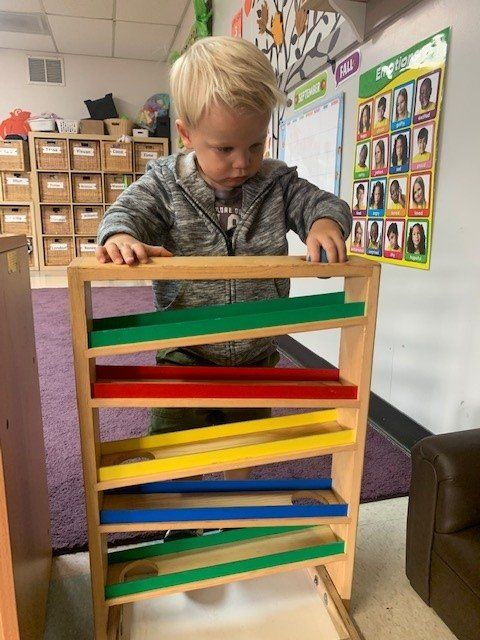 Our toddler classrooms are specially designed for your child between the ages of 18 and 36 months. It is a world scaled down to your child’s size. Here, your child paints, cooks, cares for plants, sings songs with friends and plays with materials that develop fine and gross motor coordination.