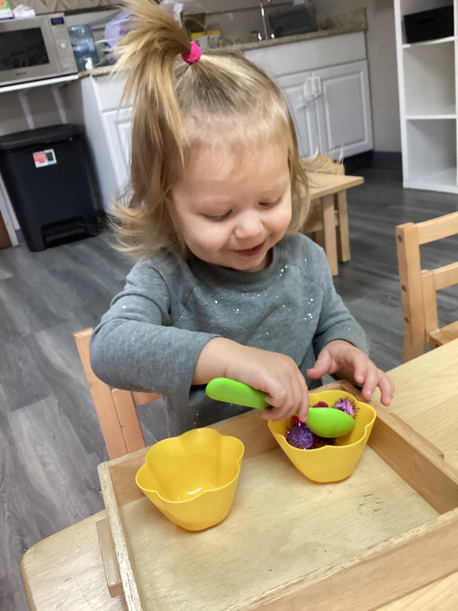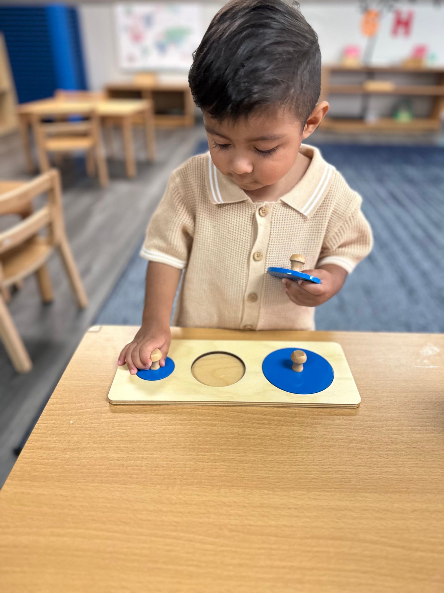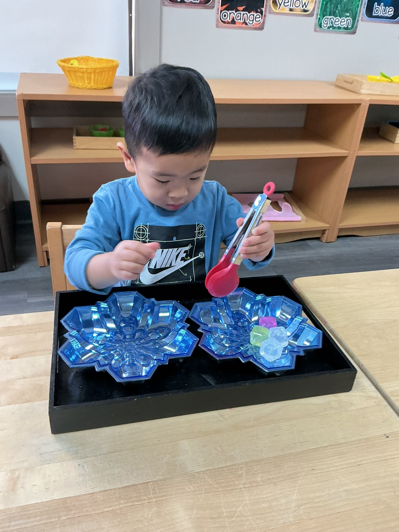 Practical life work continued to be an important part of our days. The children practiced brushing hair with a small brush, building independence and self-care skills. We also worked on walking carefully while carrying a tray, focusing on balance, control, and moving safely around the classroom.