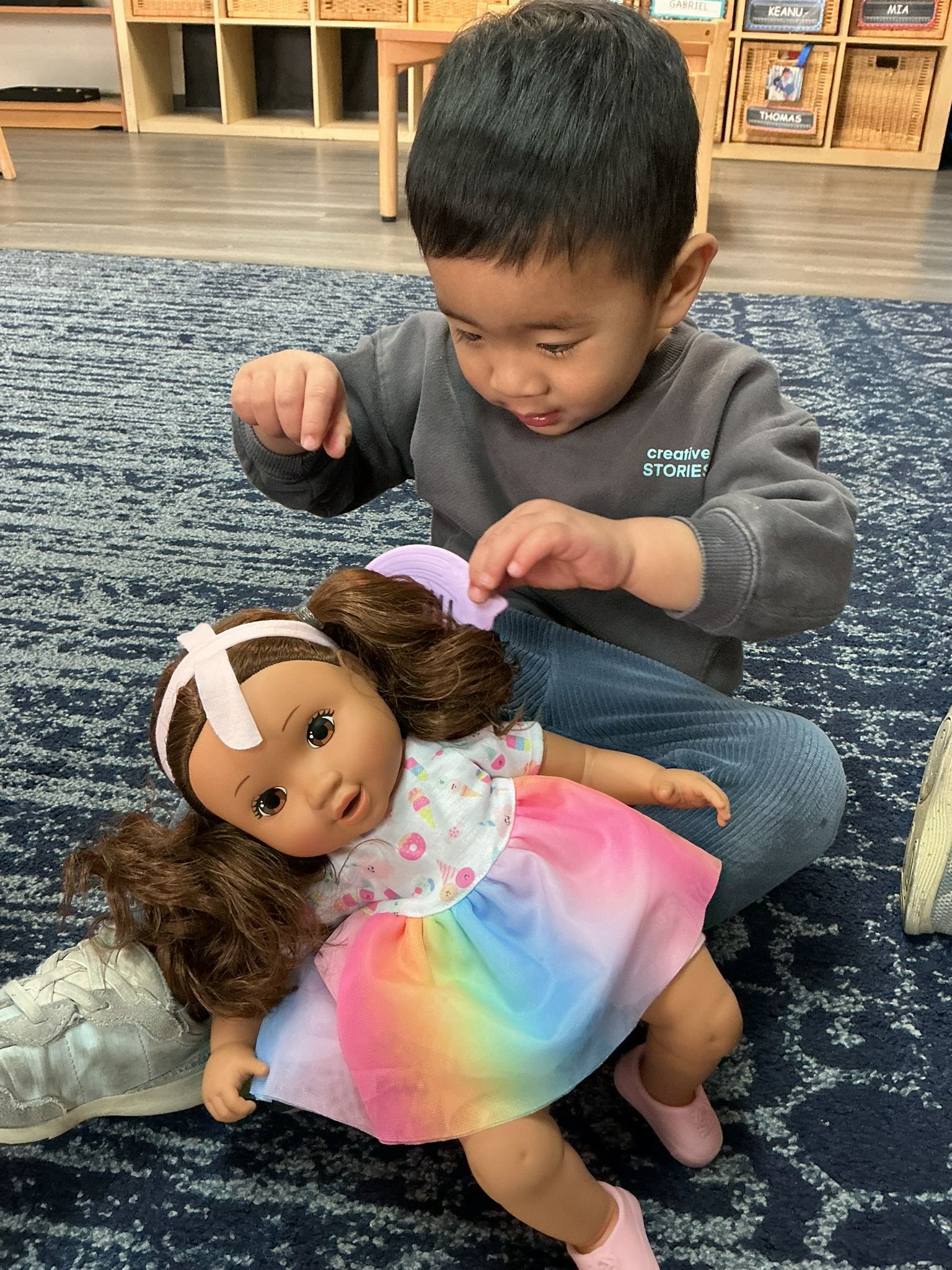 We had a fun and busy month in our toddler classroom, filled with stories, hands-on learning, and lots of practicing independence! Our book of the month was The Mitten by Jan Brett. The children enjoyed reading this story and looking closely at the detailed pictures. During circle time this month, we also listened to a Martin Luther King Jr. song as a simple way to learn about kindness and community.