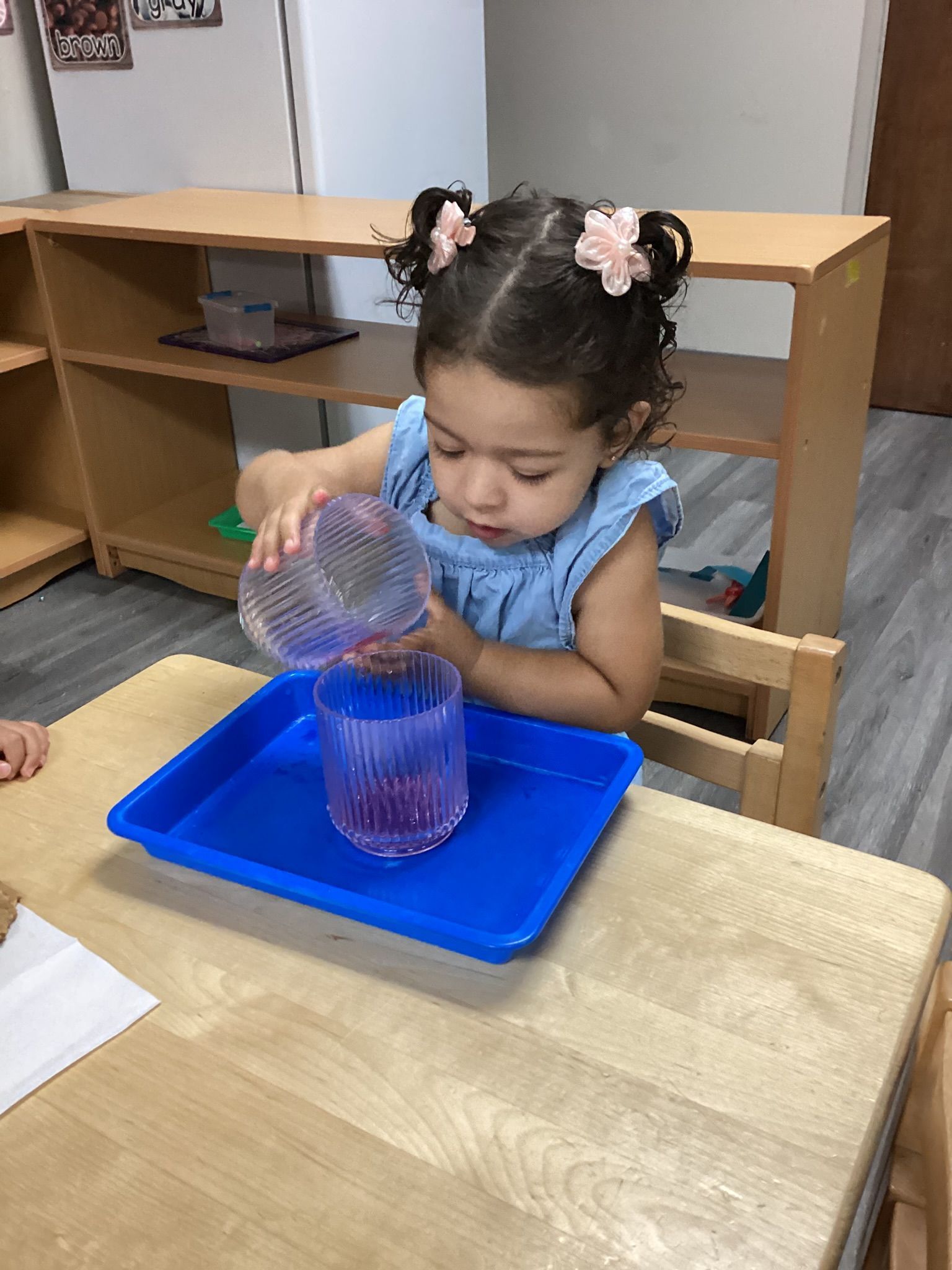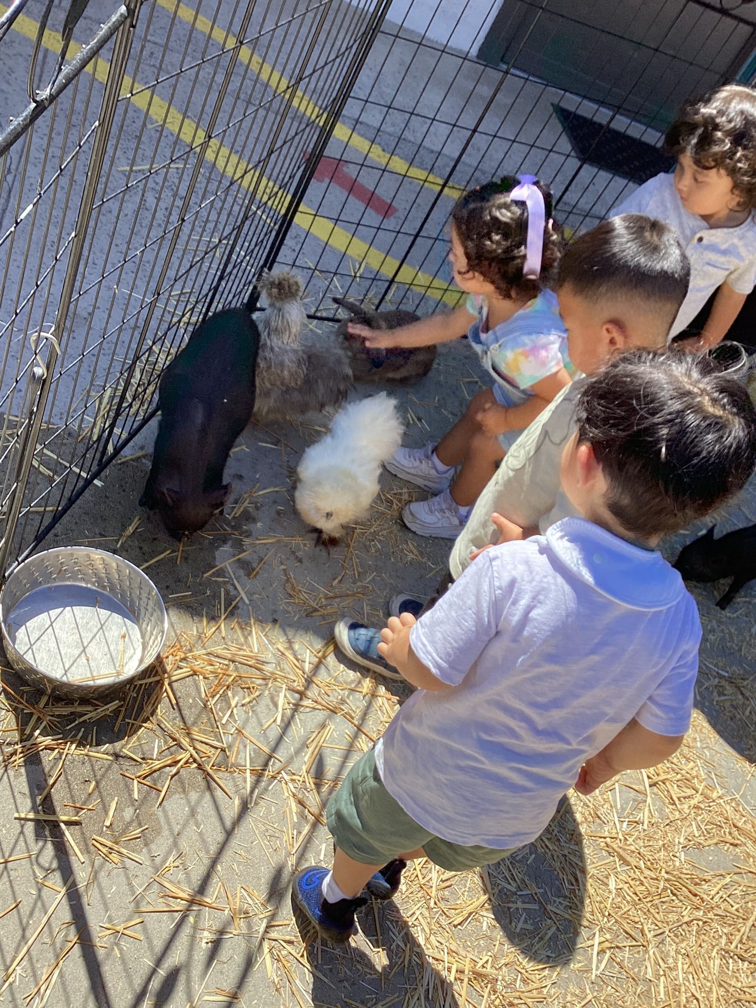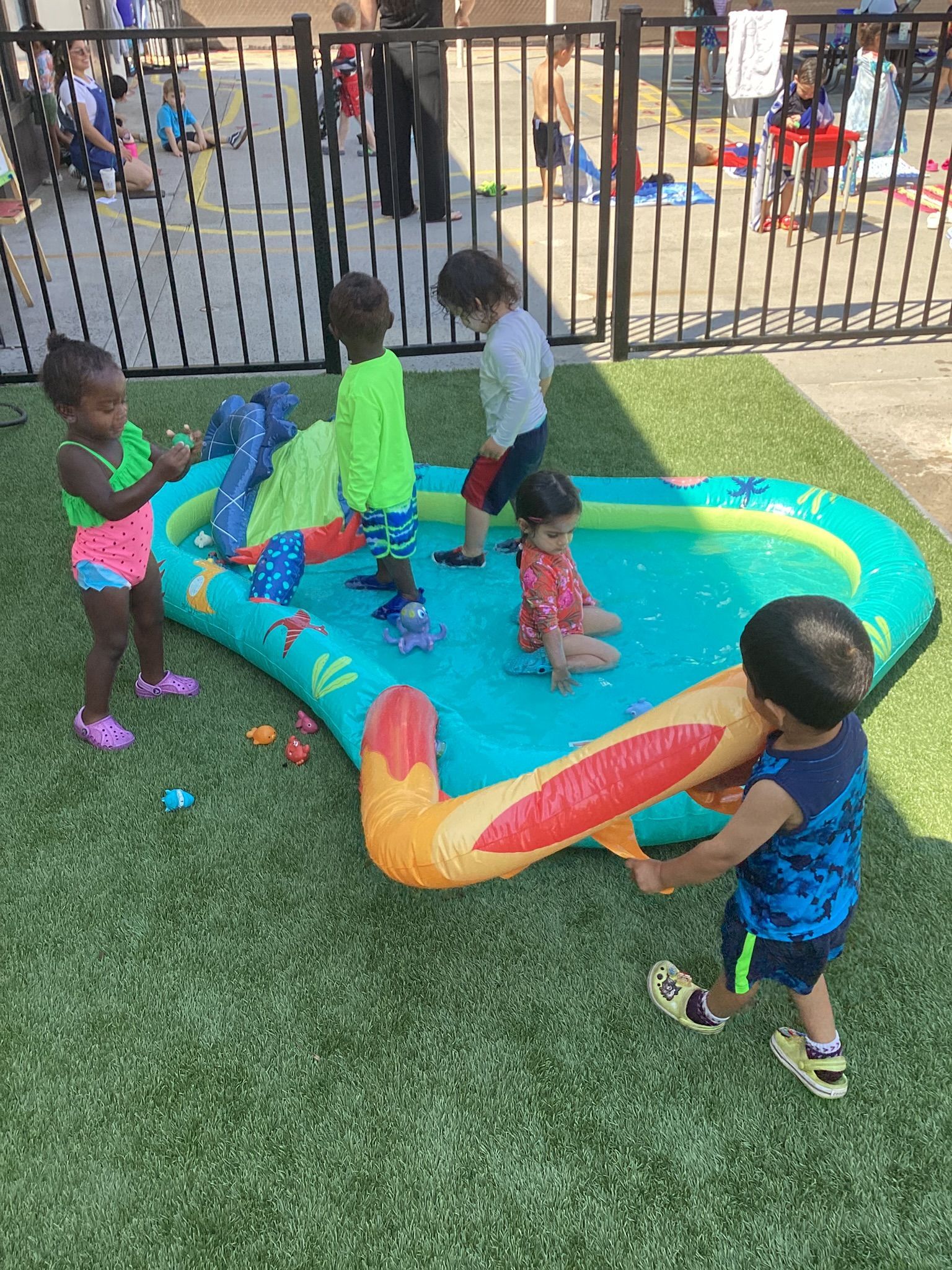 The Toddlers had an amazing time exploring everything from space to sea. We bid a fond farewell to our older friends and said hello to some new ones. The children loved all our in-house field trips. We saw a variety of insects; our favorite was the stick bug. We got to be up close and personal with reptiles. We had fun petting all the farm animals, the little piglets made us giggle. We learned about being kind during our puppet show and got to dance with a silly goose. I think the best part of our summer activities was our water play days, jumping around in the splash pad and pouring water at our water tables.