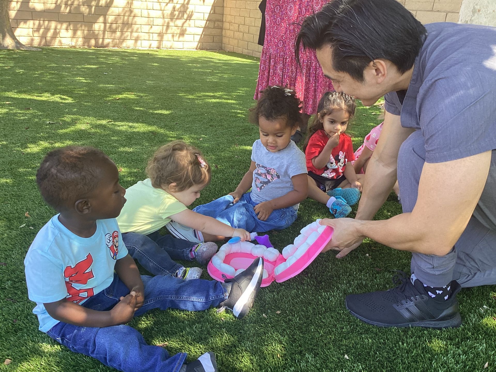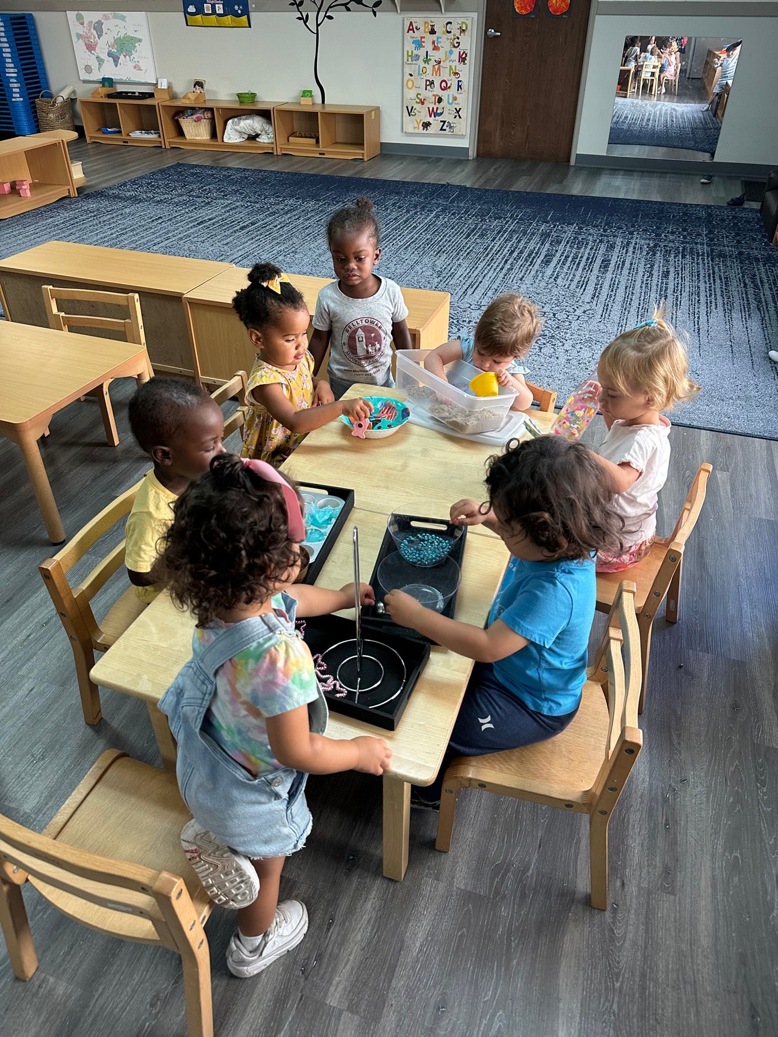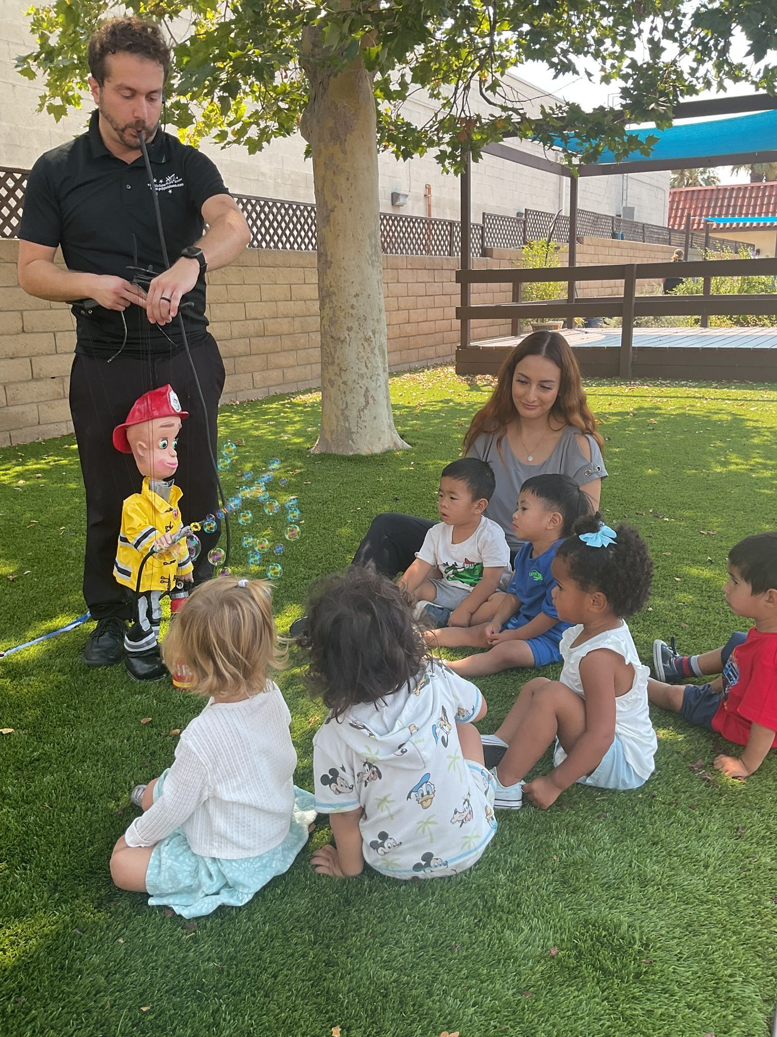 The Toddlers had an amazing time exploring everything from space to sea. We bid a fond farewell to our older friends and said hello to some new ones. The children loved all our in-house field trips. We saw a variety of insects; our favorite was the stick bug. We got to be up close and personal with reptiles. We had fun petting all the farm animals, the little piglets made us giggle. We learned about being kind during our puppet show and got to dance with a silly goose. I think the best part of our summer activities was our water play days, jumping around in the splash pad and pouring water at our water tables.
