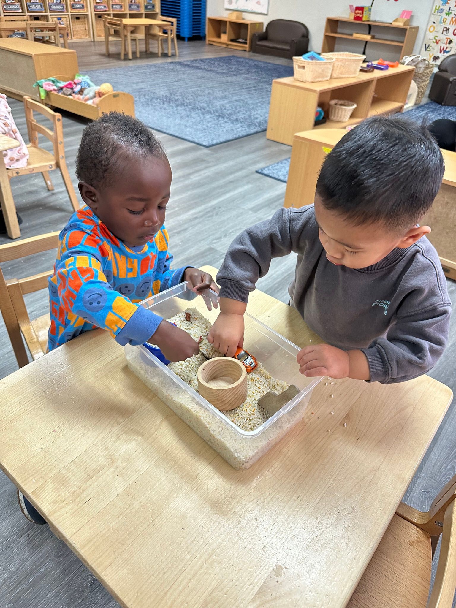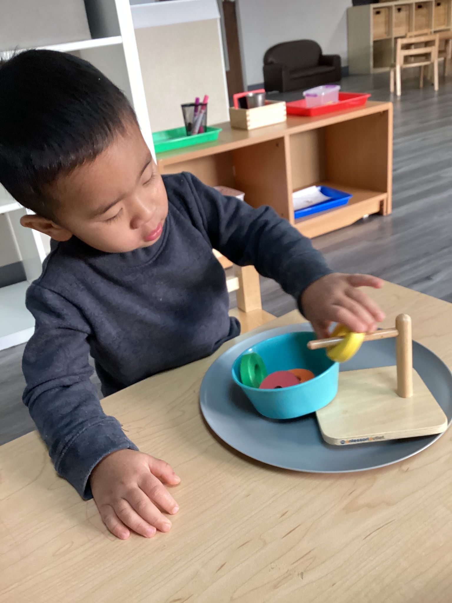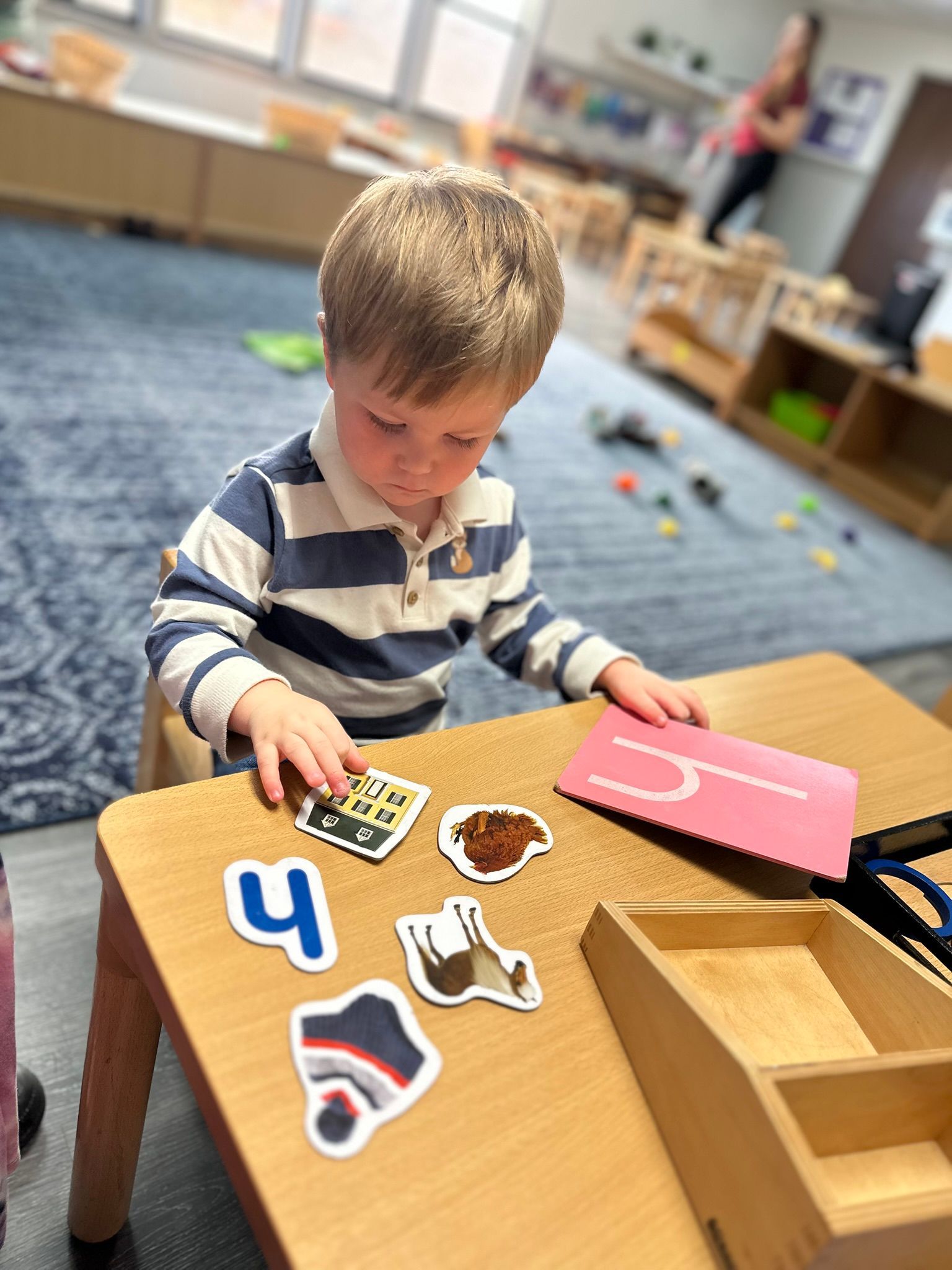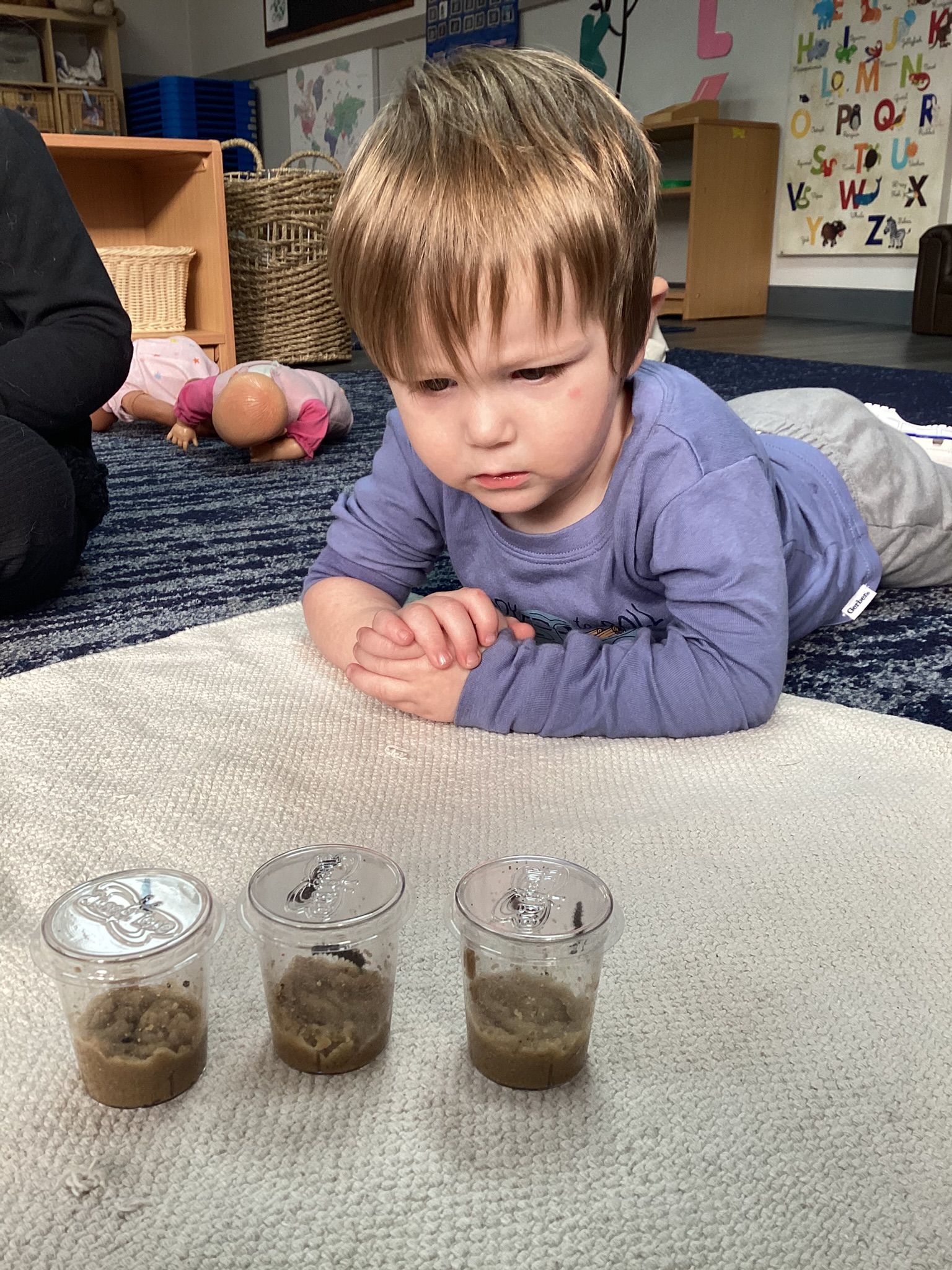 In the classroom, the children continued strengthening their practical life skills by practicing how to return their jobs to the shelves when finished. This work supports independence, responsibility, and care for our classroom environment. During our daily work cycle, we focused on grace and courtesy lessons, including learning how to walk around a work mat and sit beside it rather than on top of it. These lessons help the children respect each other’s work and shared space. At circle time, we emphasized the importance of being respectful and kind by practicing how to sit quietly, listen to others, and take turns. The children were encouraged to actively participate in our sing-alongs, group activities, and story time, helping build focus, language, and social skills.